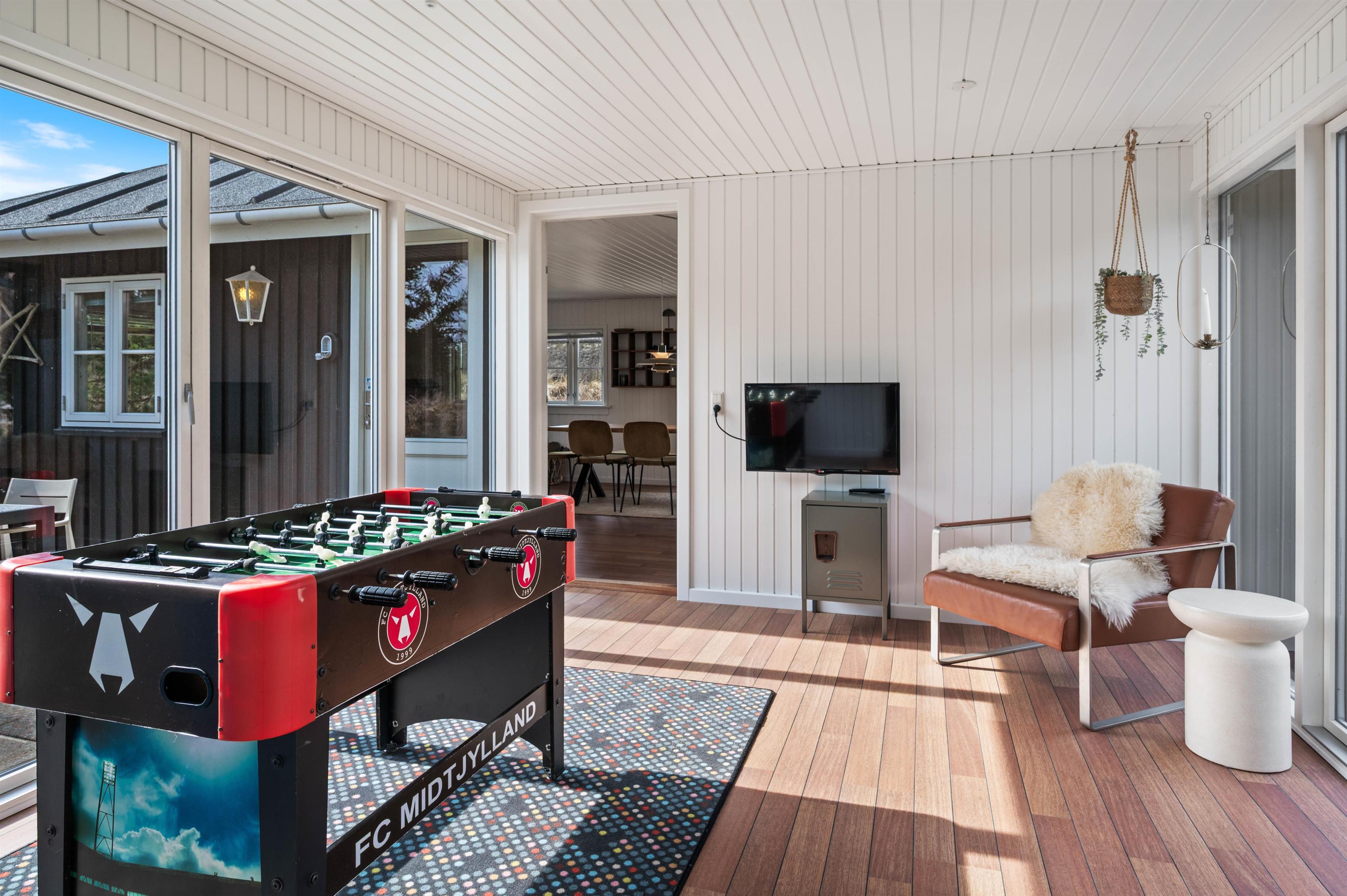 På terrassen finder I ydermere en grill, som indbyder til at lave gode og lækre grillretter til hele familien. Sommerhuset råder endvidere også et lille udekøkken, så I kan forberede hele jeres middag udendørs. Det er rigtig feriestemning.