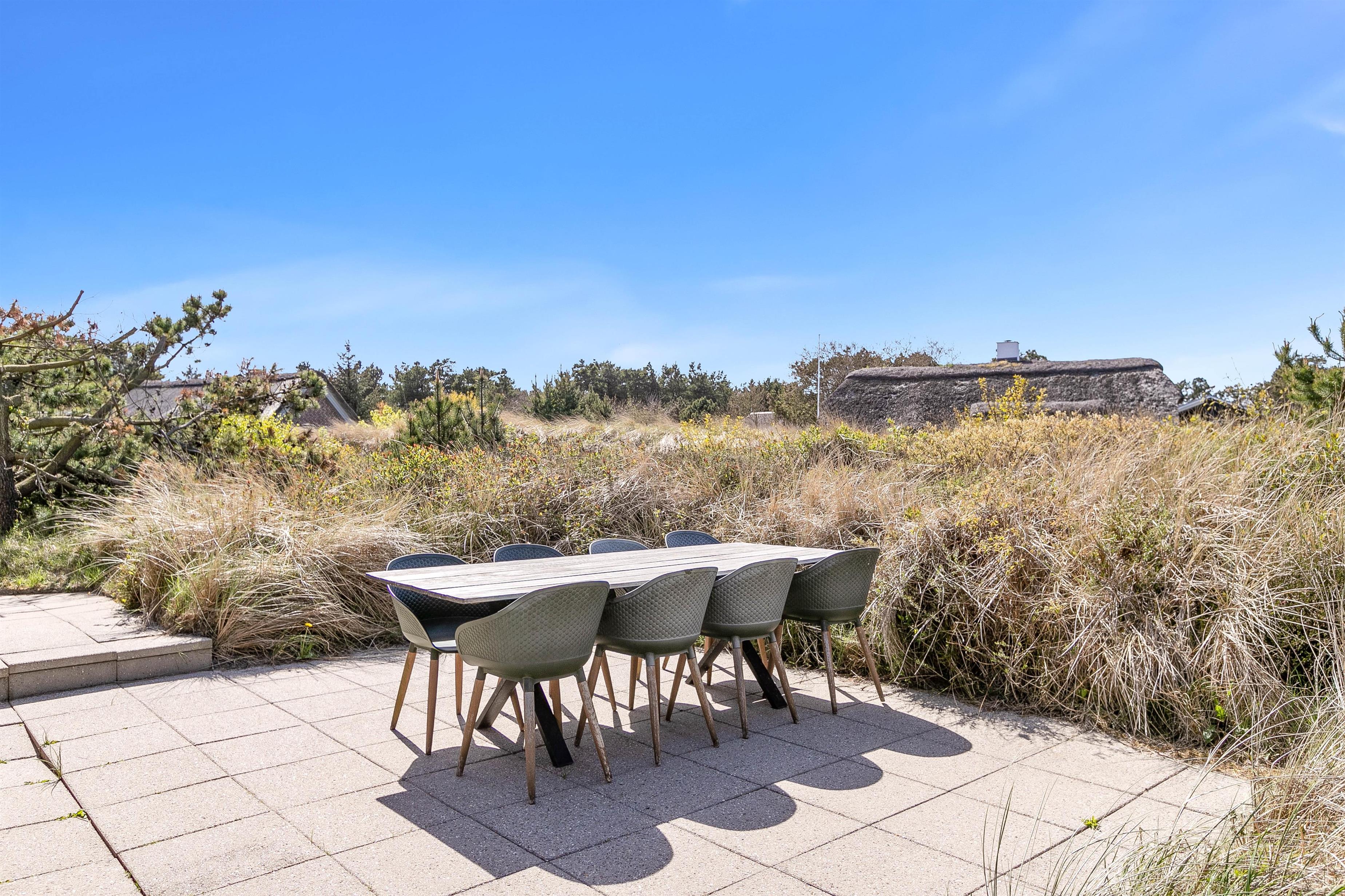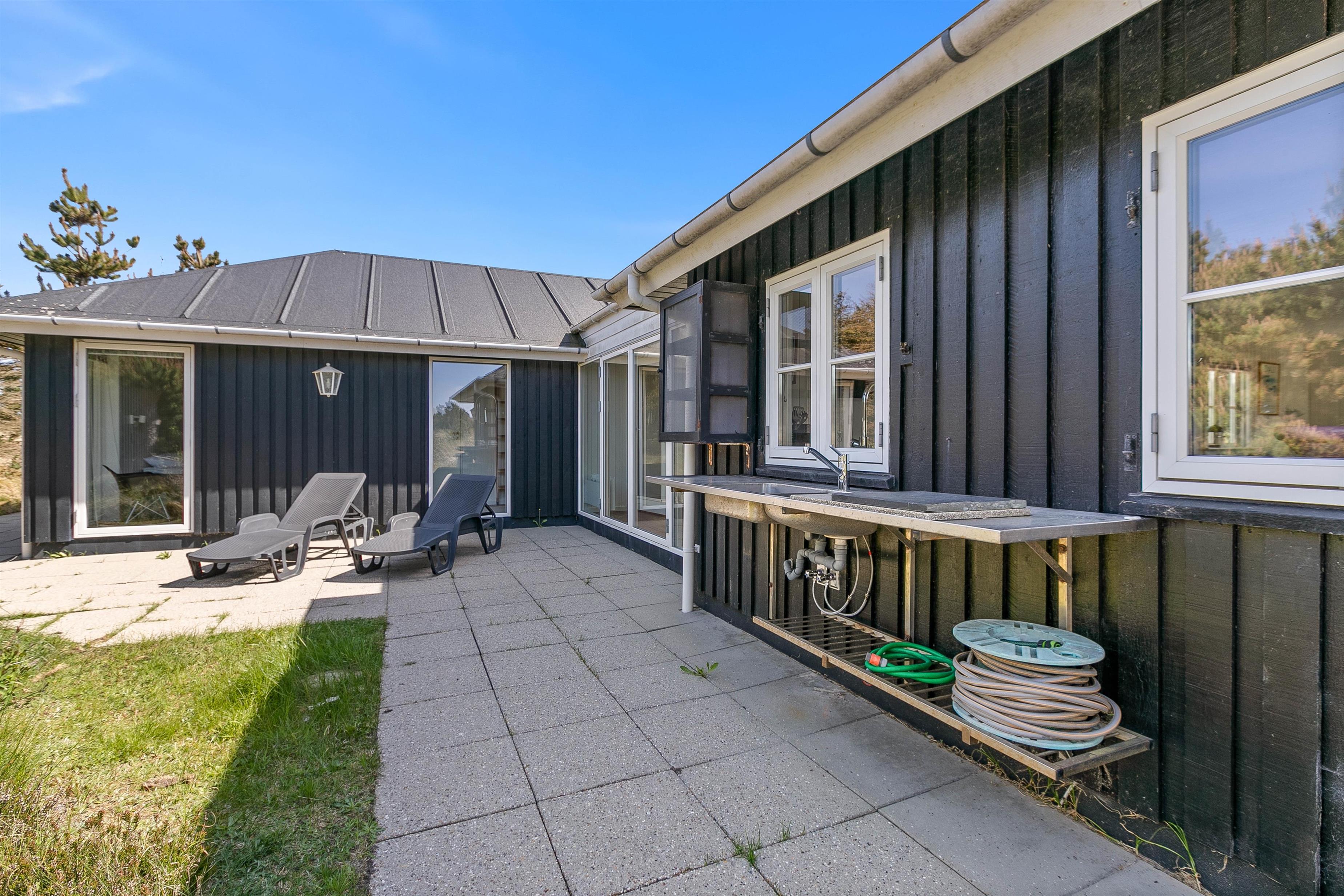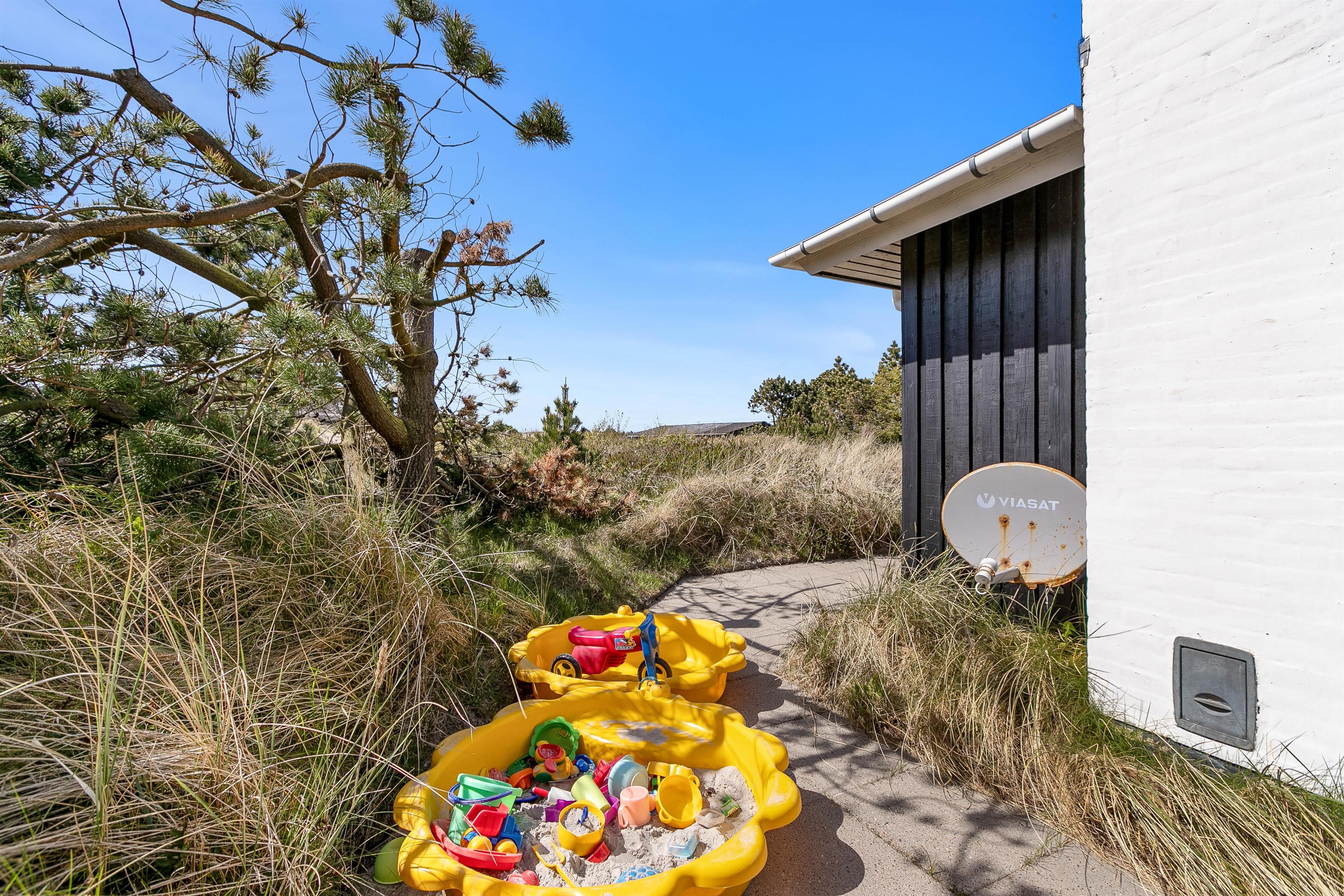 Med ferieadresse på Hjelmevej 109 har I kun 900 meter til den kilometerlange sandstrand og det brusende Vesterhav, hvor det på de varmere sommerdage kan anbefales at pakke en strandtaske og tage en tur i vandet for at blive kølet ned i varmen. Når I kommer tilbage til sommerhuset, kan I benytte jer af udebruseren for at skylle det værste sand af kroppen.