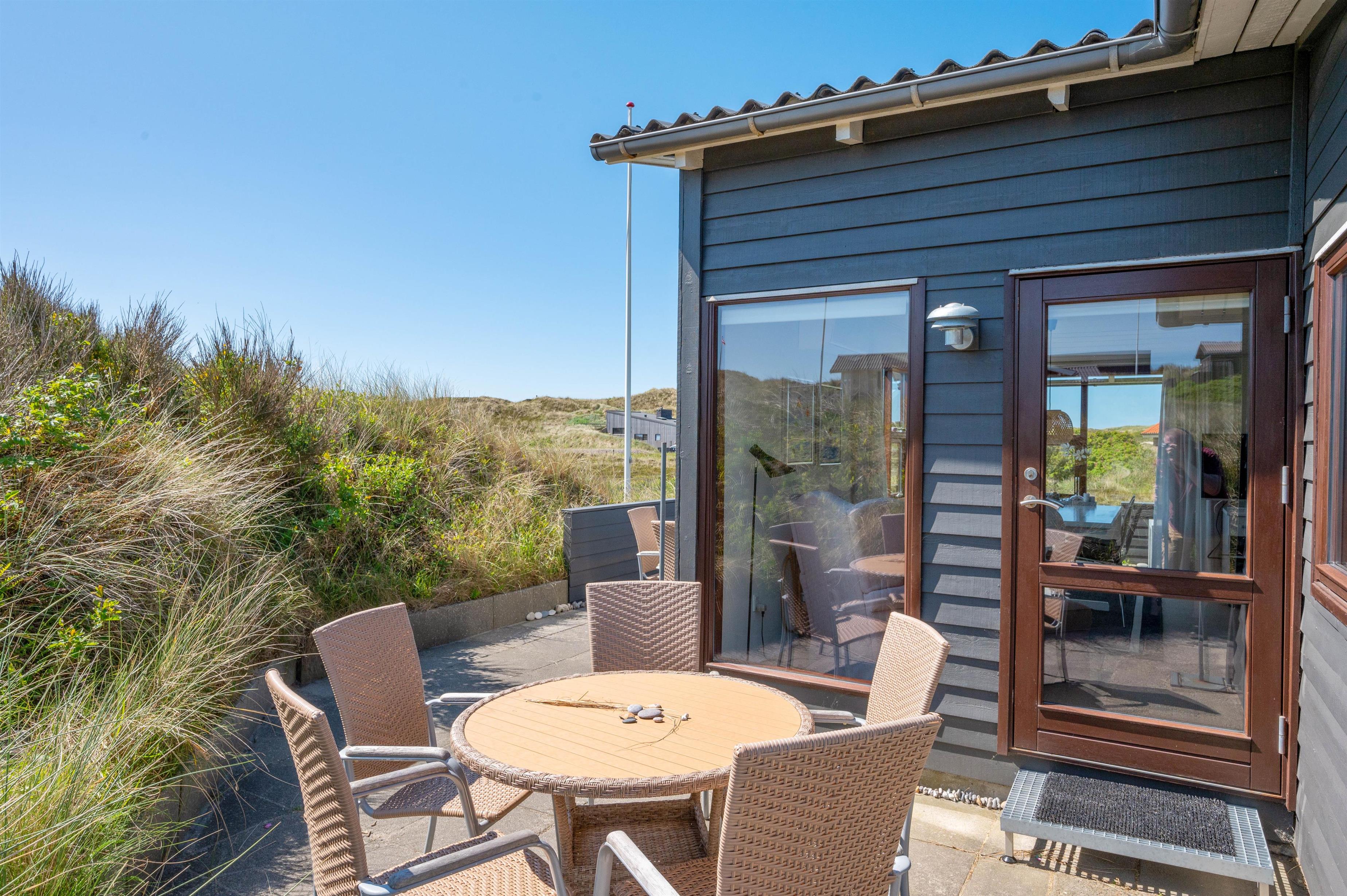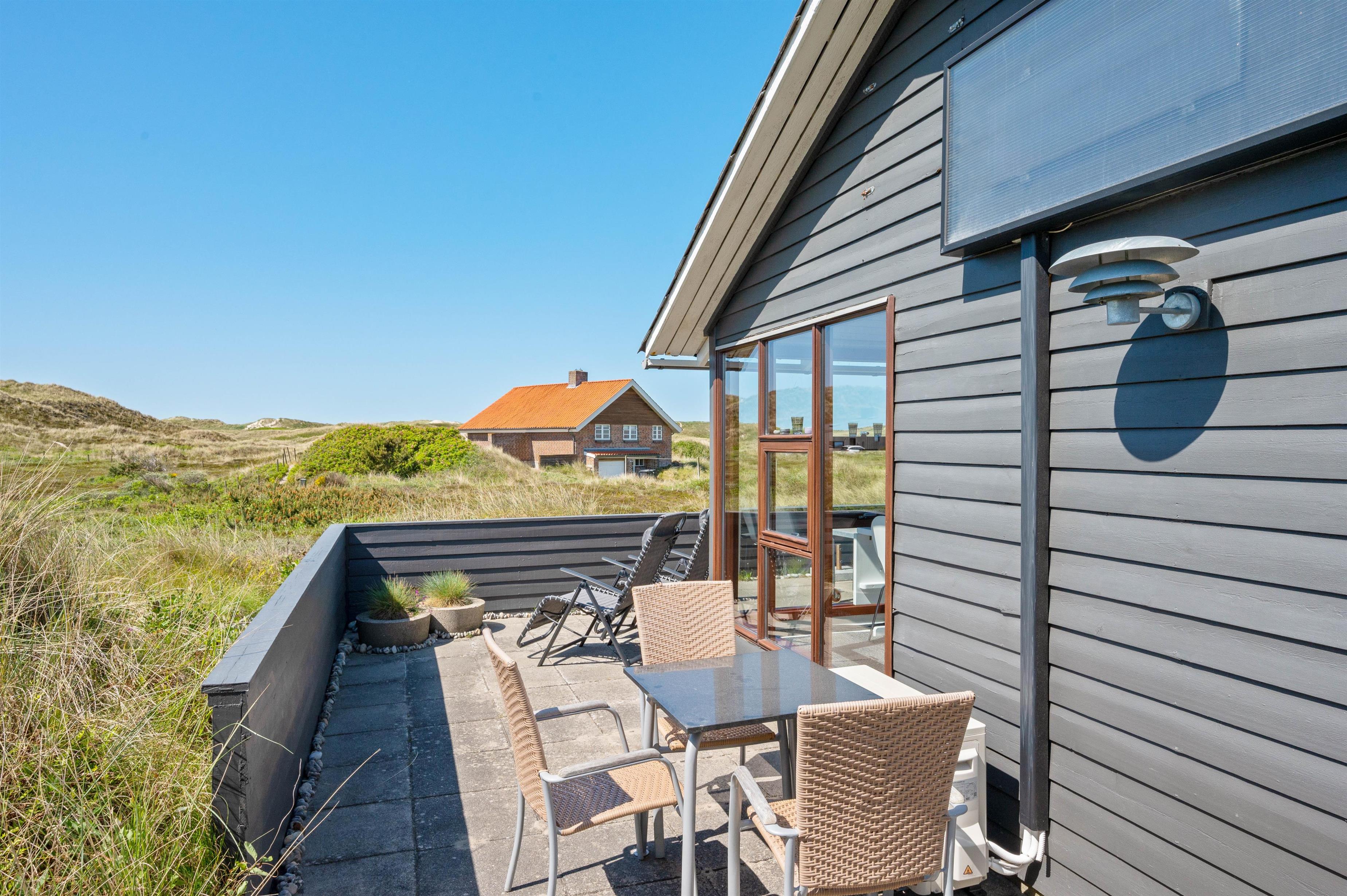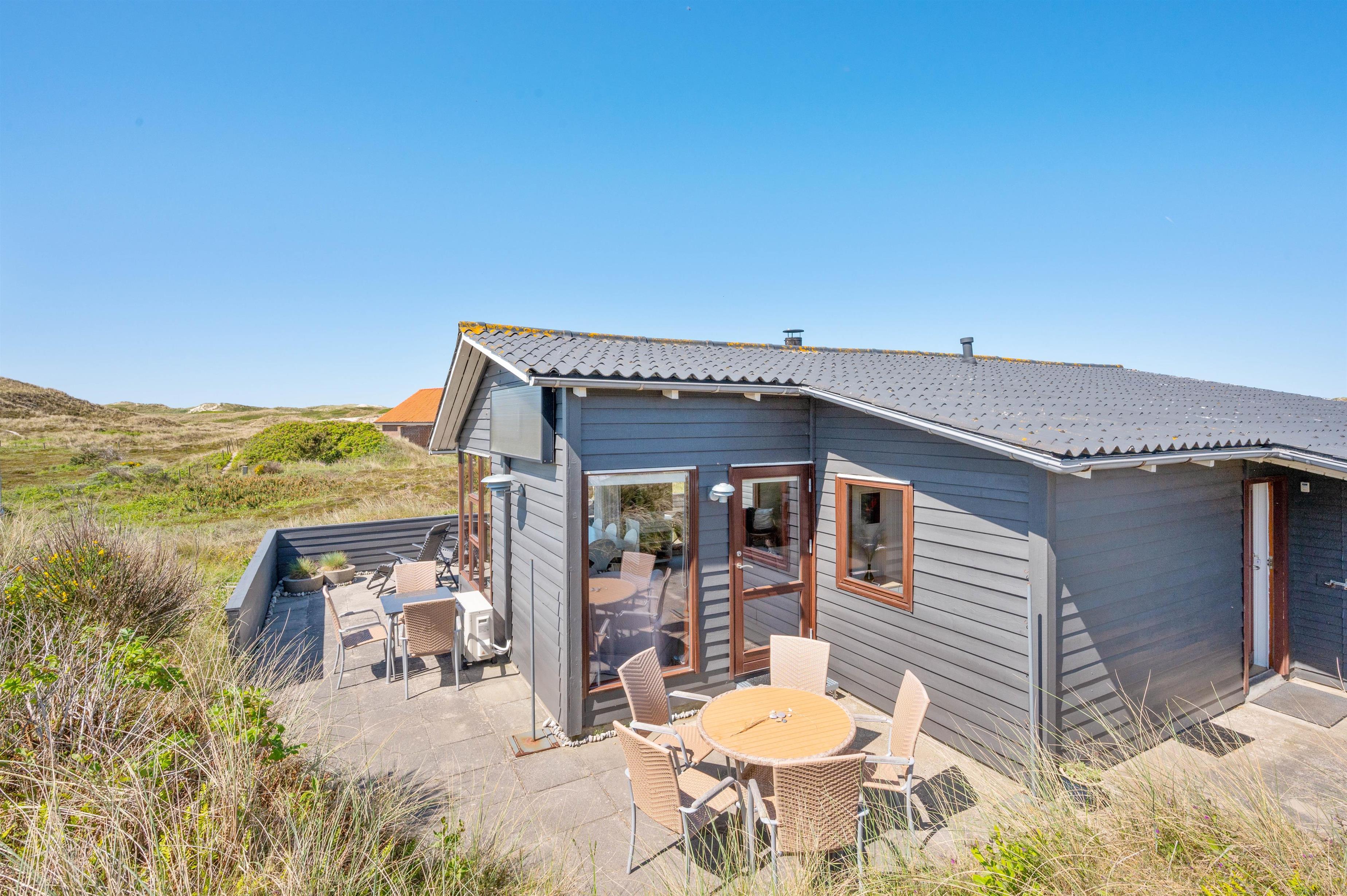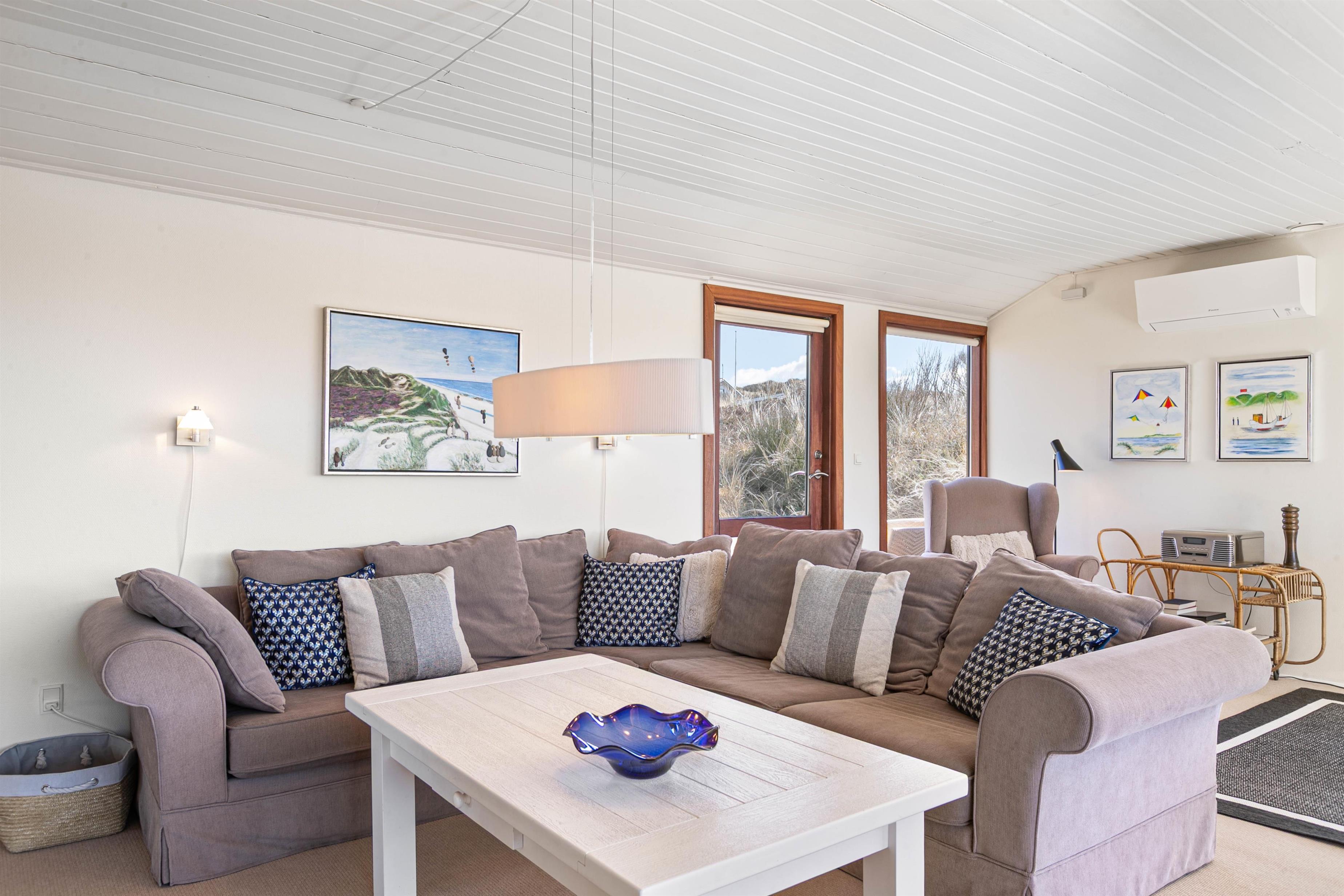 Sommerhuset ligger på Nordsøvej 262 i sidste klitrække mod Vesterhavet og er omgivet af smuk natur til alle sider. Hjertet af huset er det store opholdsrum, som med sine mange vinduer lukker både lyset og den omkringliggende natur indenfor. Her kan I sidde i sofaen og nyde varmen fra brændeovnen, mens I kigger ud over det bølgende klitlandskab. Huset er lyst og indbydende indrettet med gode møbler og moderne komfort.