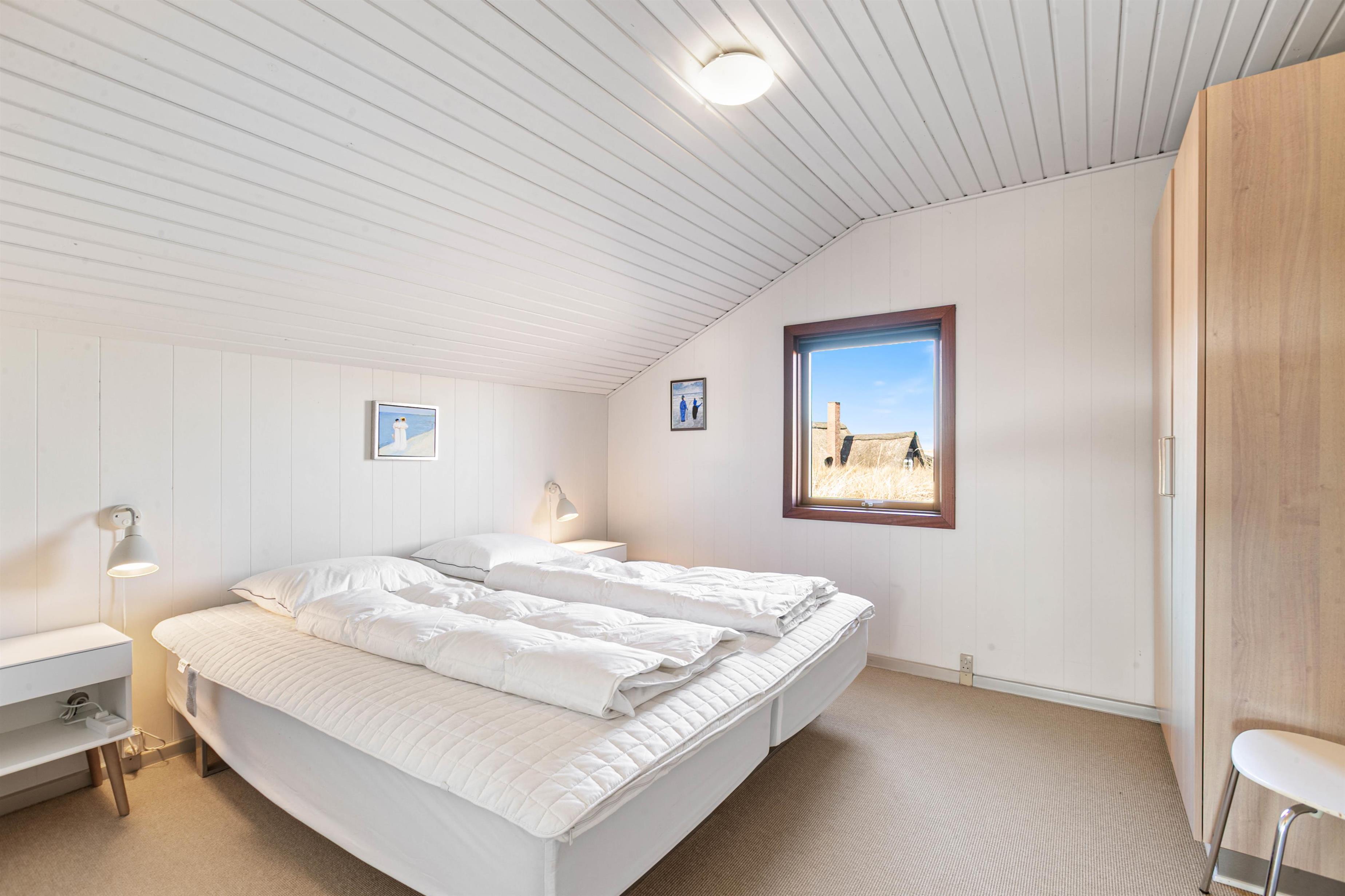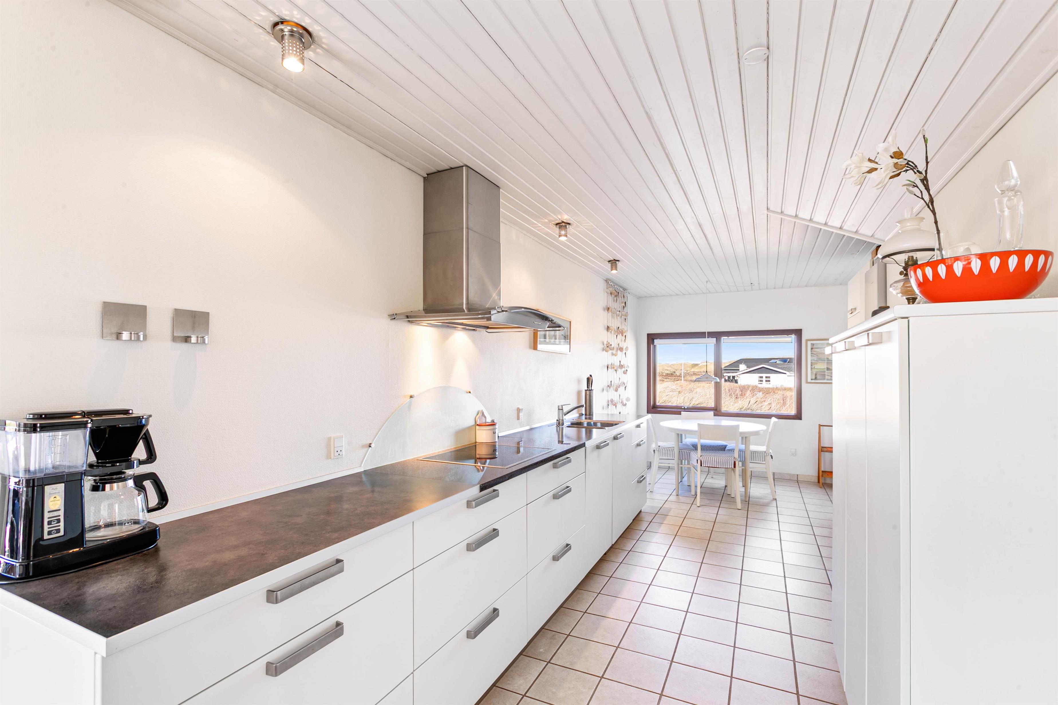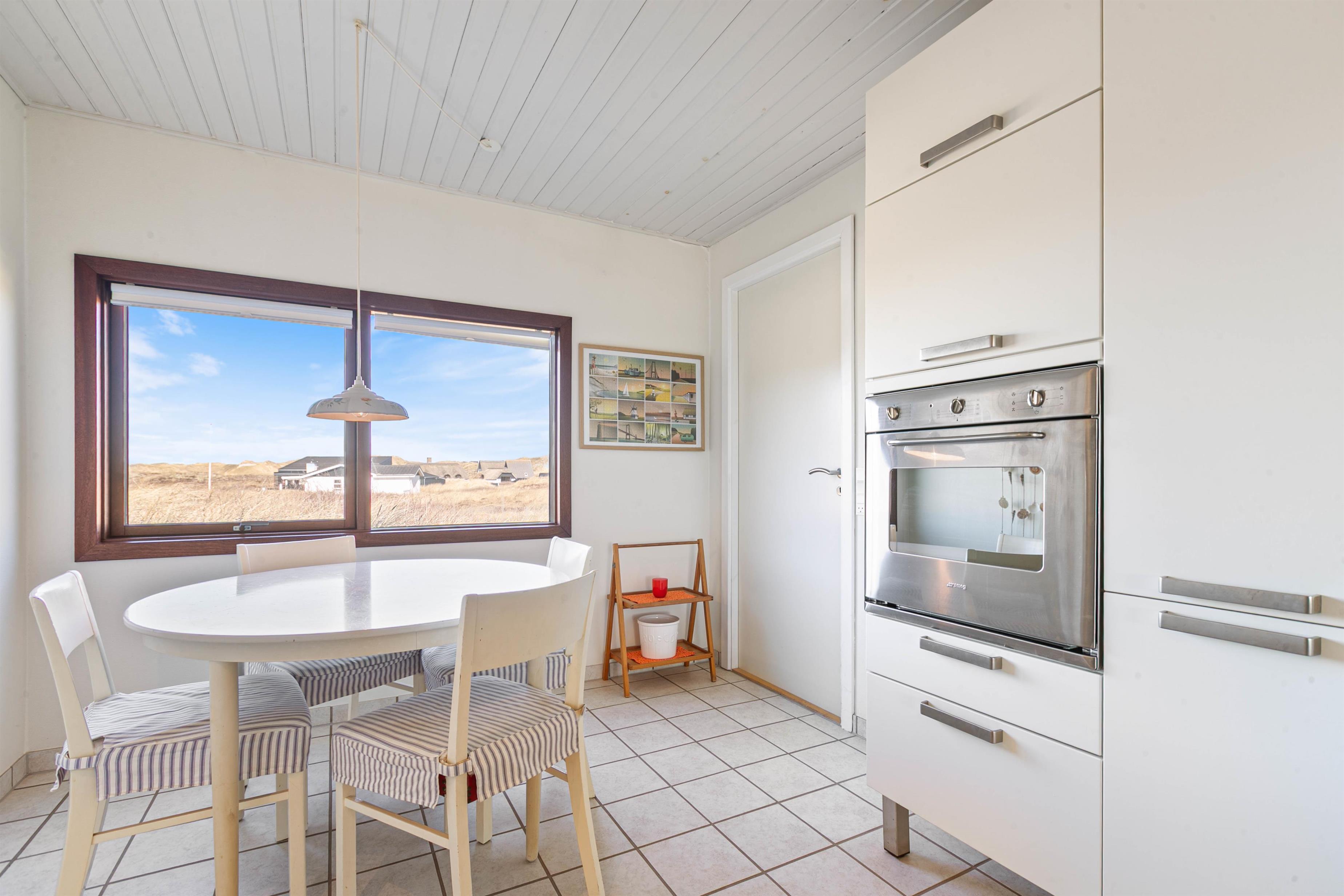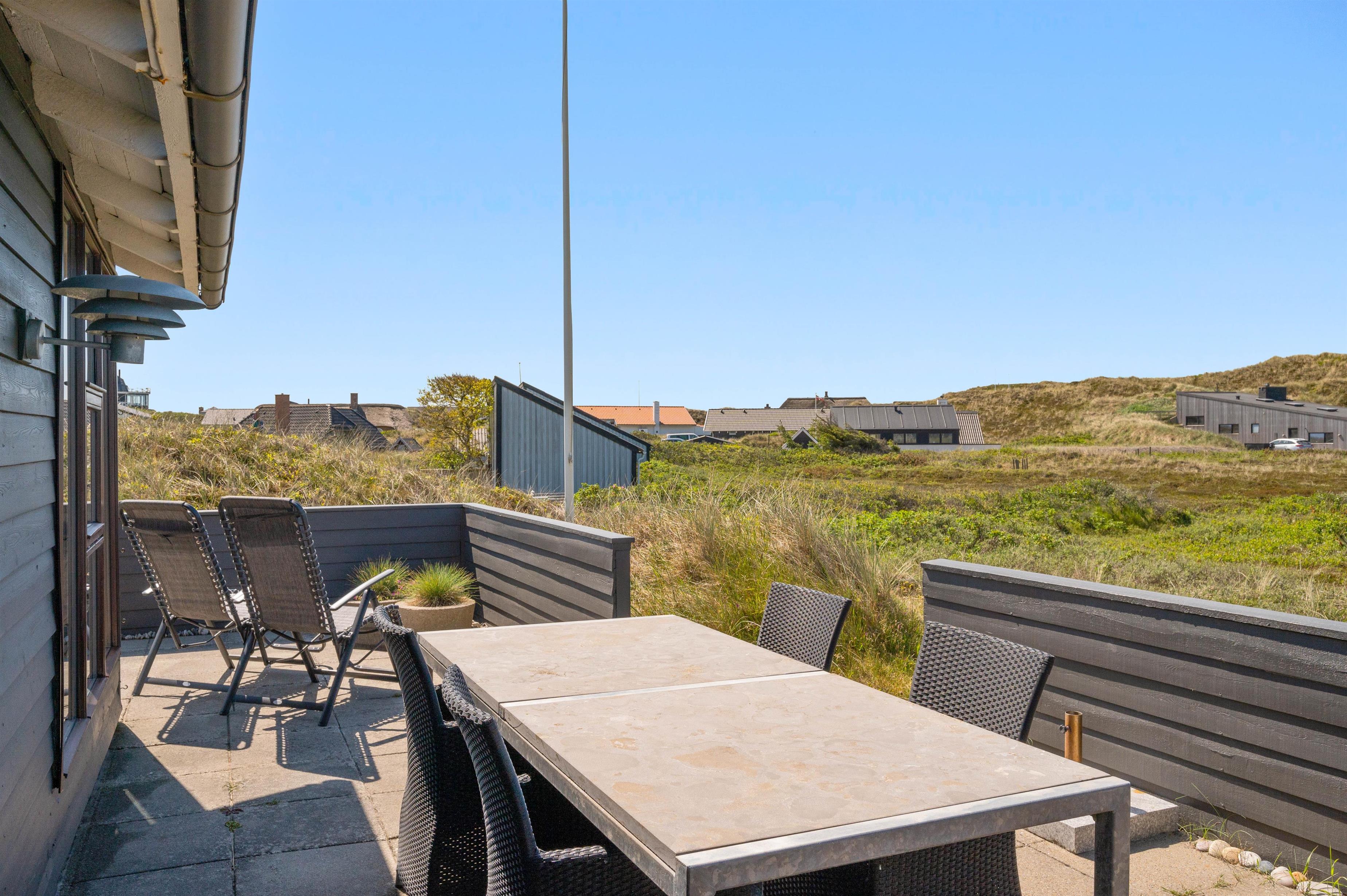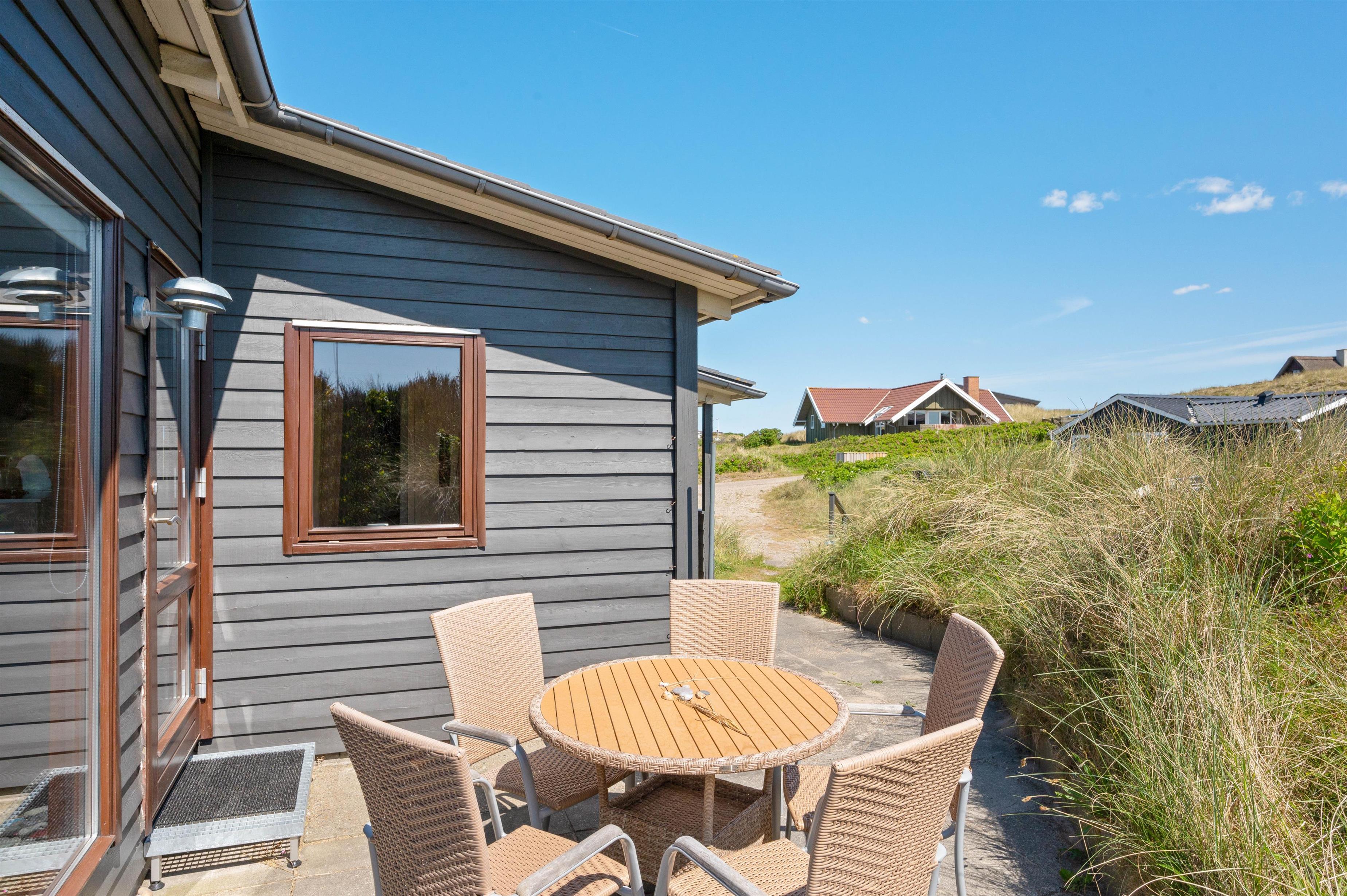 Sommerhuset ligger på Nordsøvej 262 i sidste klitrække mod Vesterhavet og er omgivet af smuk natur til alle sider. Hjertet af huset er det store opholdsrum, som med sine mange vinduer lukker både lyset og den omkringliggende natur indenfor. Her kan I sidde i sofaen og nyde varmen fra brændeovnen, mens I kigger ud over det bølgende klitlandskab. Huset er lyst og indbydende indrettet med gode møbler og moderne komfort.