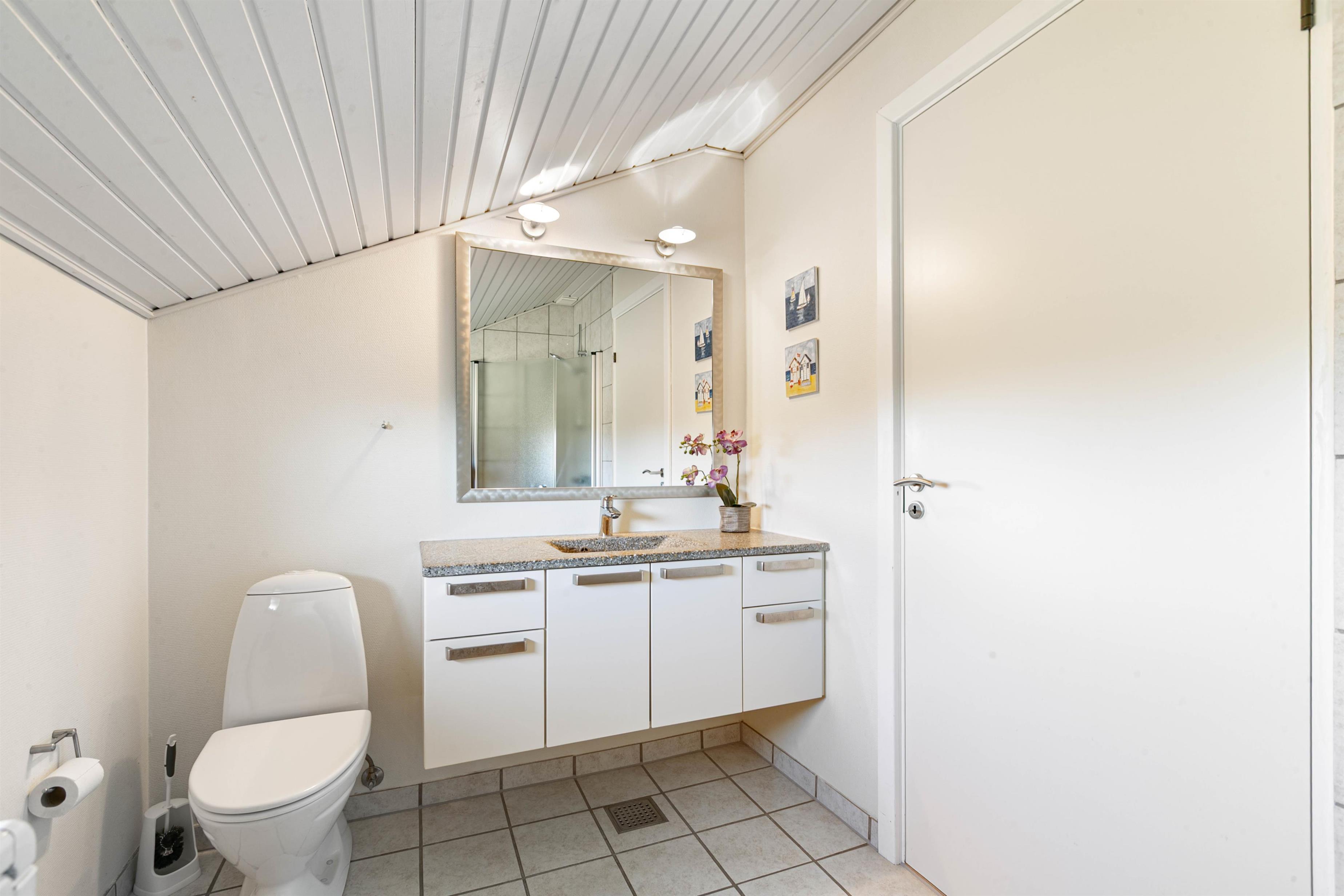 Sommerhuset rummer tre lyse og hyggelige soverum, hvilket giver god plads til op til seks personer. Der er installeret gulvvarme i badeværelset, så I kan nyde komforten af varme fliser under fødderne. En luft-til-luft varmepumpe sikrer, at huset er dejligt tempereret året rundt. Huset er også udstyret med en Chromecast, så I nemt kan streame jeres yndlingsunderholdning.