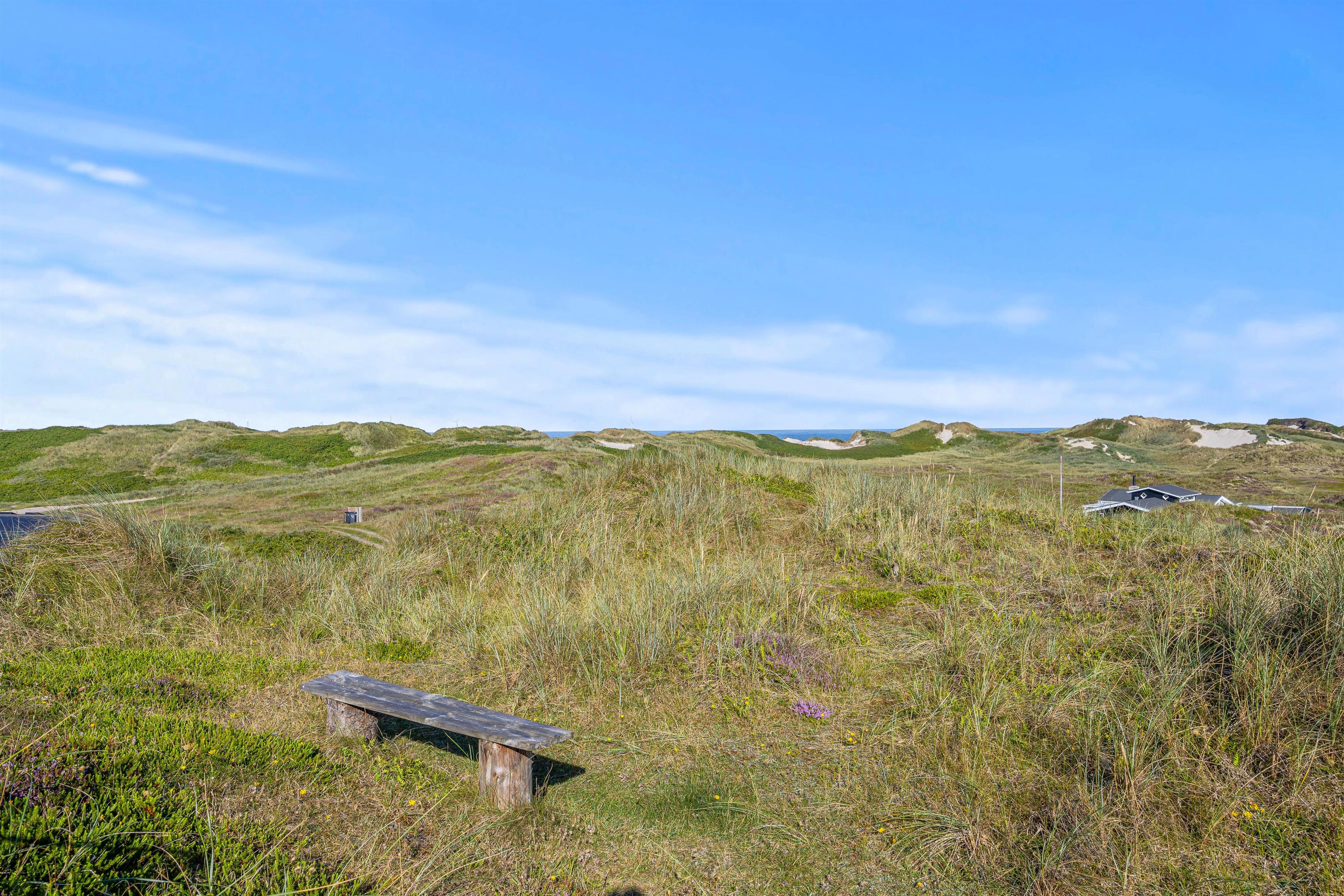 Fra stuen træder I direkte ud på den skønne syd-, øst-, og vestvendte terrasse med områdets måske nok flotteste udsigt. Terrassen er ideel som morgenterrasse, hvor I har solen i øst. I løbet af dagen kan I nyde solen henslængt i en liggestol, mens I om aftenen kan tænde op i grillen og stege et par saftige bøffer, alt imens I betragter den røde solnedgang bag klitterne og lytter til Vesterhavets brusende bølger i baggrunden.