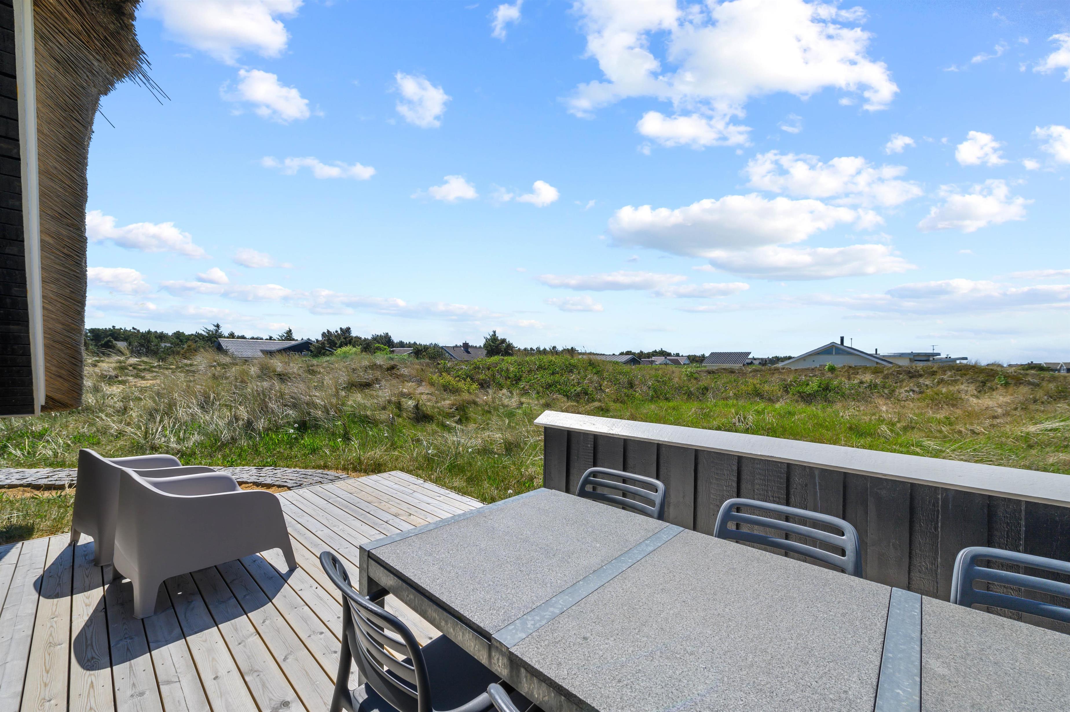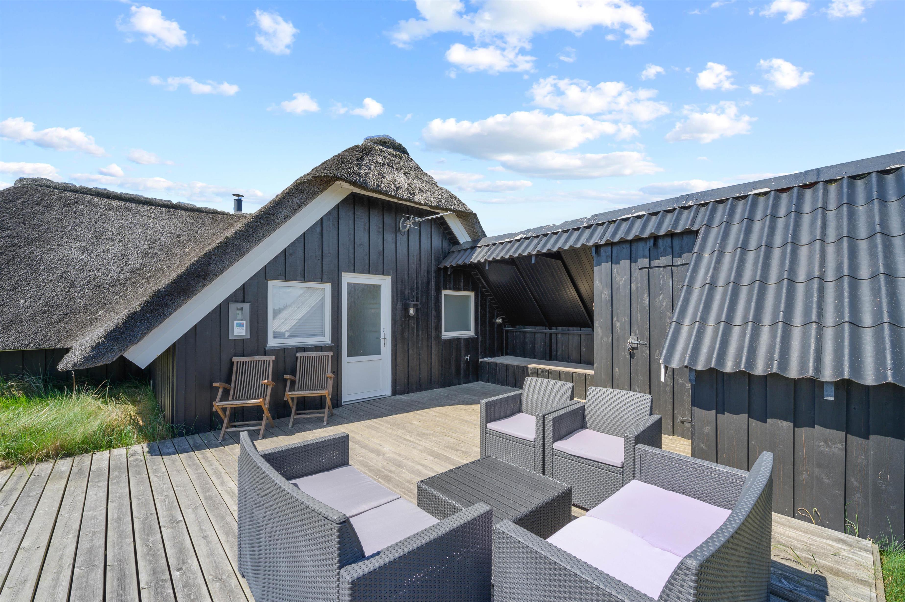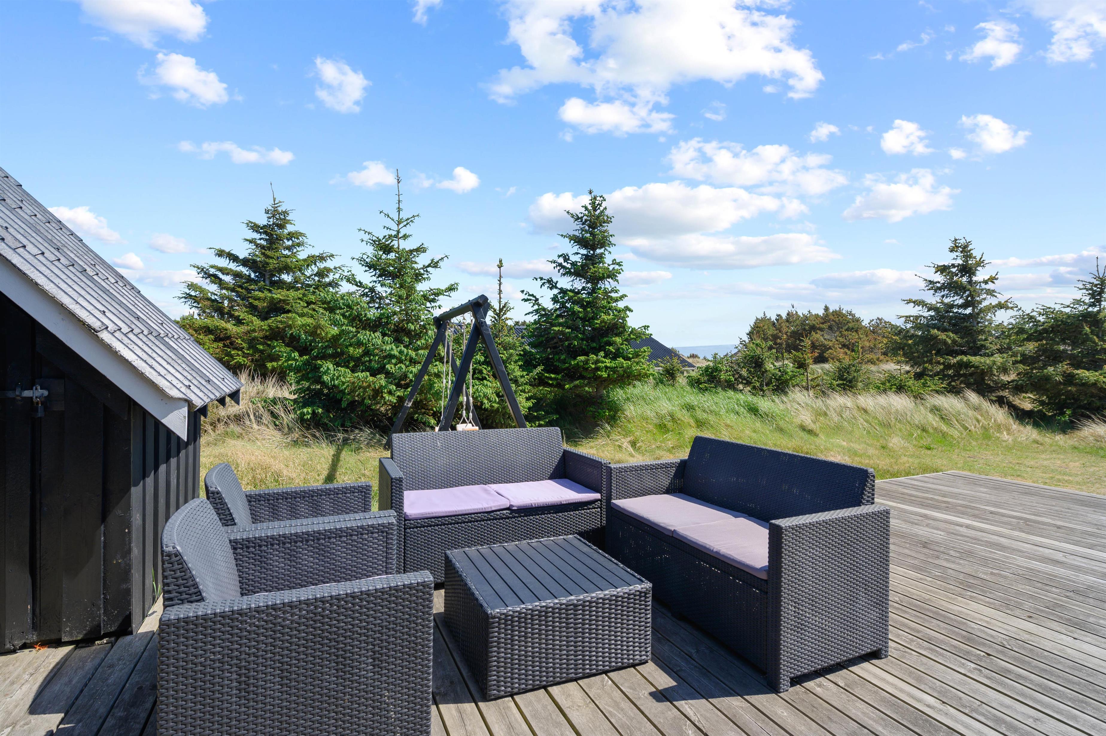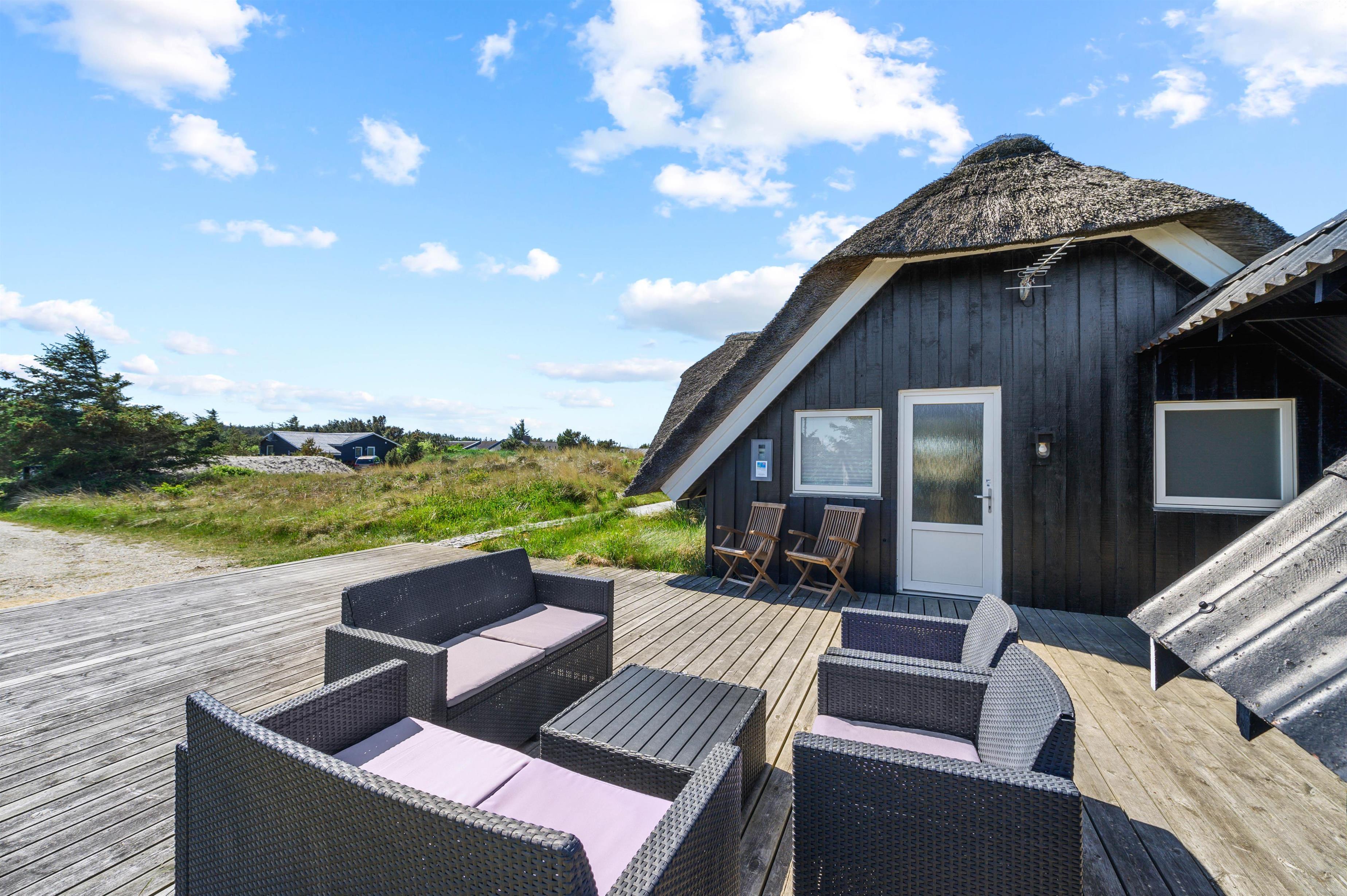 Sommerhuset har flere dejlige terrasser, som I kan tilbringe de varme feriedage på. Mod vest er der en delvist afskærmet terrasse, hvor I har en skøn udsigt ud over klitlandskabet mod vest. Mod øst er der en skøn terrasse, som I kan nyde dagens første kop kaffe på til solopgangen, mens resten af familien stadig sover.