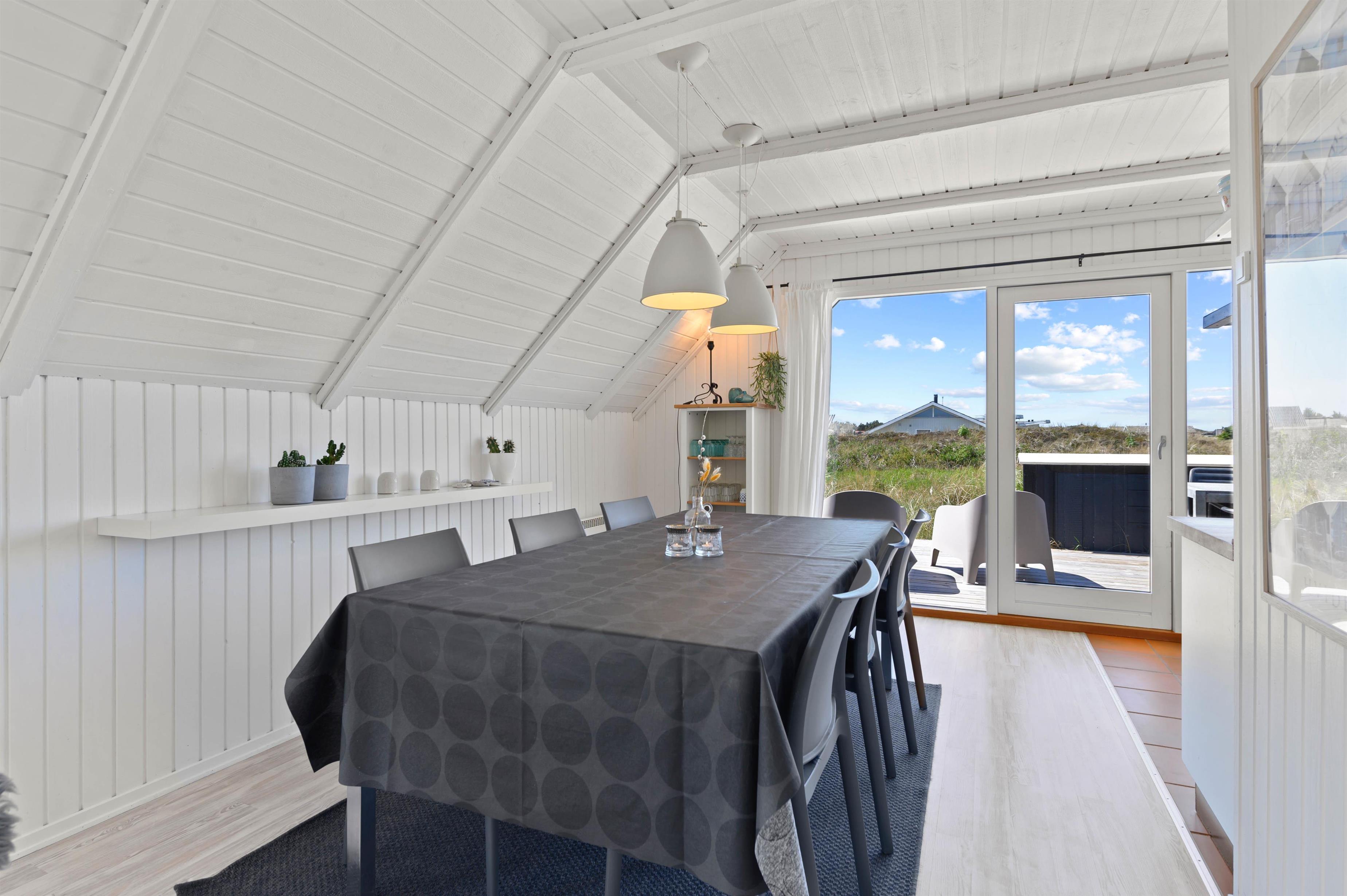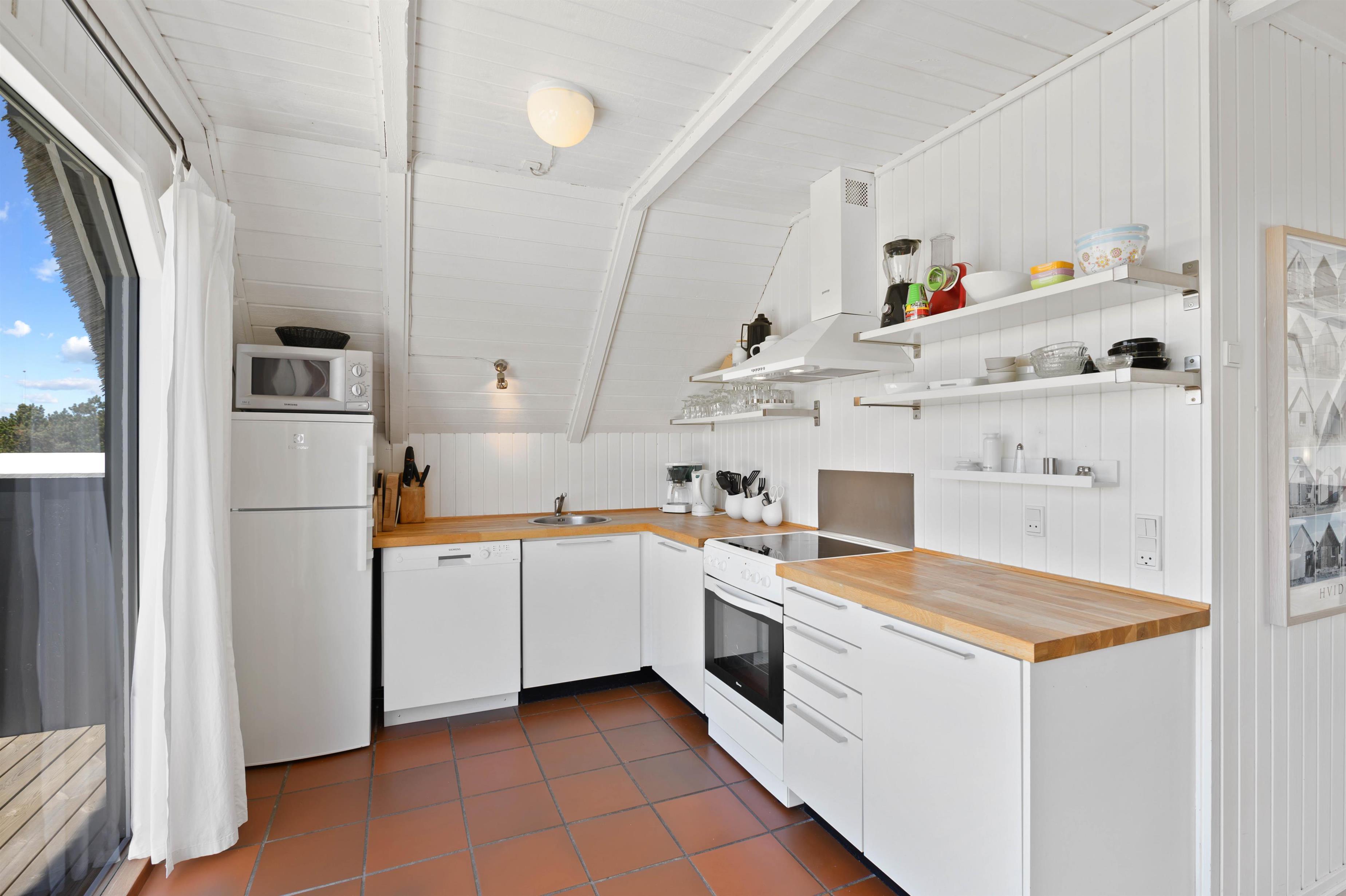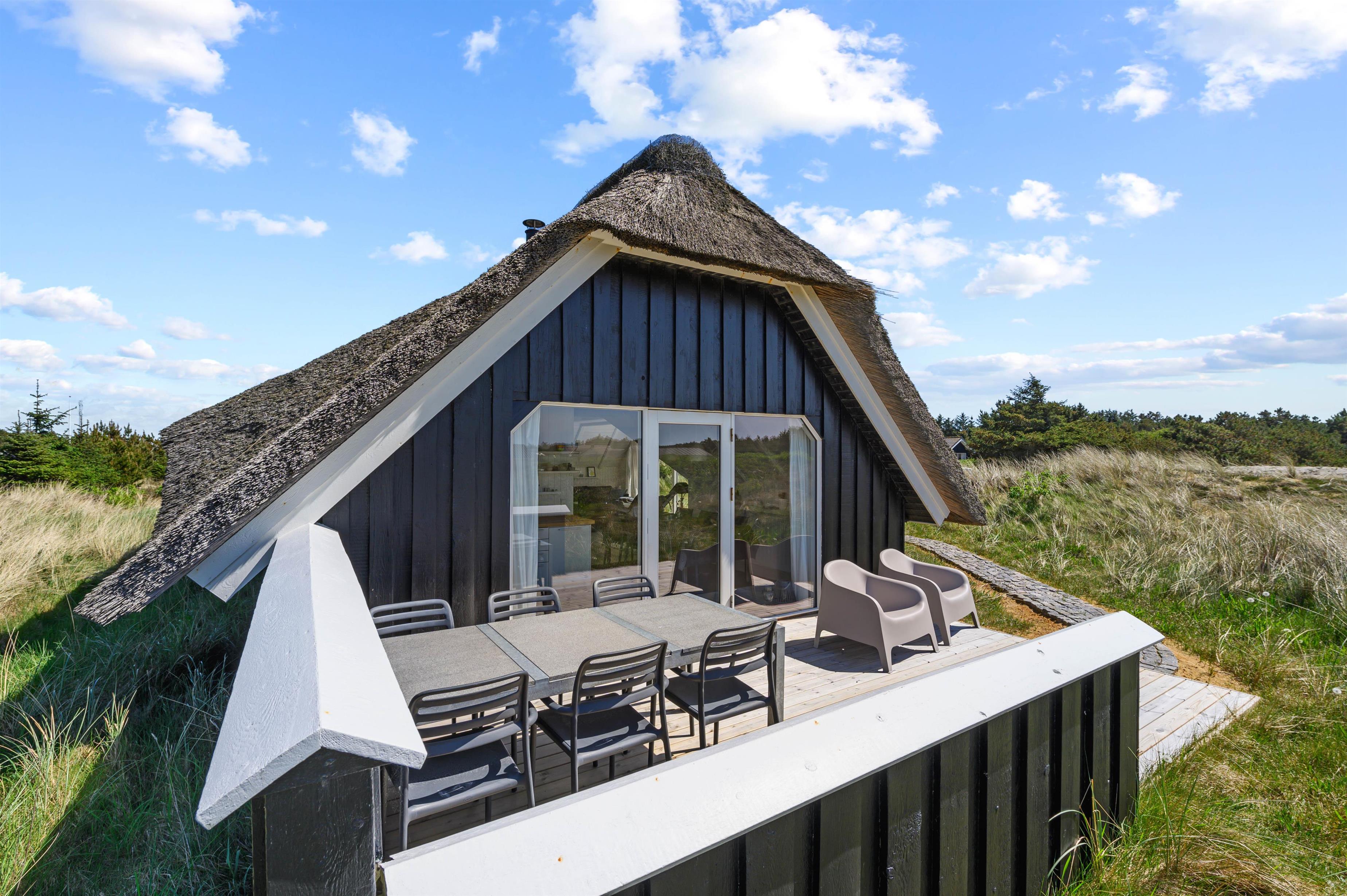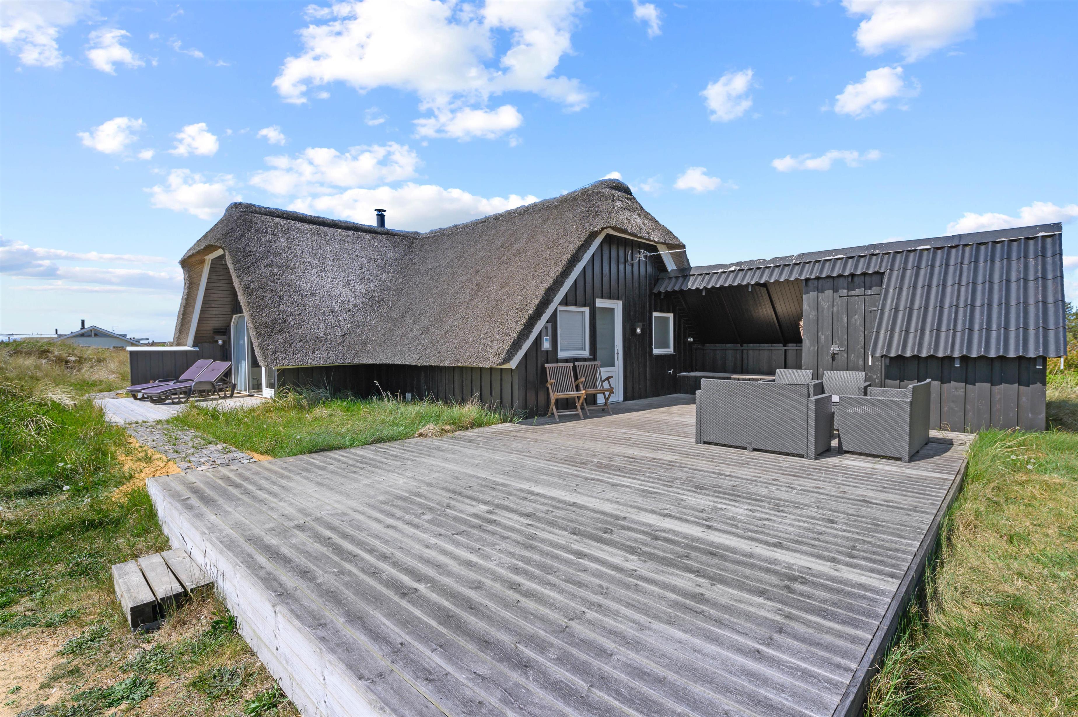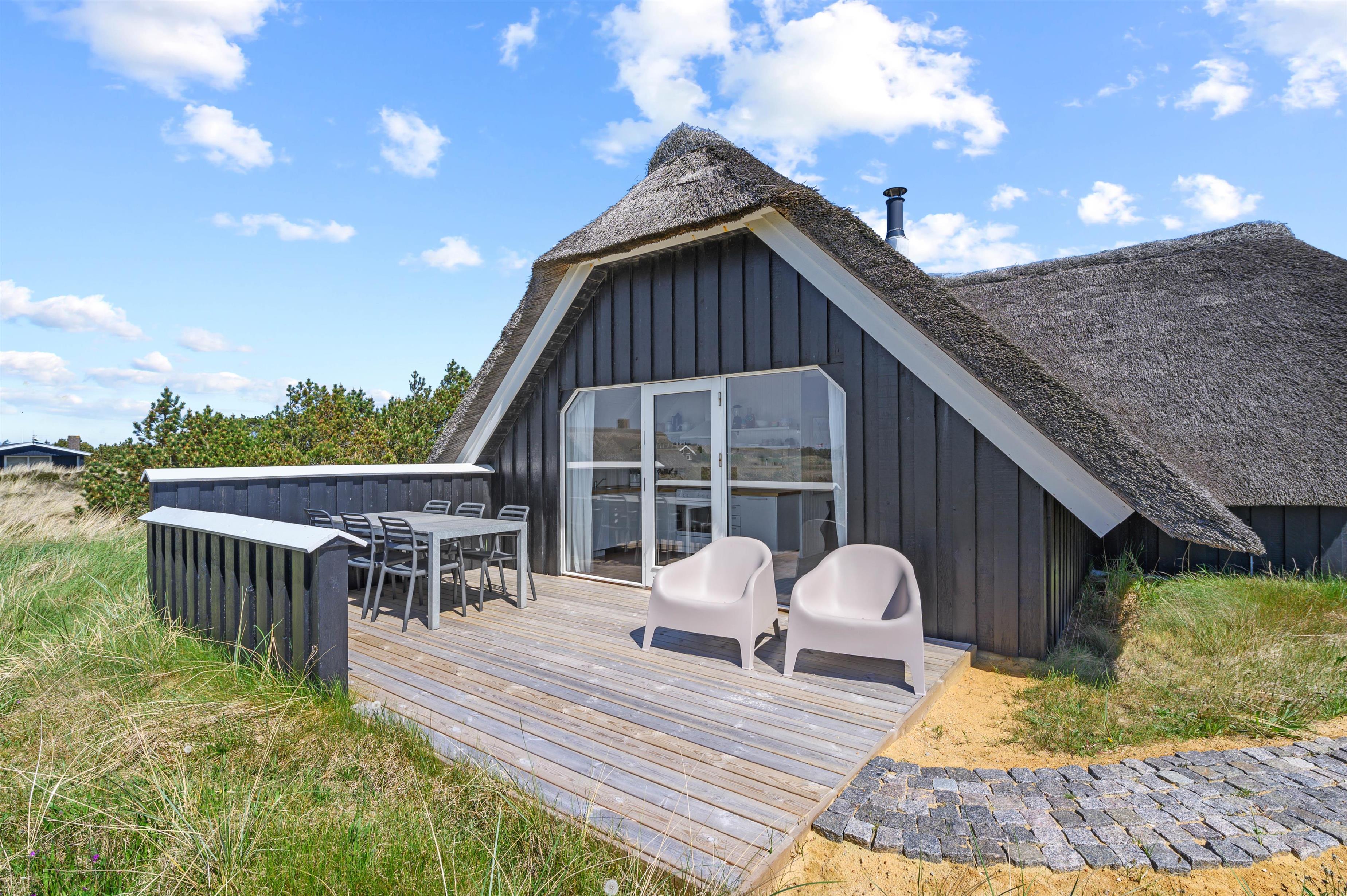 Sommerhuset har flere dejlige terrasser, som I kan tilbringe de varme feriedage på. Mod vest er der en delvist afskærmet terrasse, hvor I har en skøn udsigt ud over klitlandskabet mod vest. Mod øst er der en skøn terrasse, som I kan nyde dagens første kop kaffe på til solopgangen, mens resten af familien stadig sover.
