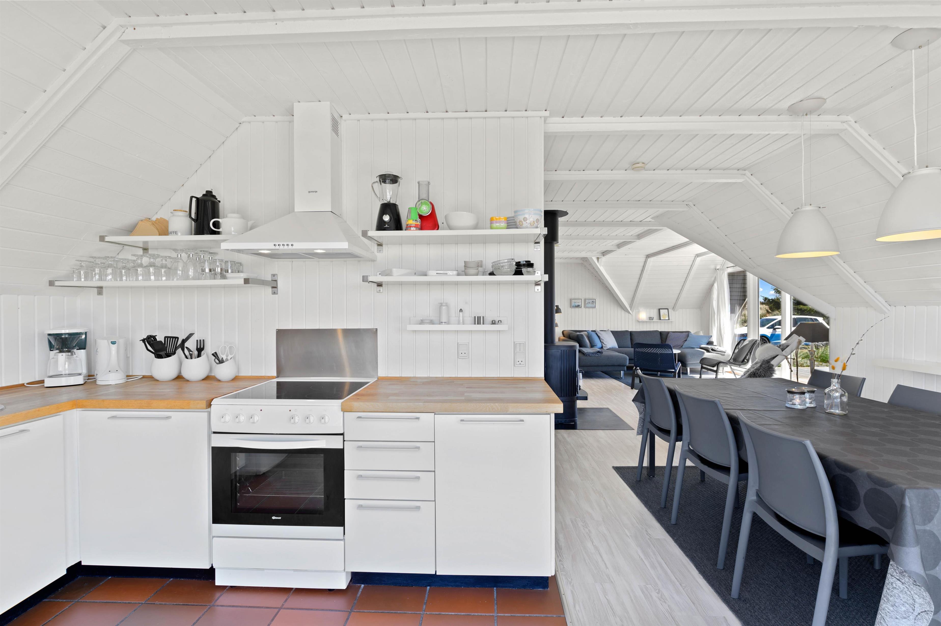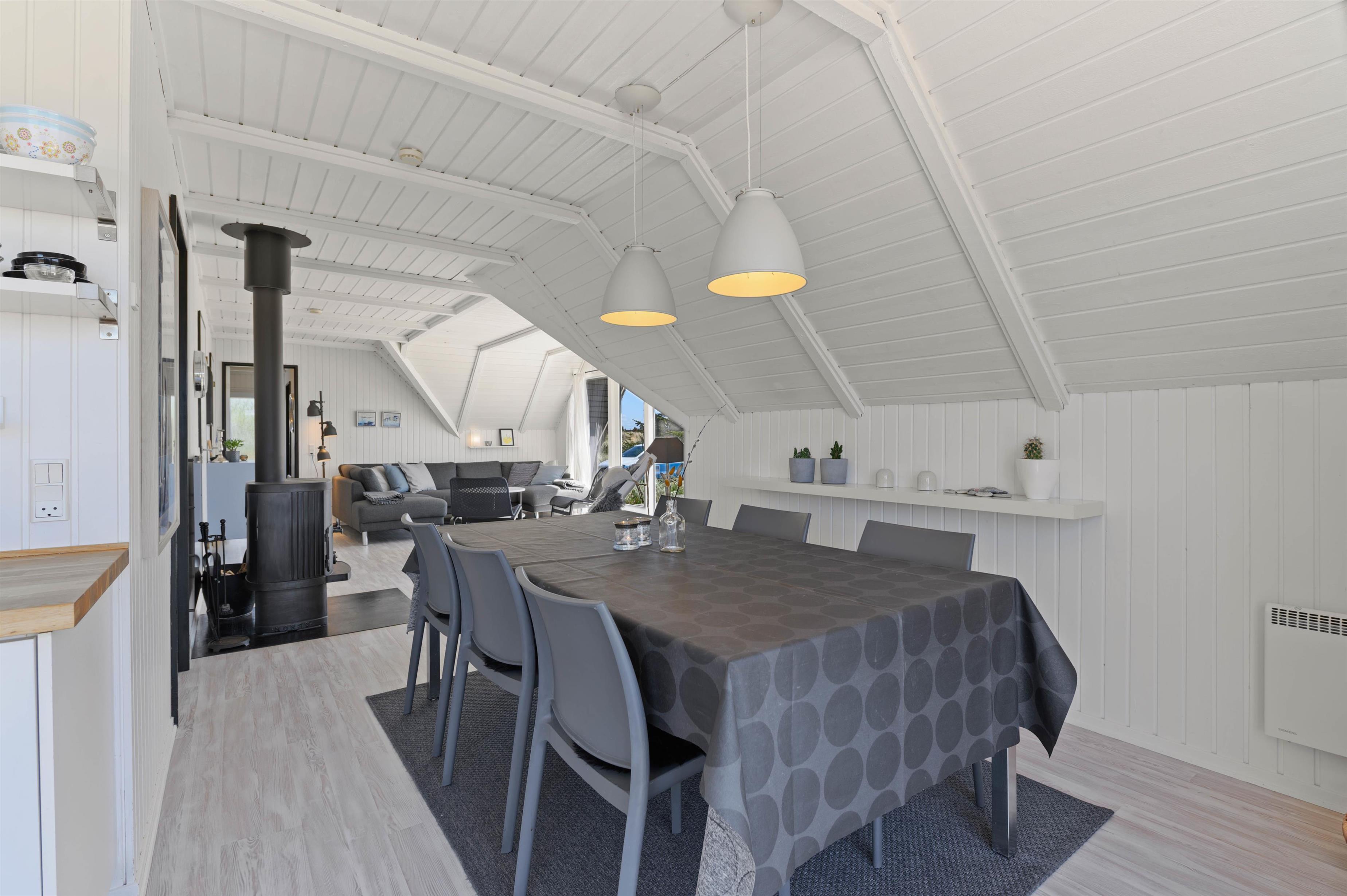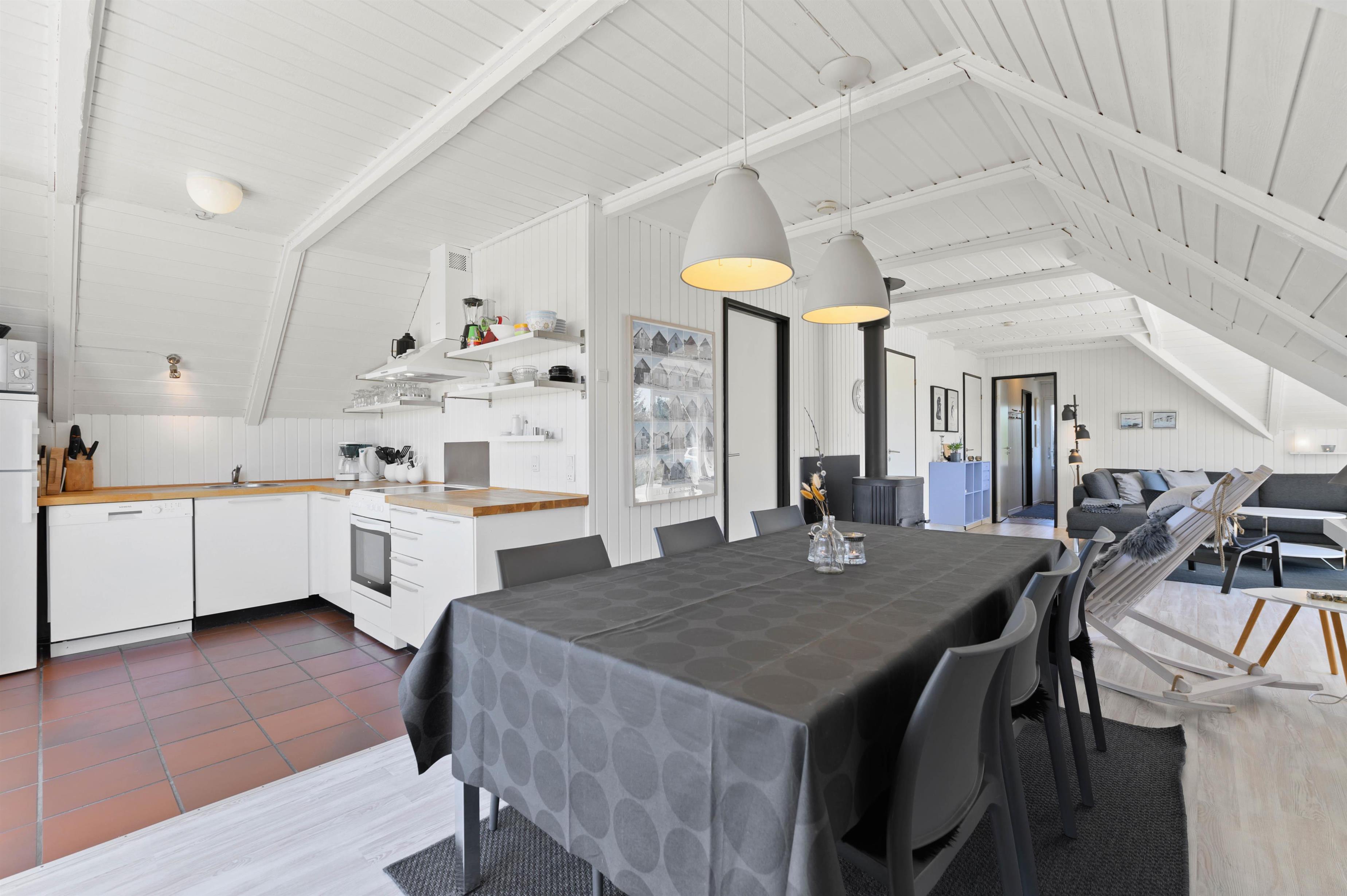 Sommerhuset på Jakob Bondes Vej 14 rummer en lys og venlig indretning, som I helt sikkert vil finde jer godt tilpas i på ferien. Hjertet i feriehuset er alrummet, hvor I kan tilbringe hyggelige feriestunder med god mad, sjove spil og spændende film. Brændeovnens varme og knitren i baggrunden fuldender den gode feriestemning.