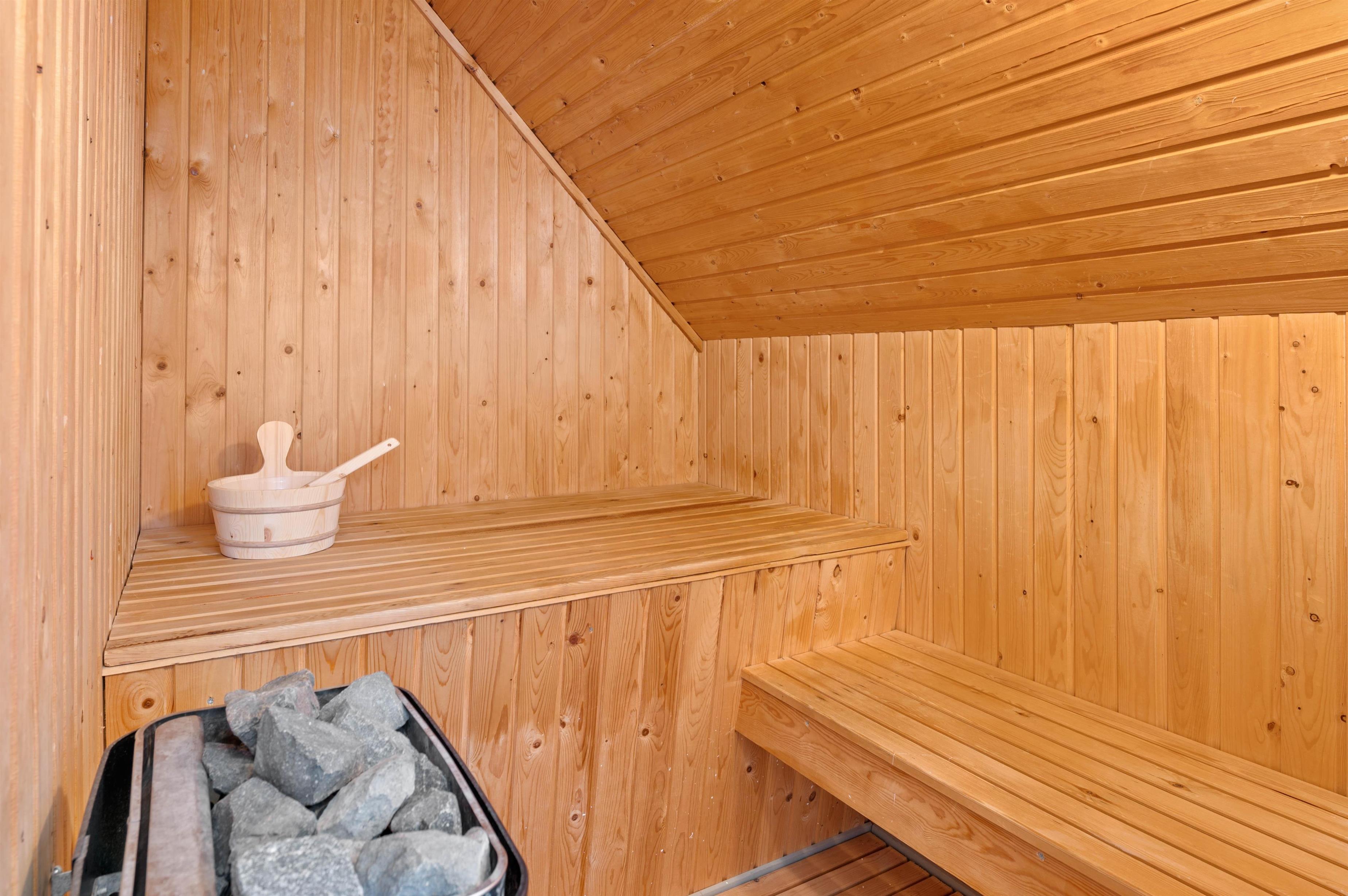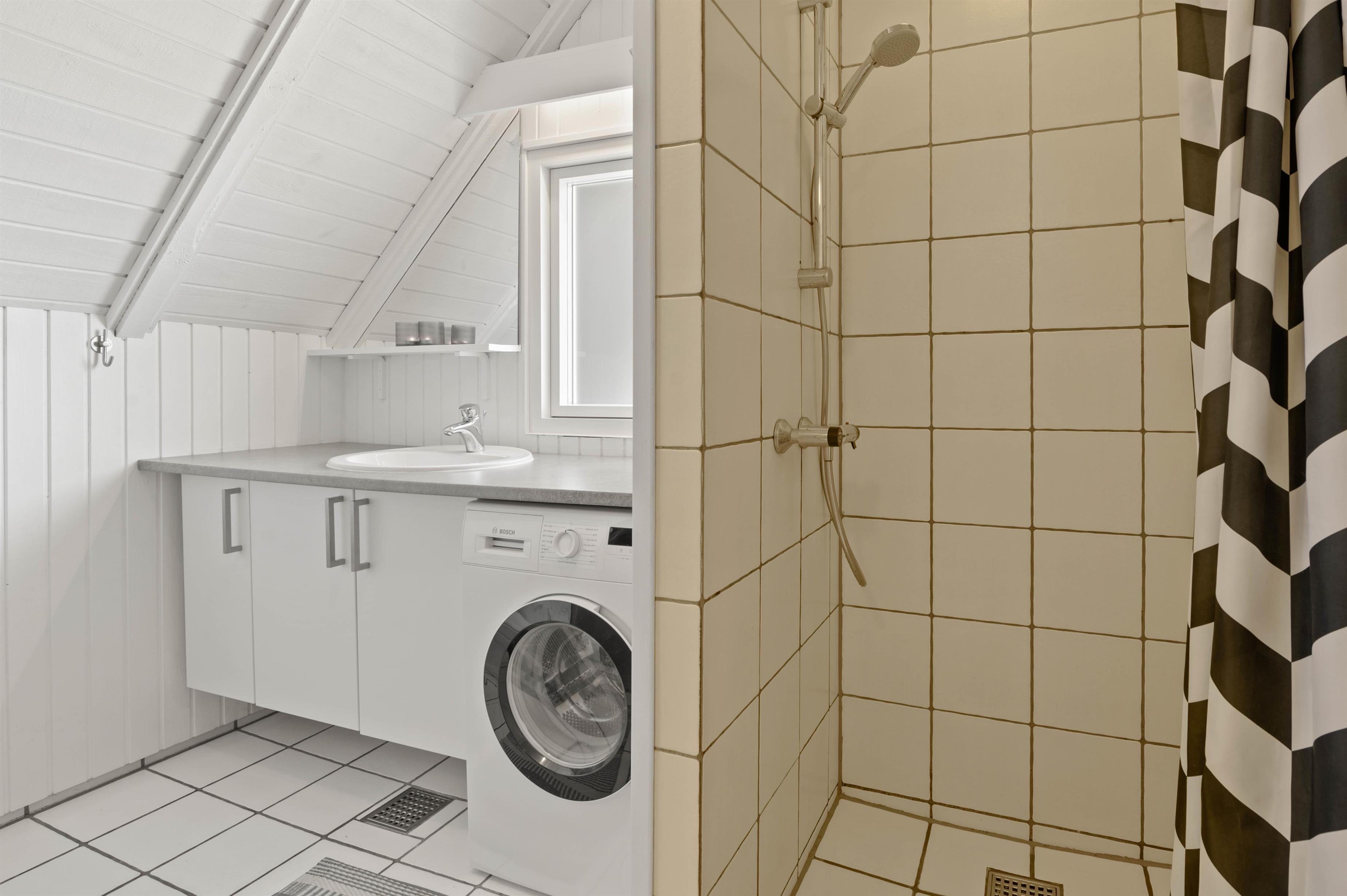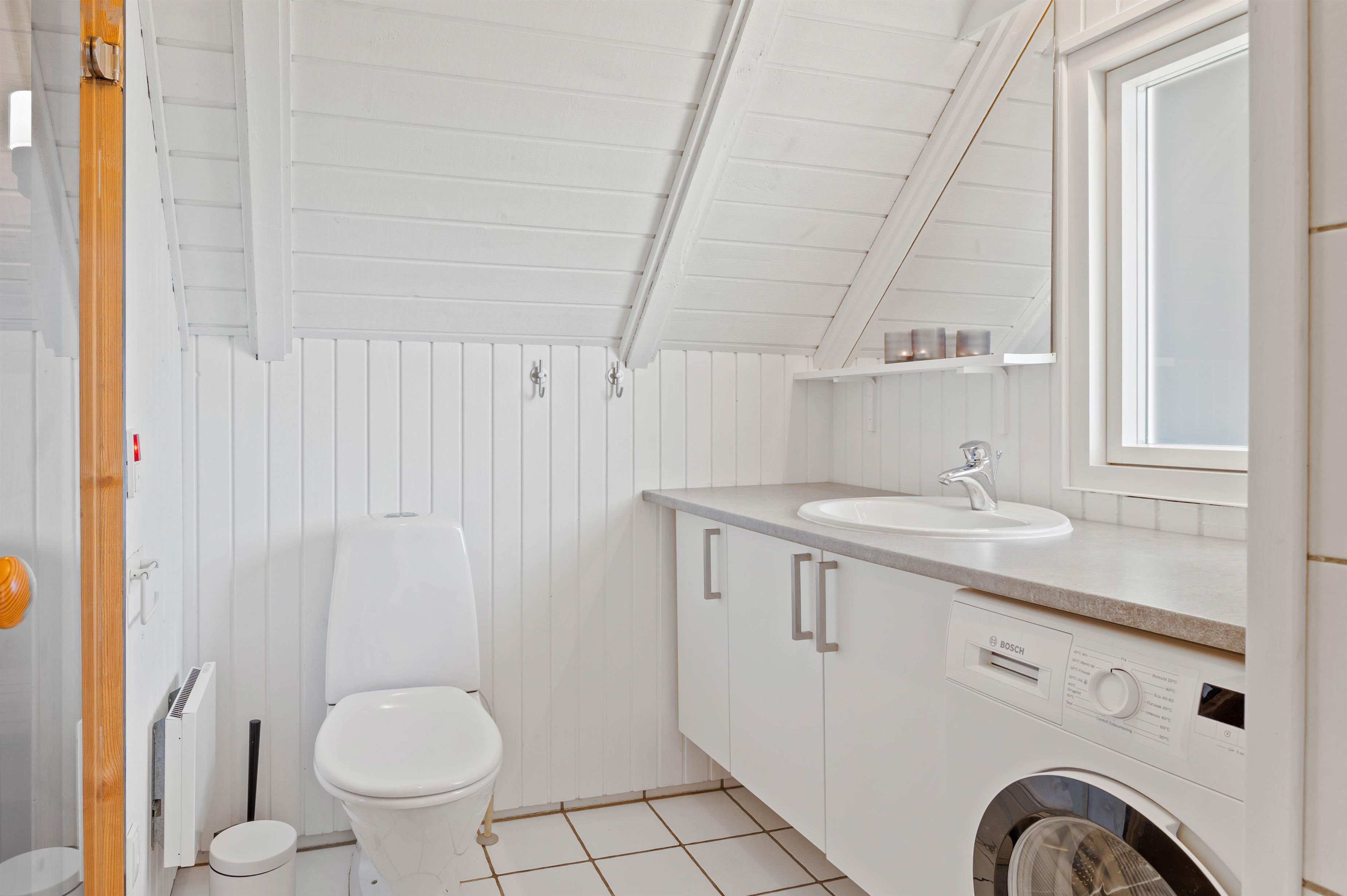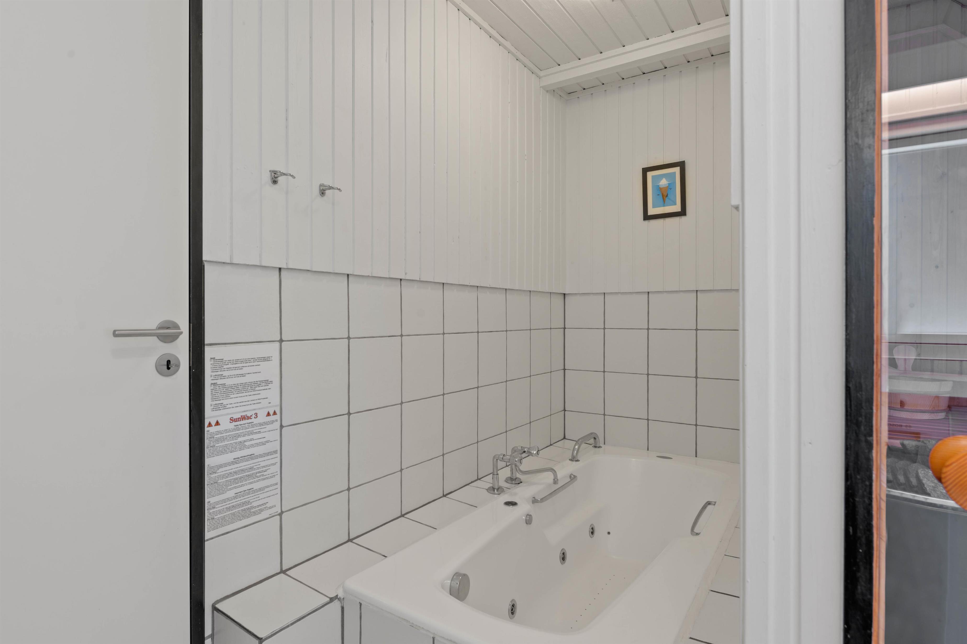 Sommerhuset har 1 badeværelse, hvor I også finder feriehusets højdepunkter; spaen og saunaen. Her er der lagt op til rolige, afslappende stunder, hvor I kan komme helt ned i gear og få ladt jeres batterier op igen.