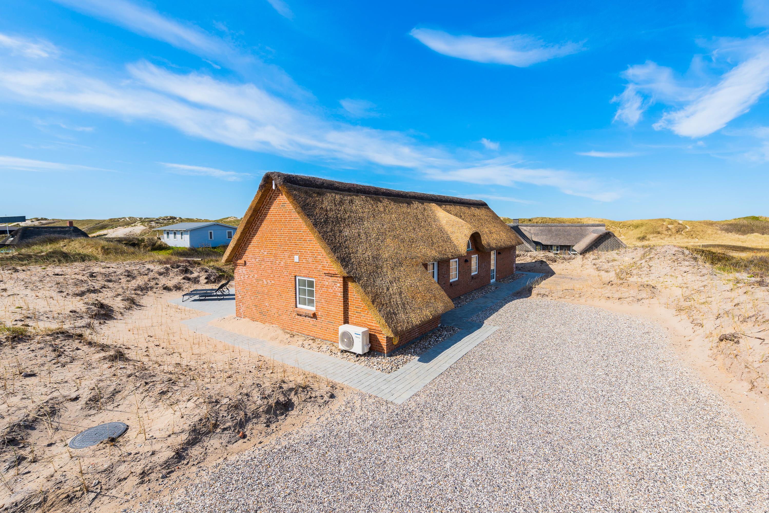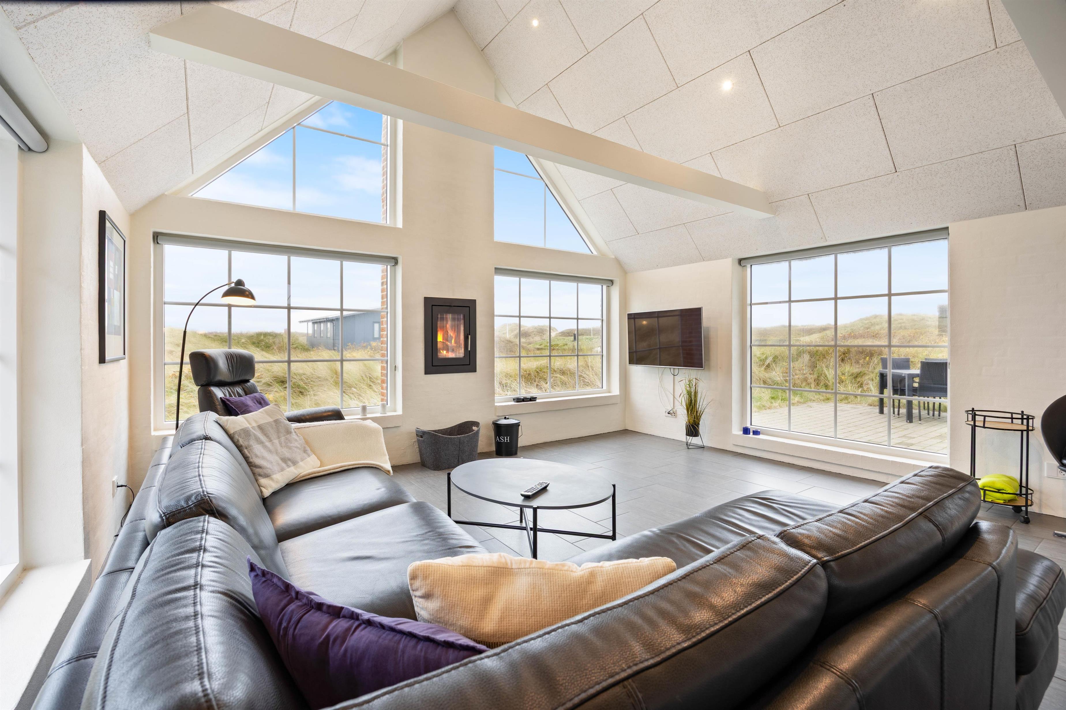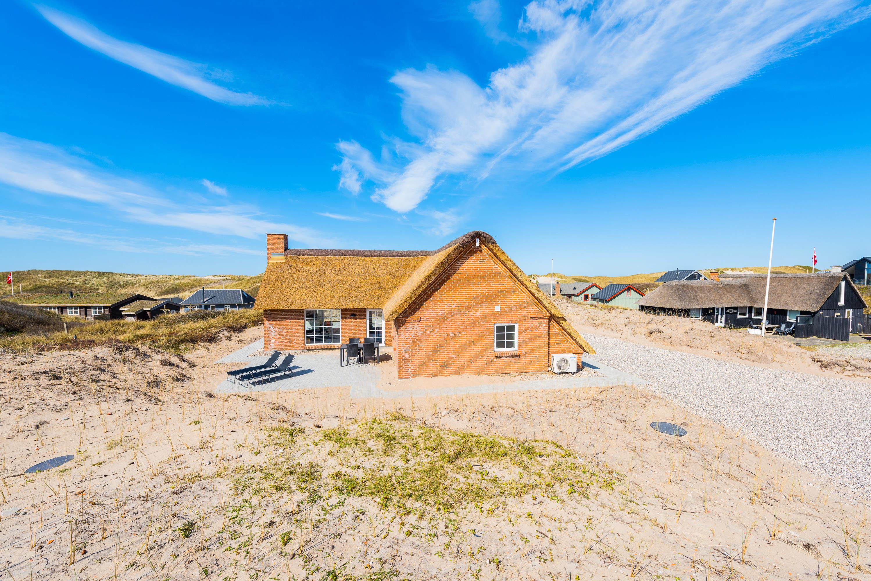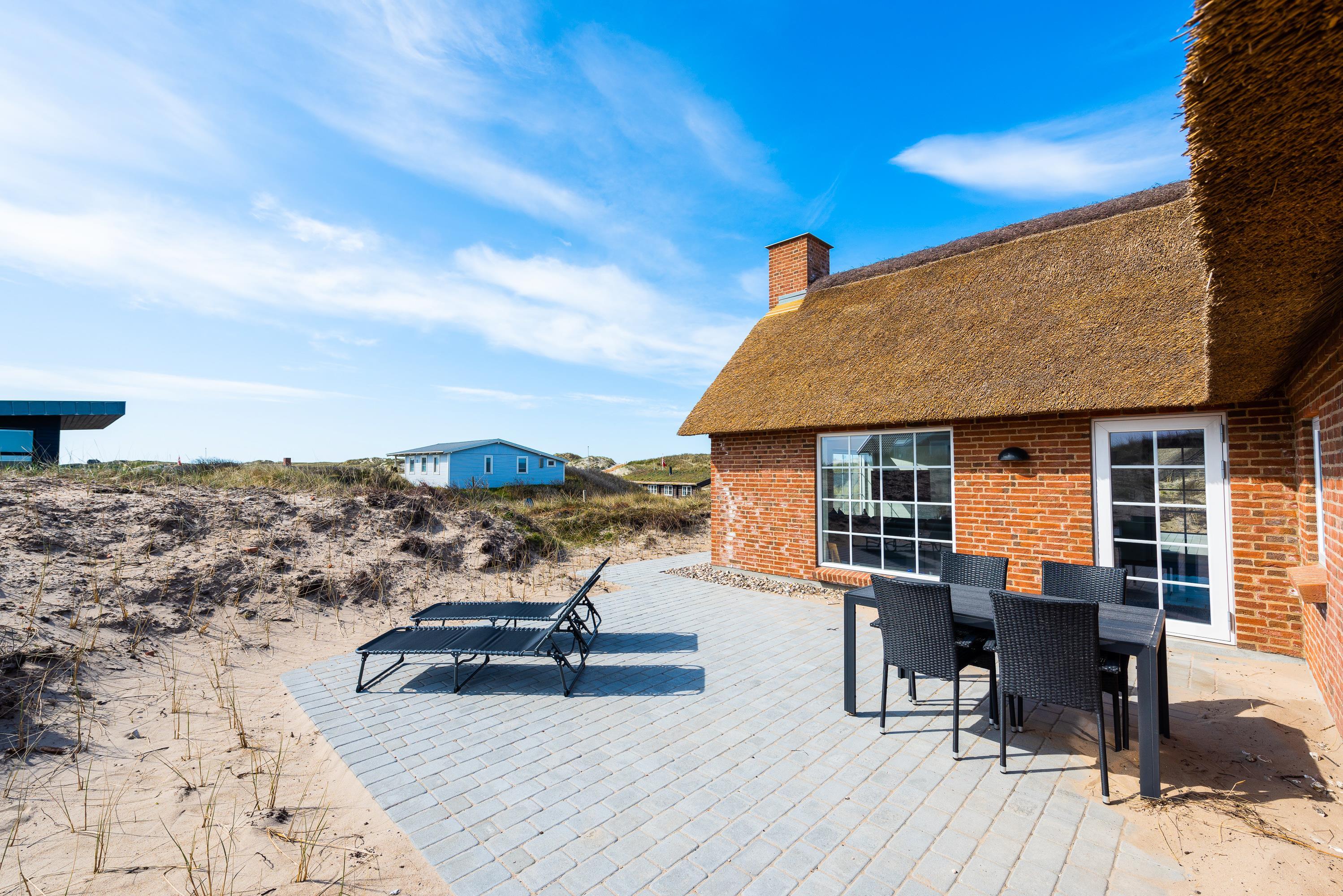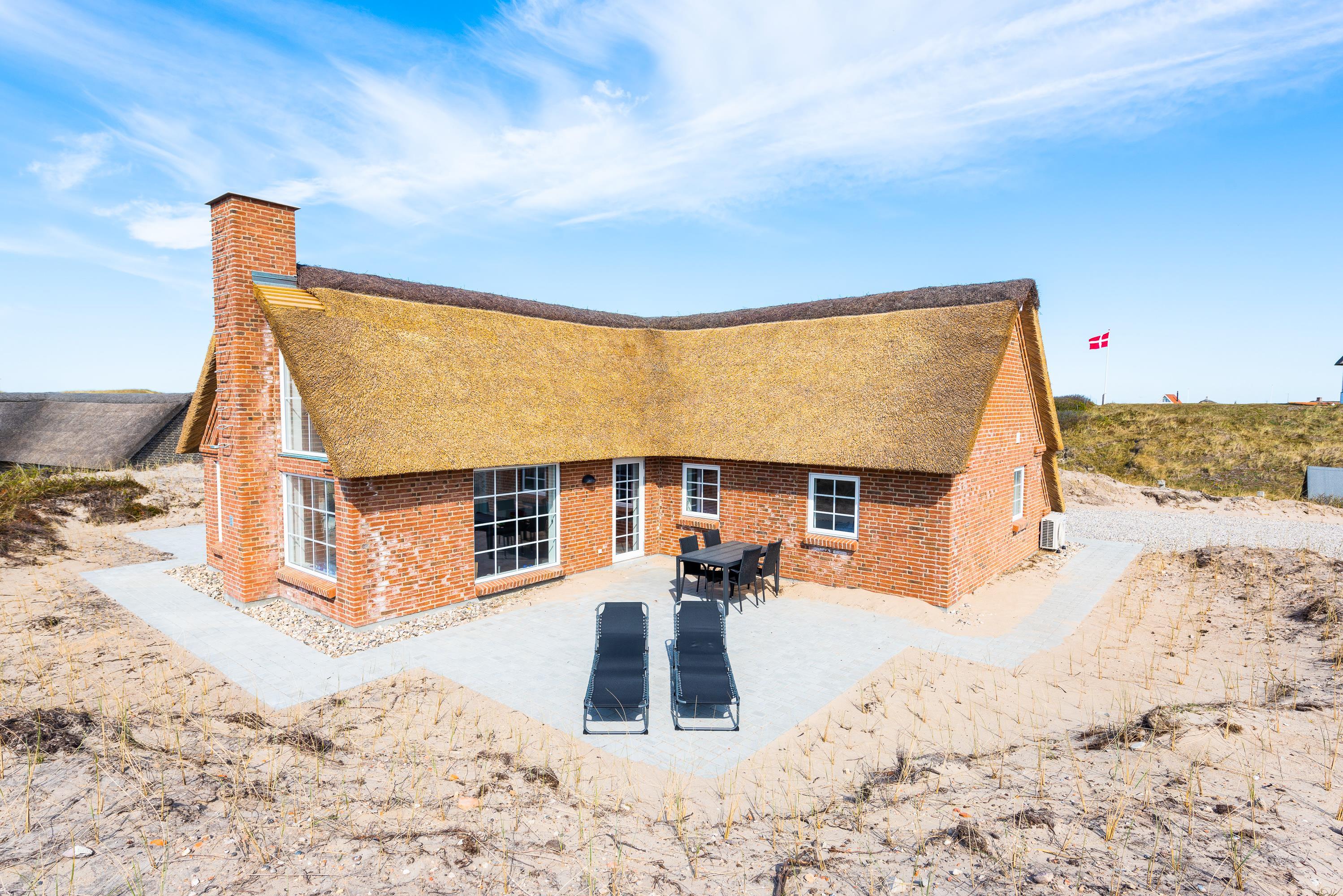 Rundt om sommerhuset går en dejlig terrasse til solbadning i liggestolene. Der er selvfølgelig en grill, så I kan spise en lækker middag rundt om havebordet på de dejlige lune sommeraftener. Sommerhusets beliggenhed er helt fantastisk. Vesterhavet ligger kun 150 meter væk, og på en stille dag kan I nærmest høre bølgernes brusen, når I sidder på terrassen. Den kilometerlange sandstrand indbyder til lange gåture i den friske havluft, og både børnene og hundene vil elske at udforske stranden.