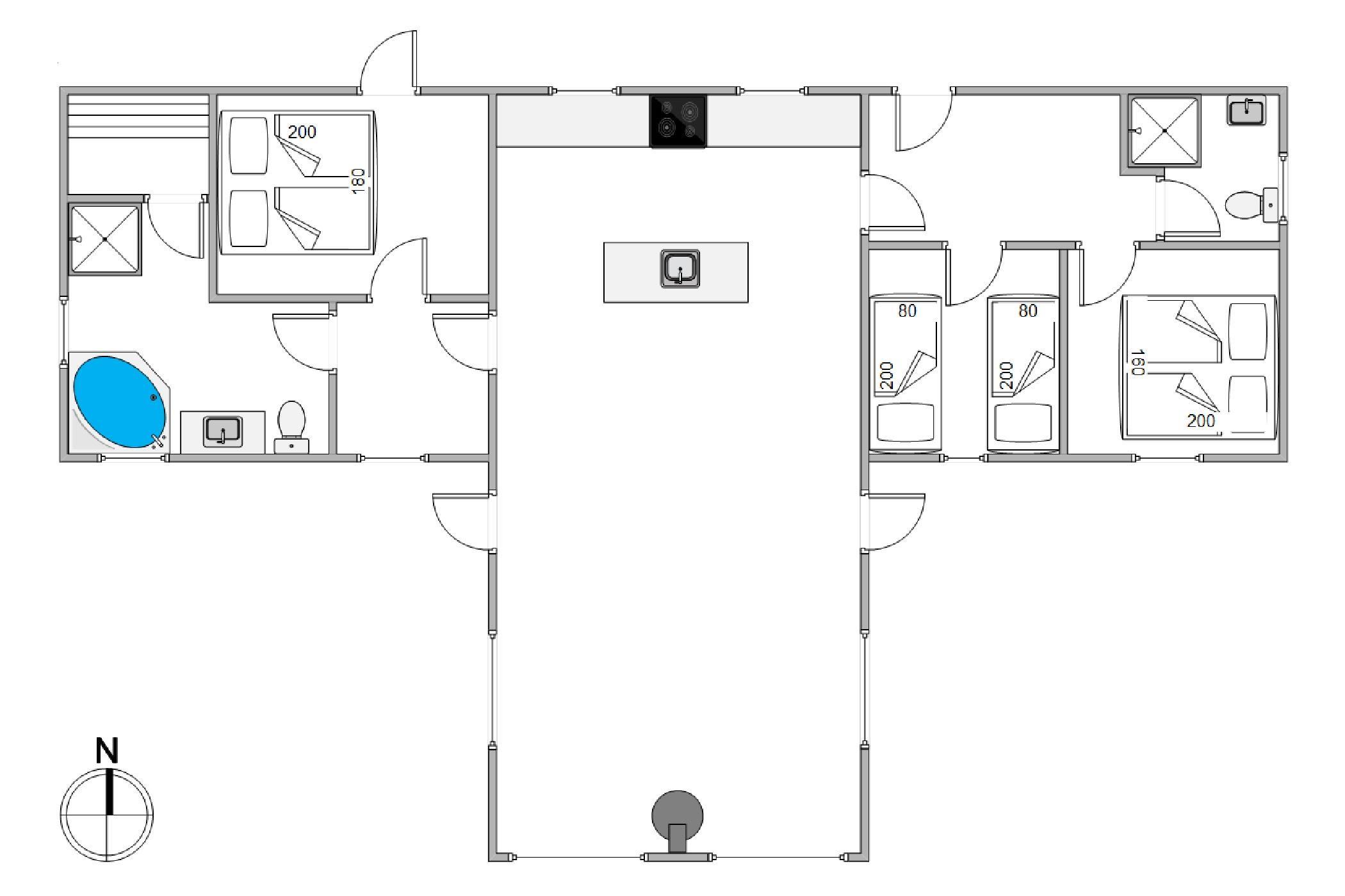 Sommerhuset der er opført i 2020, tilbyder en moderne og indbydende indretning med komfort i højsæde. Huset råder over en rummelig stue med brændeovn, der skaber den perfekte atmosfære efter en dag ved stranden, og giver en klassisk feriestemning, og de knitrende flammer gør det endnu hyggeligere at sidde indenfor i varmen, når vinden rusker udenfor. Stuen åbner op til køkkenet, som er fuldt udstyret med alt, hvad I har brug for, herunder opvaskemaskine og en 60 liters separat fryser, hvilket gør det nemt at forberede måltiderne. For ekstra komfort og bekvemmelighed har sommerhuset både vaskemaskine og tørretumbler til jeres rådighed.