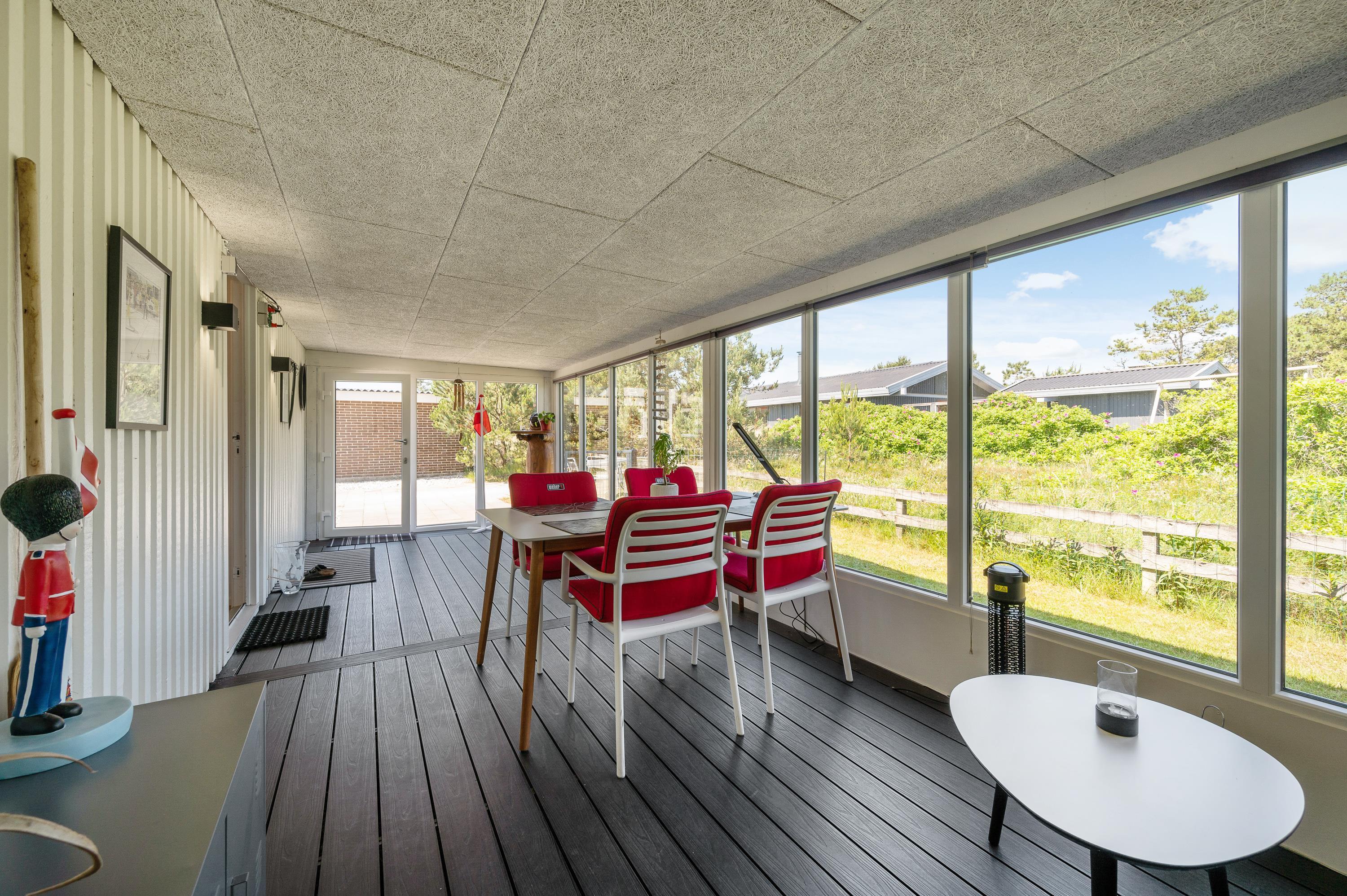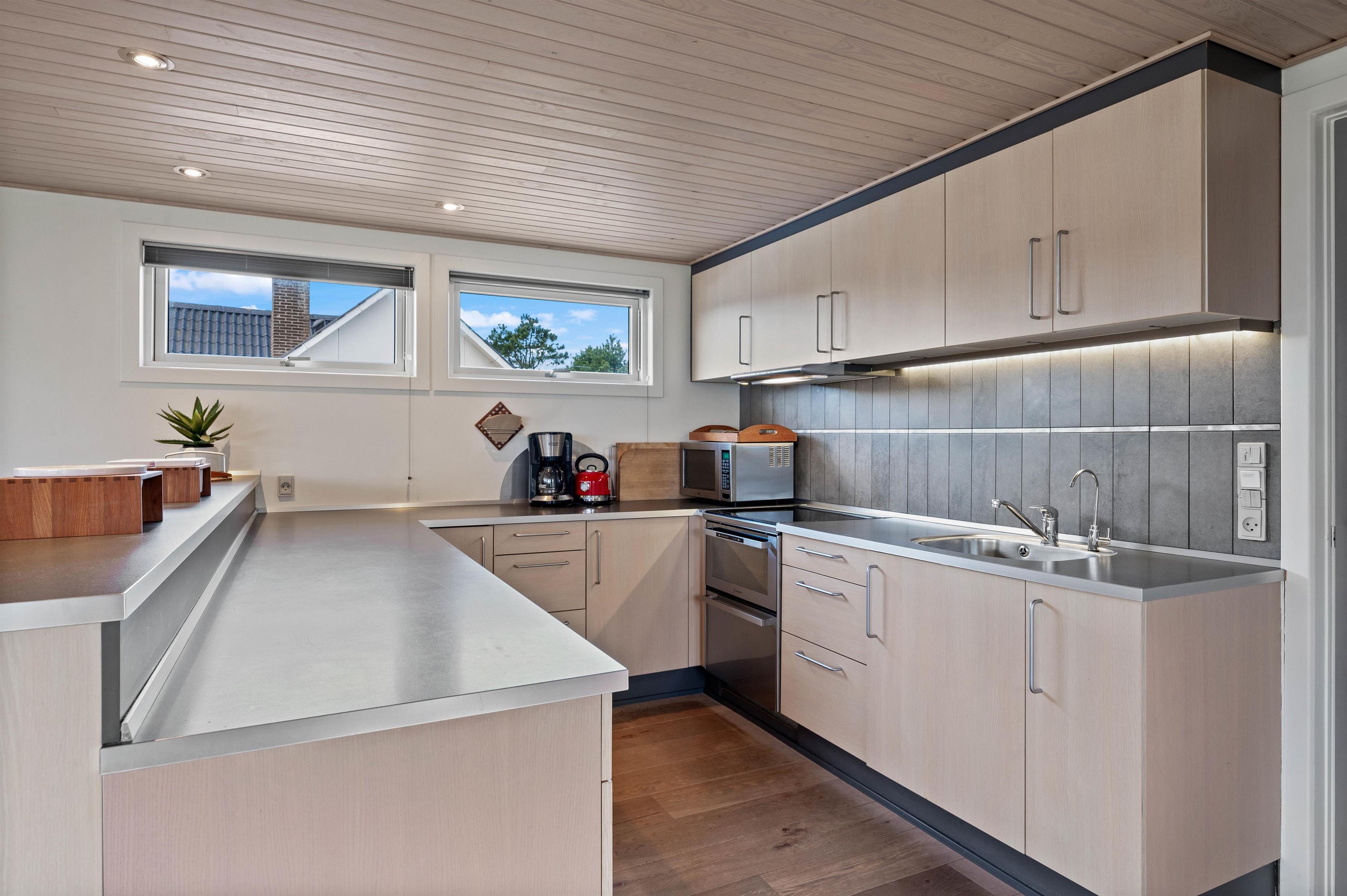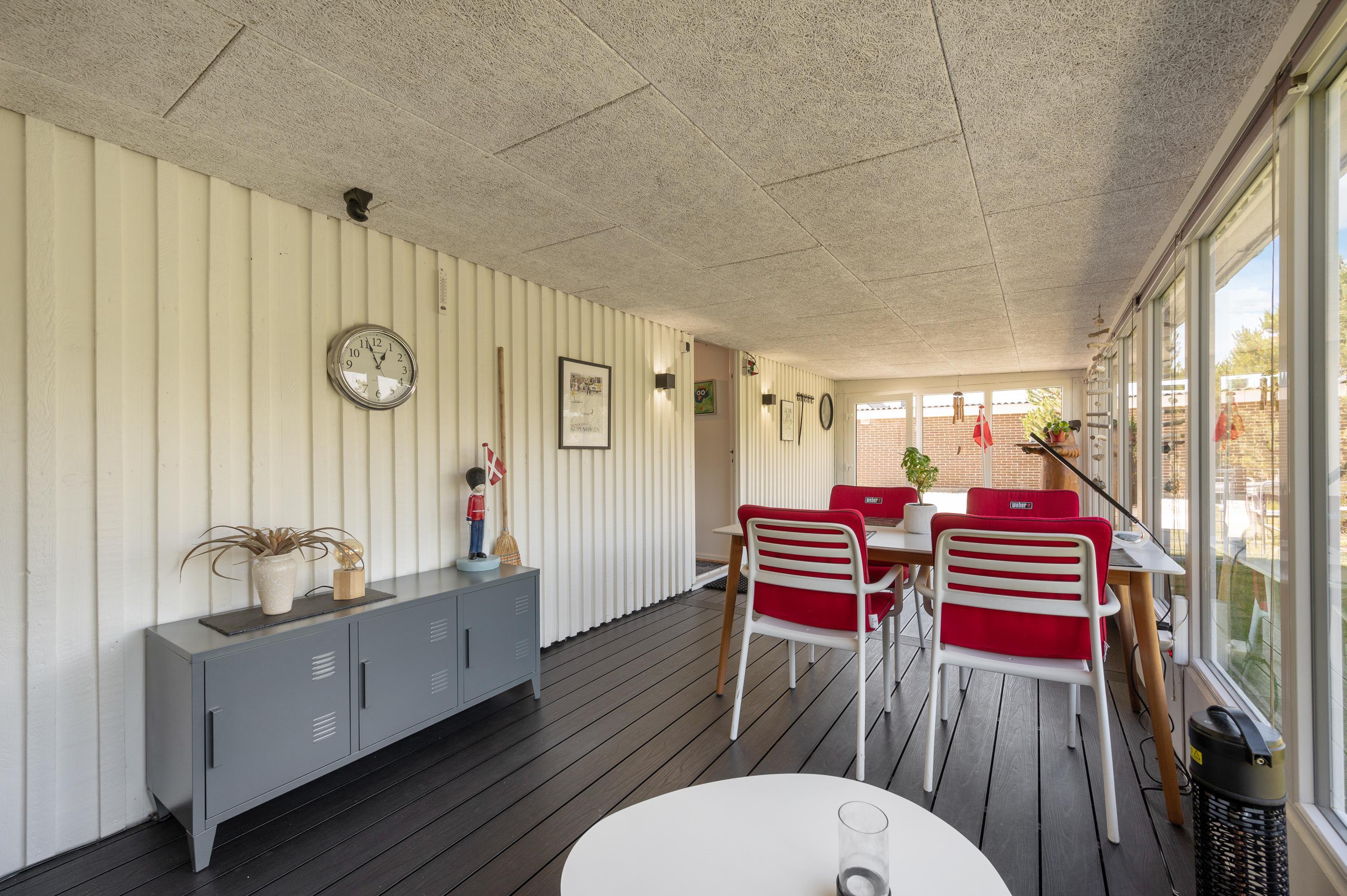 Sommerhusets entré udgør på samme tid en fin udestue, som giver jer mulighed for at nyde omgivelserne hele året rundt. De 2 energivenlige varmepumper sikrer, at I altid har et behageligt indeklima. Derudover kan I få en hjælpende hånd fra vaskemaskinen, tørretumbleren og opvaskemaskinen til hverdagens gøremål.