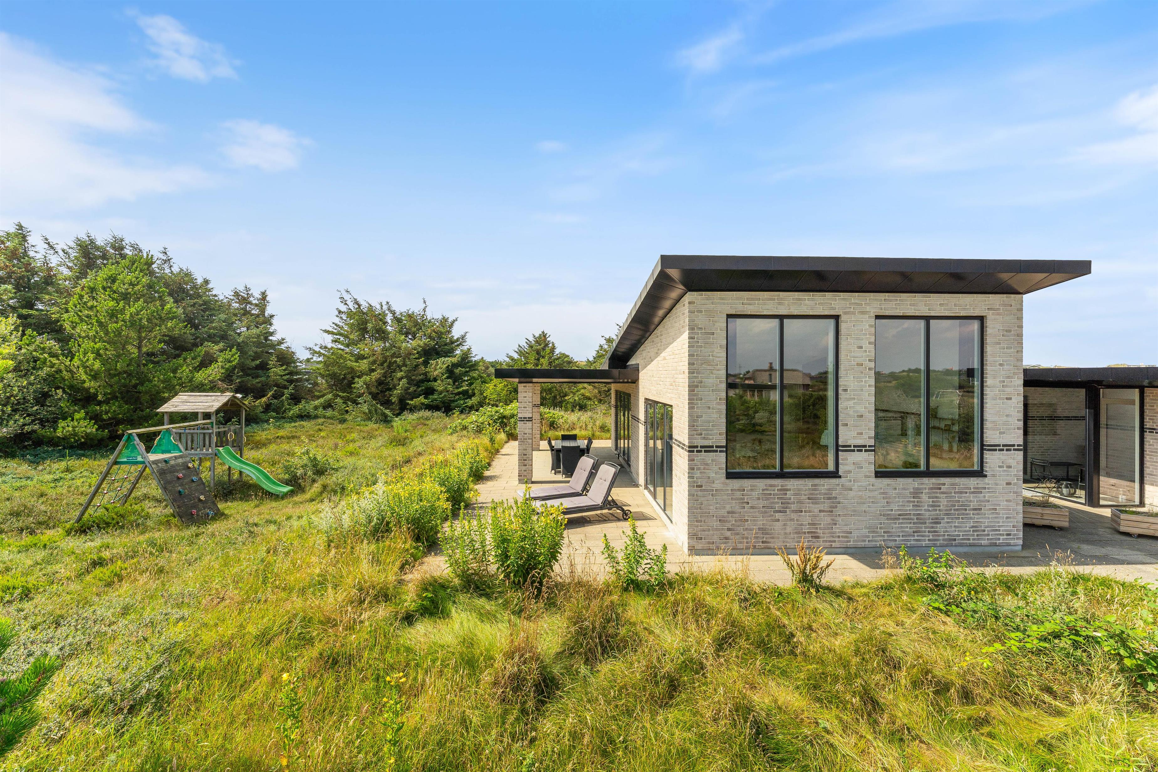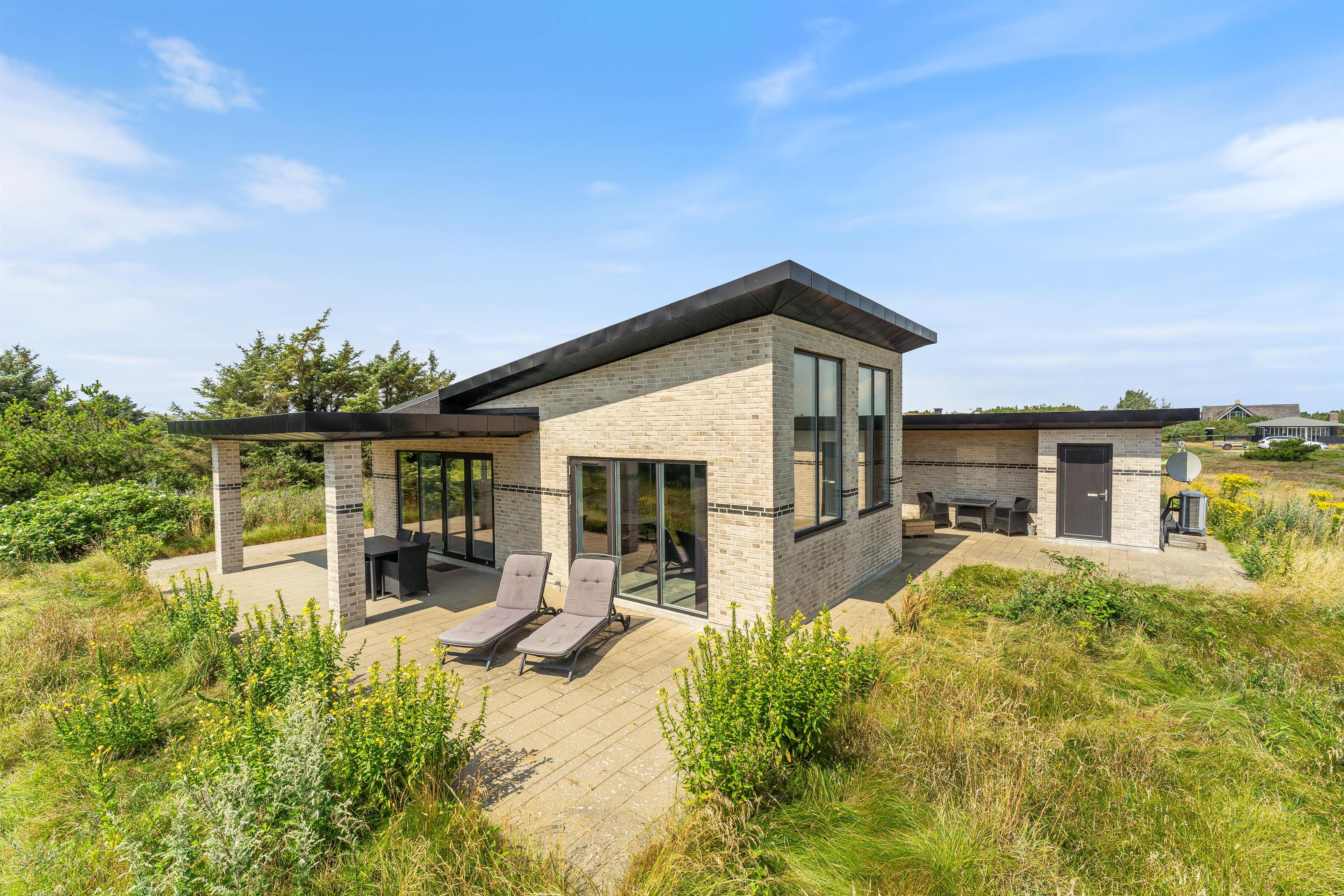 Kun 500 meter fra det brusende Vesterhav og få minutters kørsel fra Søndervigs centrum ligger dette stilfulde feriehus til 6 personer. Den moderne indretning og de lækre faciliteter heriblandt sauna og spabad sørger for den helt rigtige ferieatmosfære, og på den mere end 2.500 kvadratmeter store naturgrund er der både plads til leg og afslapning med en fed terrasse, græsplæne og legetårn.