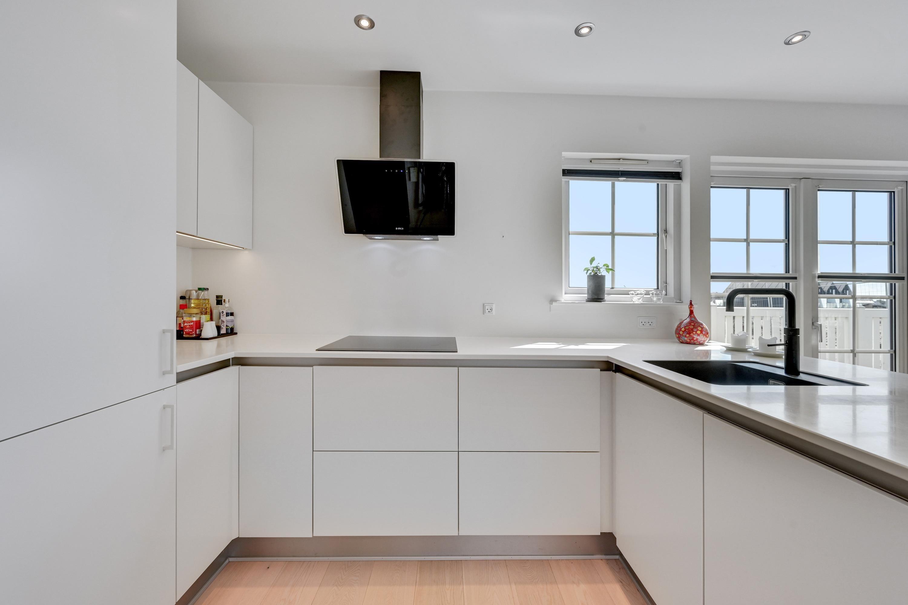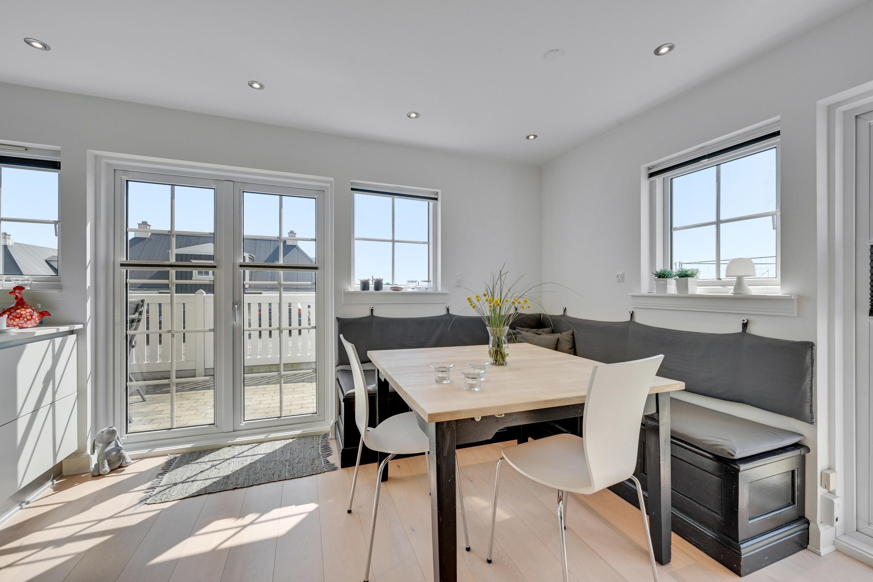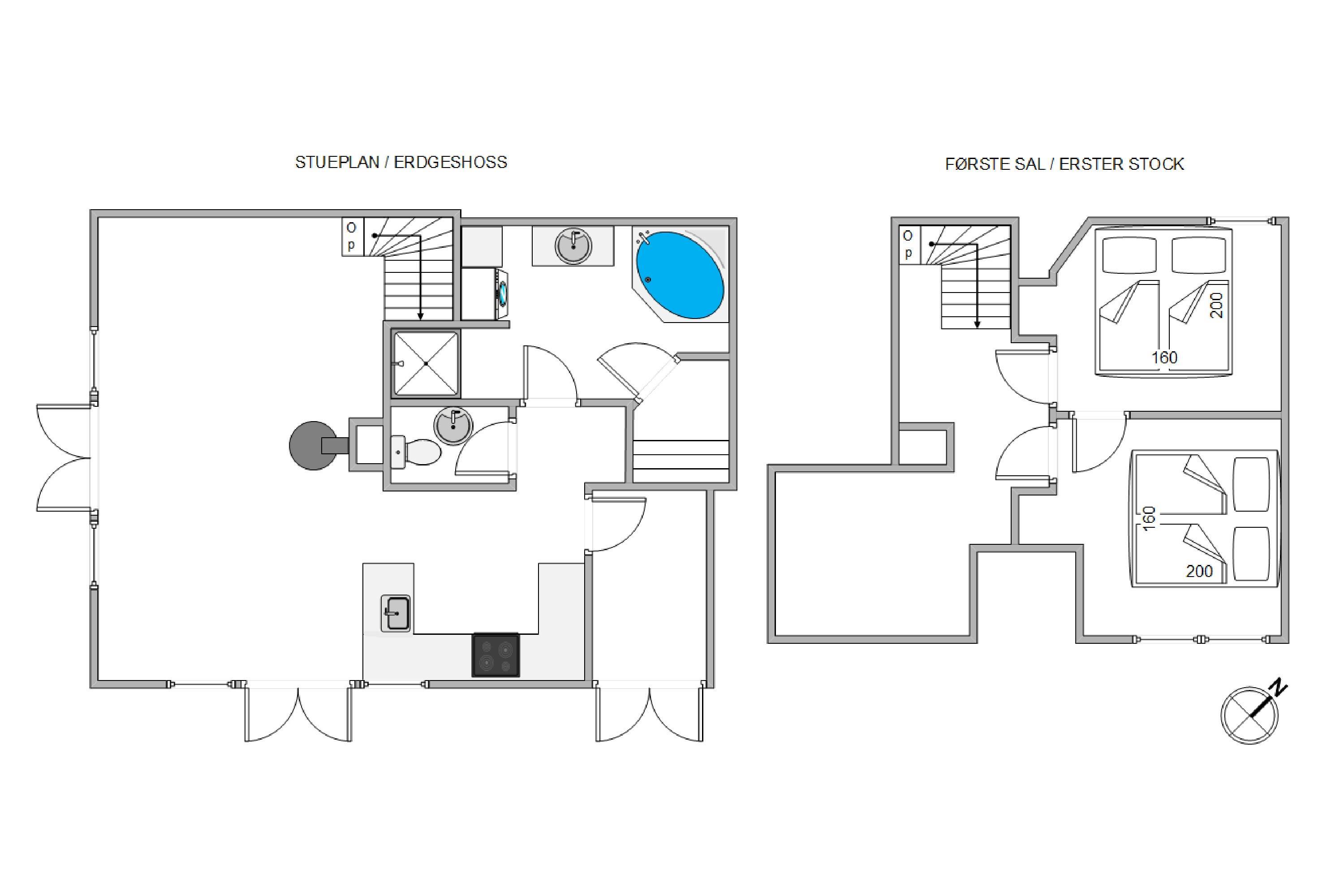 Den 90 kvadratmeter store ferielejlighed er indrettet i 2 plan, og her venter jer 2 gode soveværelser, der er indrettet med en dobbeltseng hver, som I kan få jeres skønhedssøvn i. Jeres feriemorgener starter uden kø, da der både er et badeværelse og et gæstetoilet i ferielejligheden.