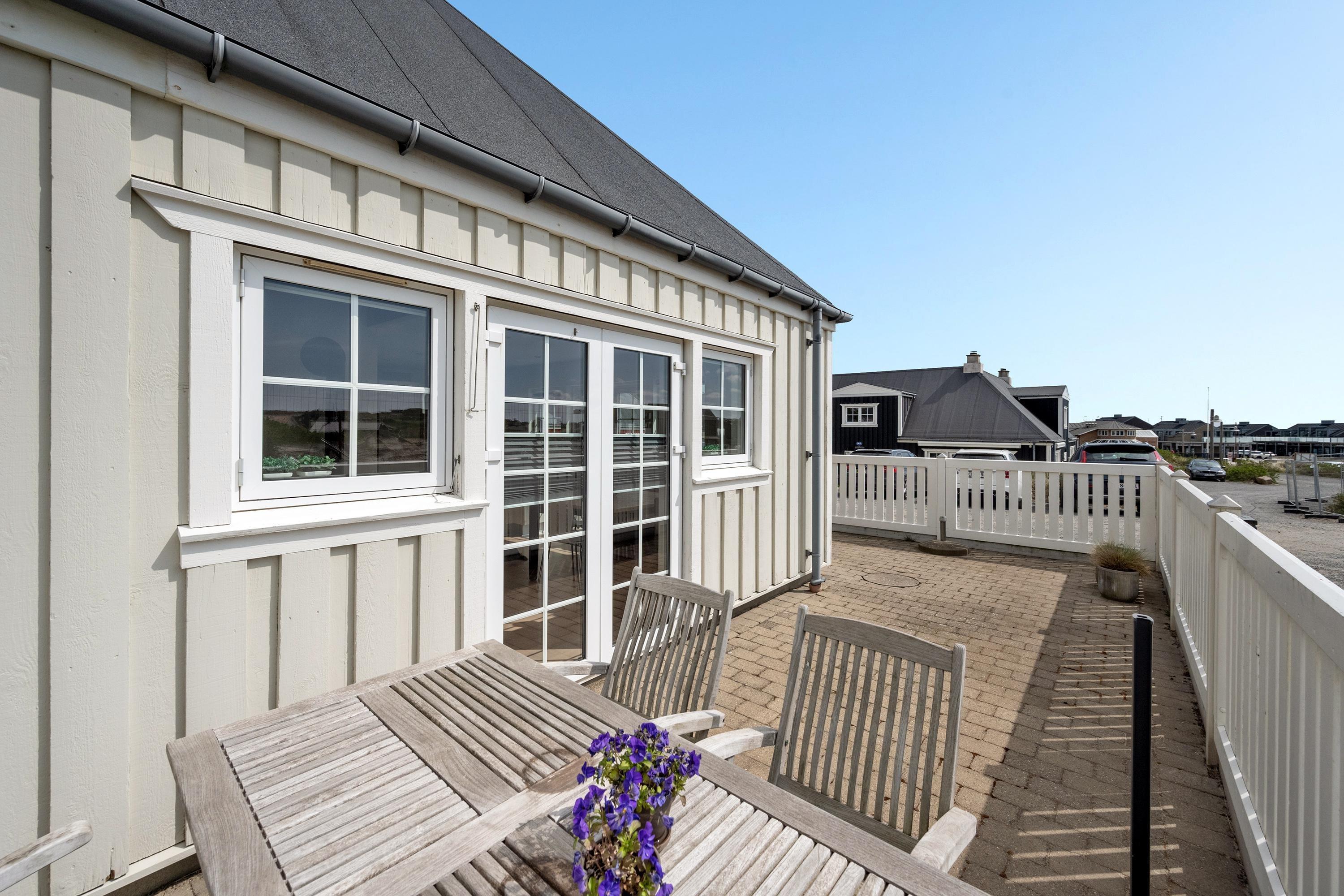Udendørs har I en dejlig terrasse, hvor der både venter jer havemøbler og liggestole, som I kan sætte jer godt til rette i, mens I nyder ferien og solen. På terrassen kan I desuden tilberede jeres aftensmad på gasgrillen og nyde aftenen med lyden af bølgernes brusen i baggrunden.