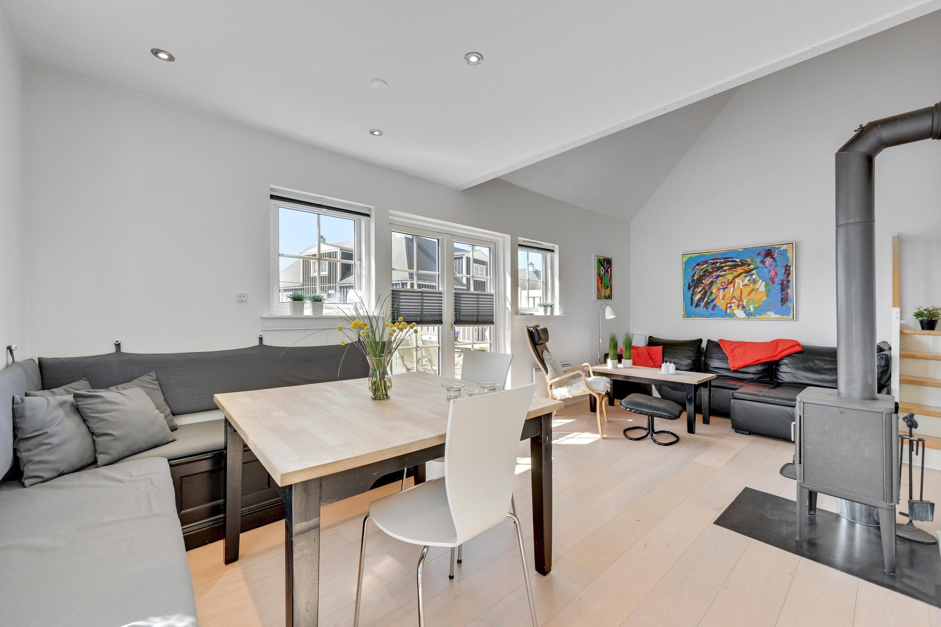Ferielejligheden på Badevej 20 F1 i Søndervig har en lys og indbydende indretning, hvor I med garanti vil føle jer godt tilpas. Alrummet fungerer som lejlighedens hjerte og danner rammen om mange hyggelige stunder i løbet af ferien. Her fuldender brændeovnens knitren feriestemningen, og som et energivenligt alternativ er lejligheden også udstyret med en luft-til-luft varmepumpe, der sikrer et behageligt indeklima året rundt.