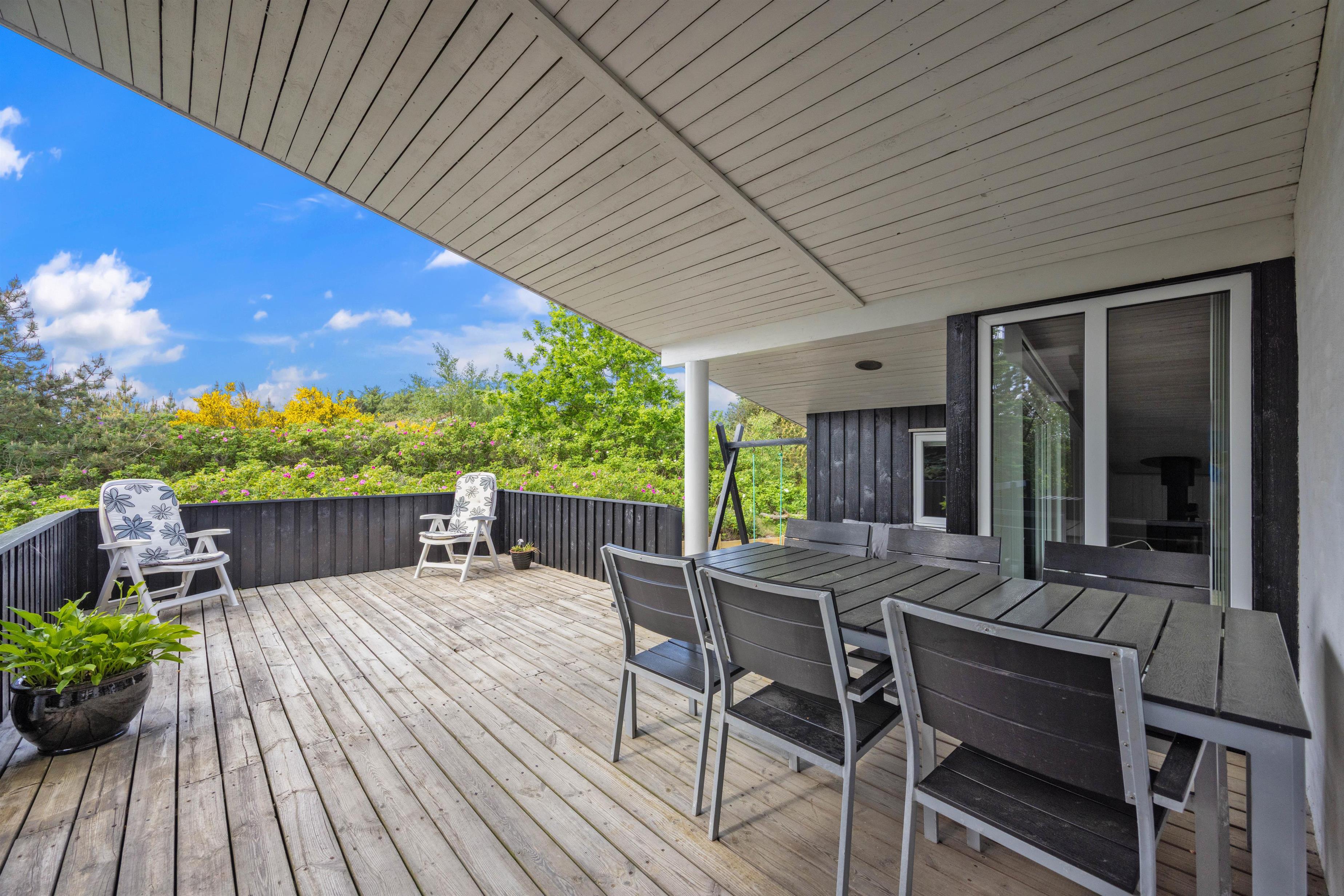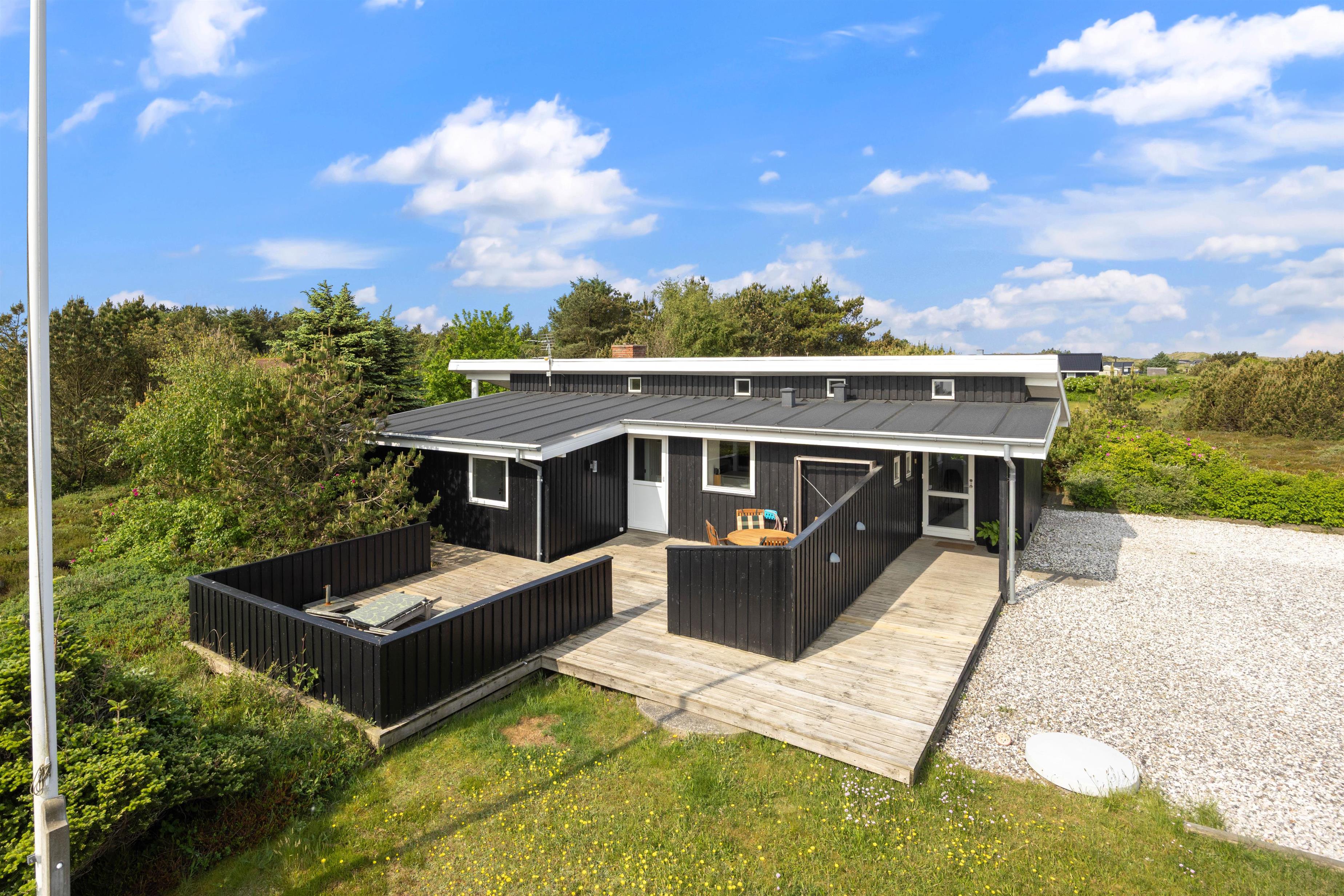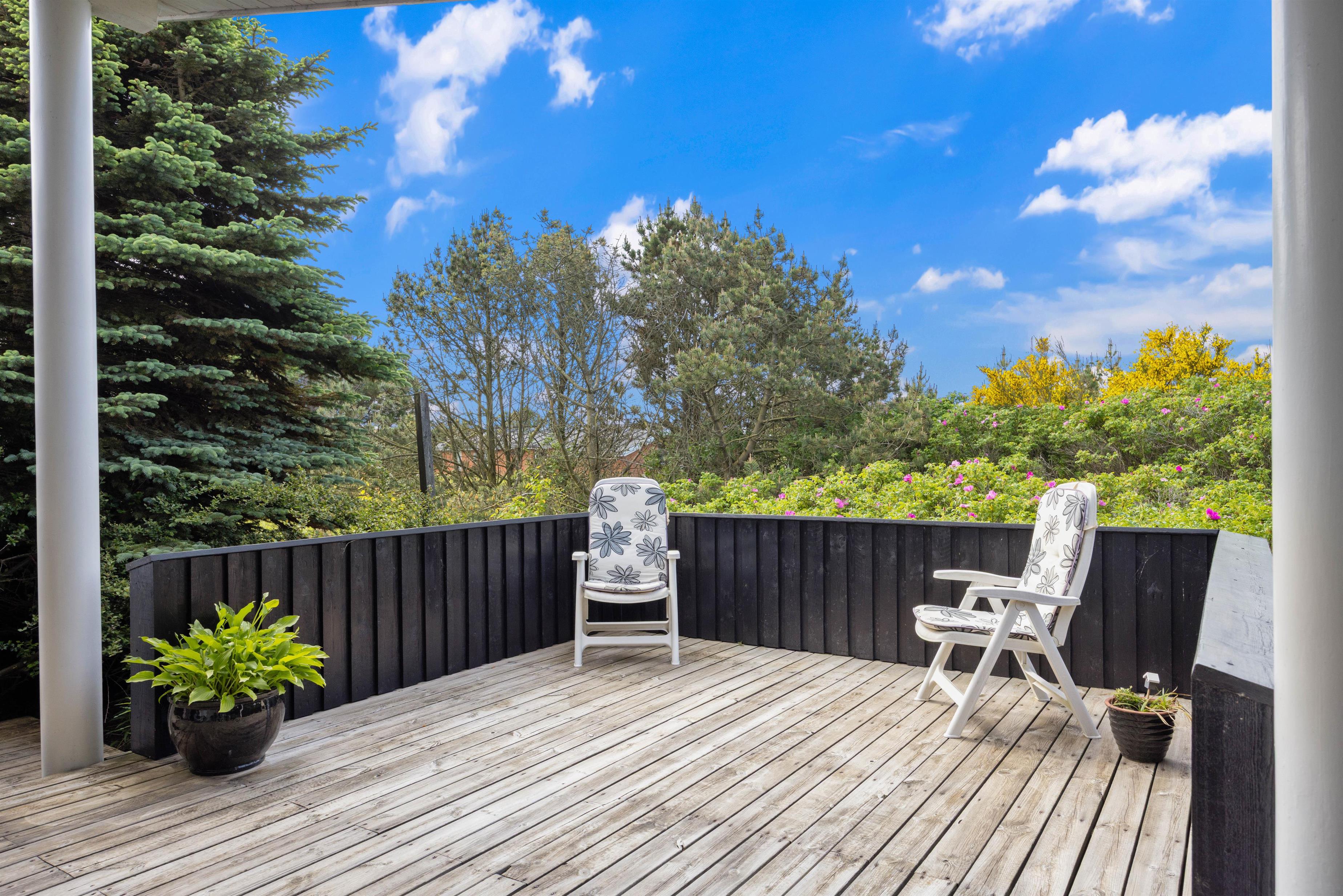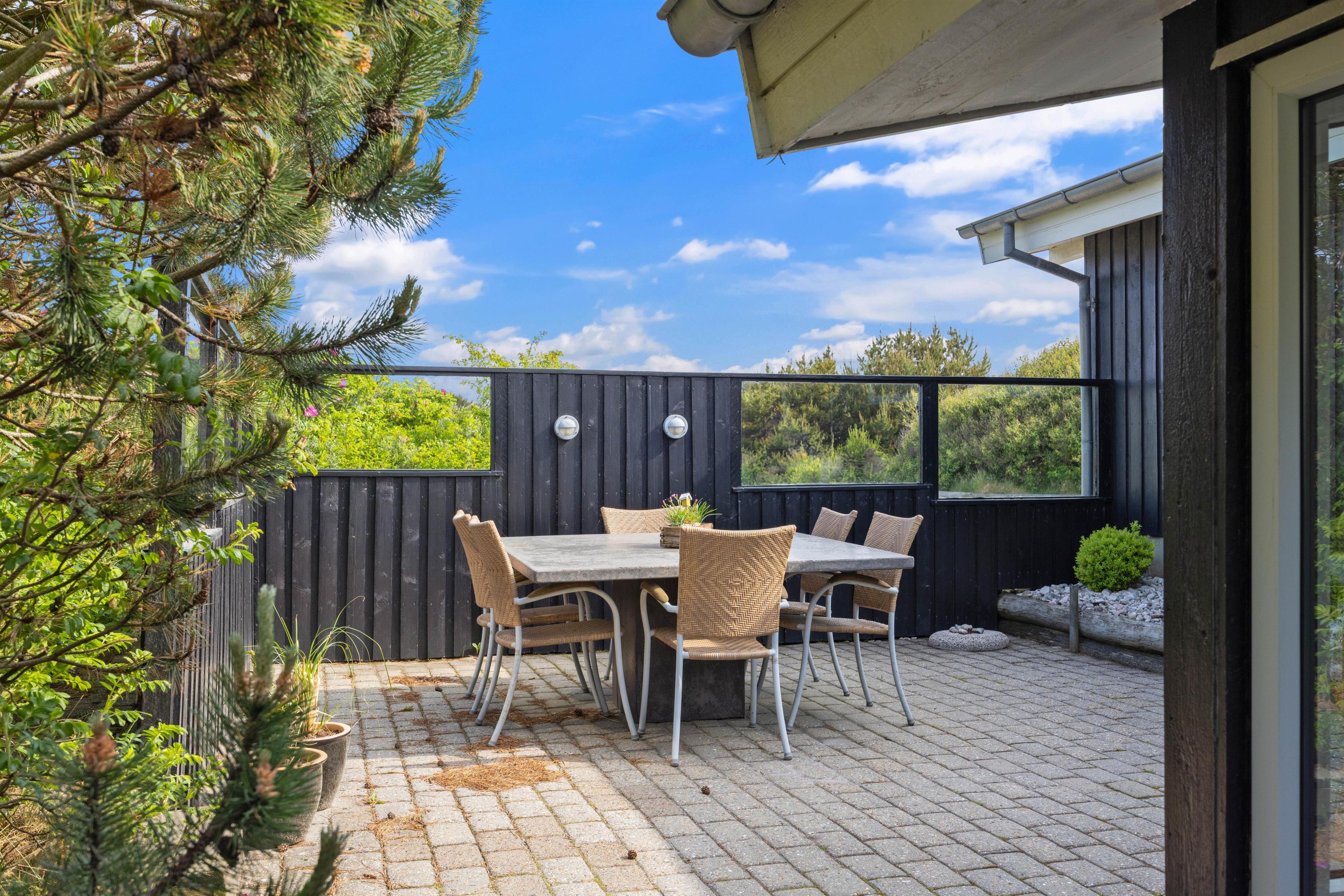 Rundt om huset finder I flere skønne terrasser, så der er rig mulighed for at nyde det flotte klitlandskab fra liggestolene. Tilmed er et stykke afskærmet, så I har gode læforhold, og den overdækkede del af terrassen gør, at I hurtigt kan komme i ly, hvis der skulle komme et uventet regnskyl. Havemøbler, grill og en gynge sørger for, at der er masser af muligheder for både afslapning og udendørs leg.