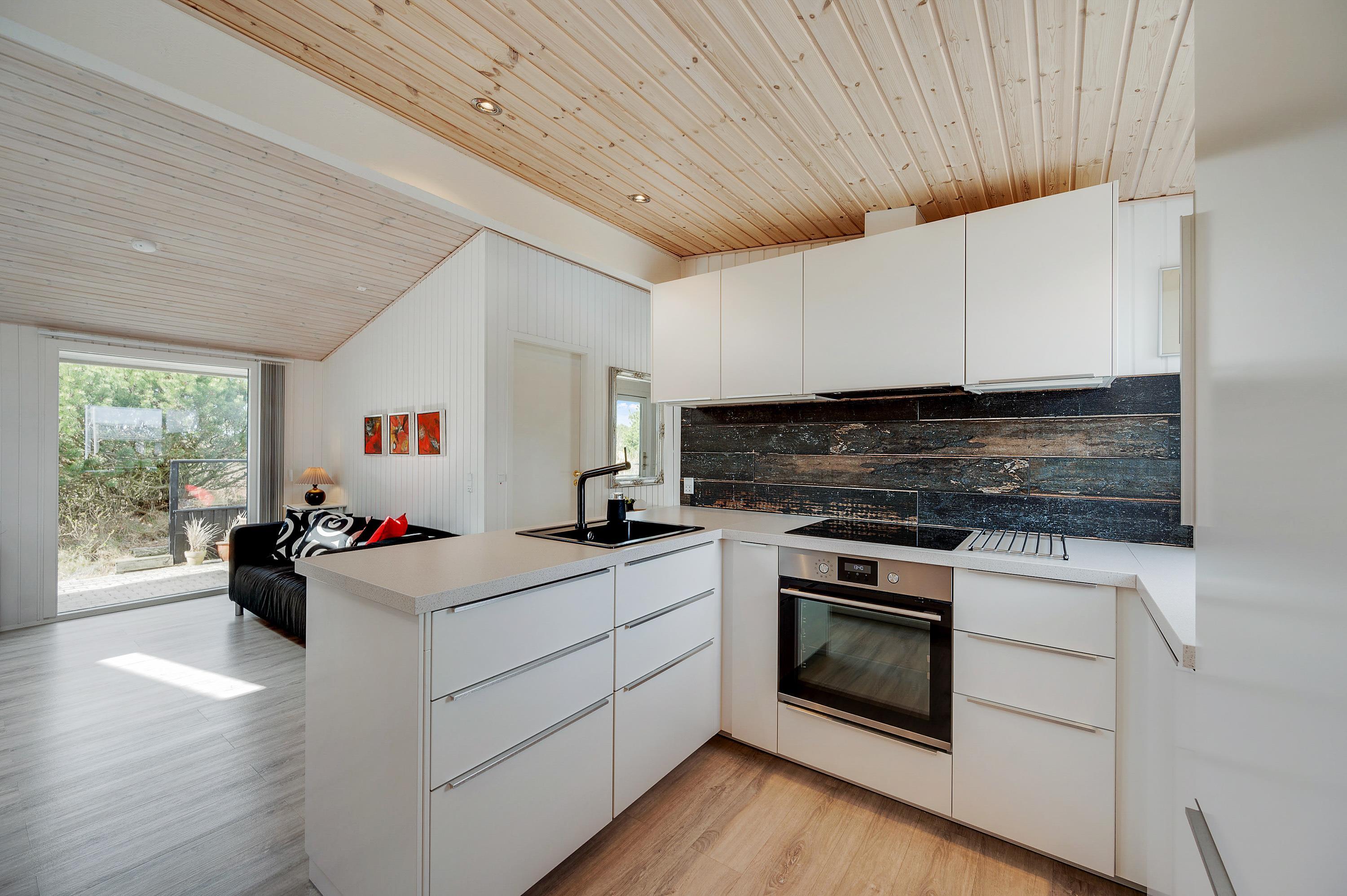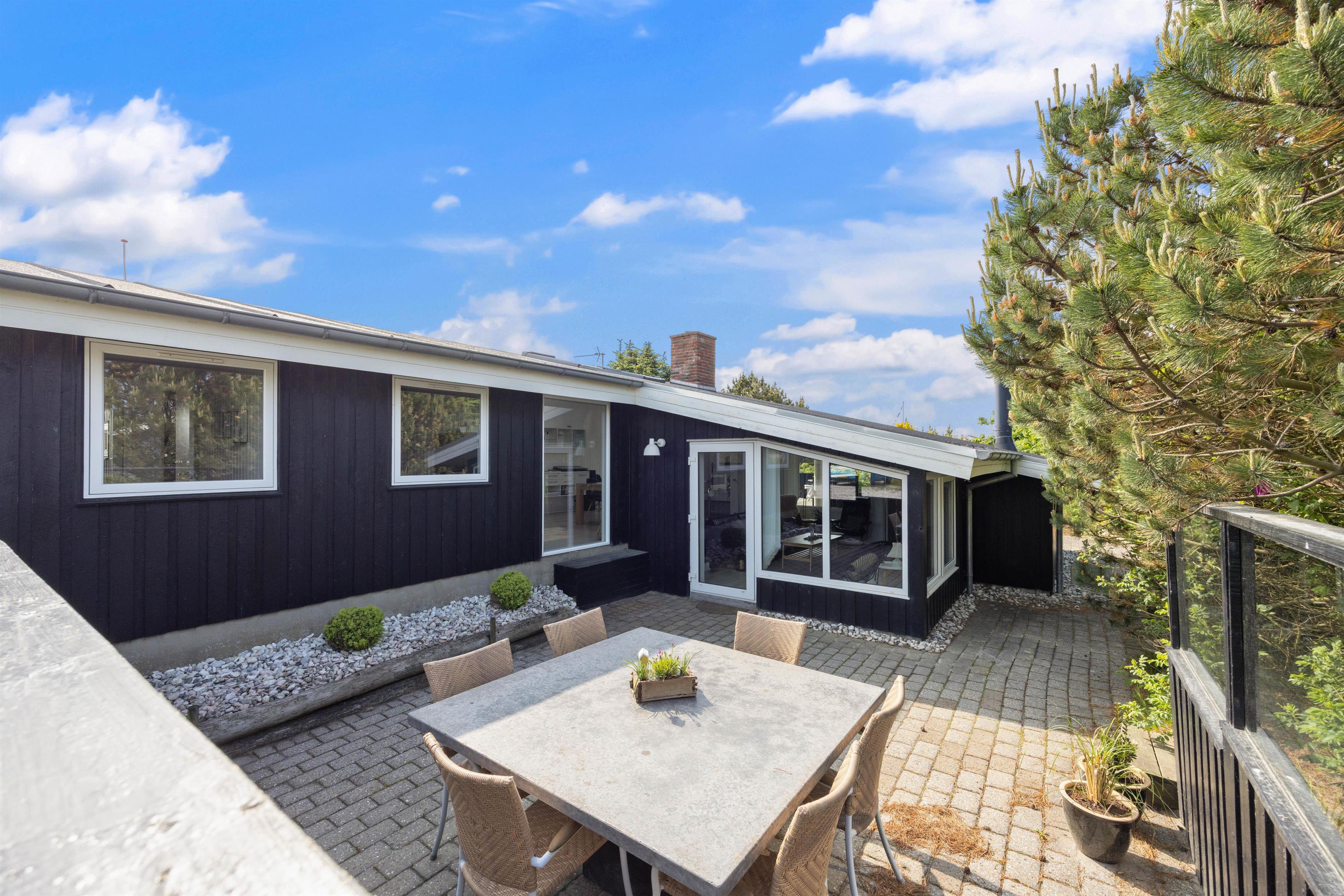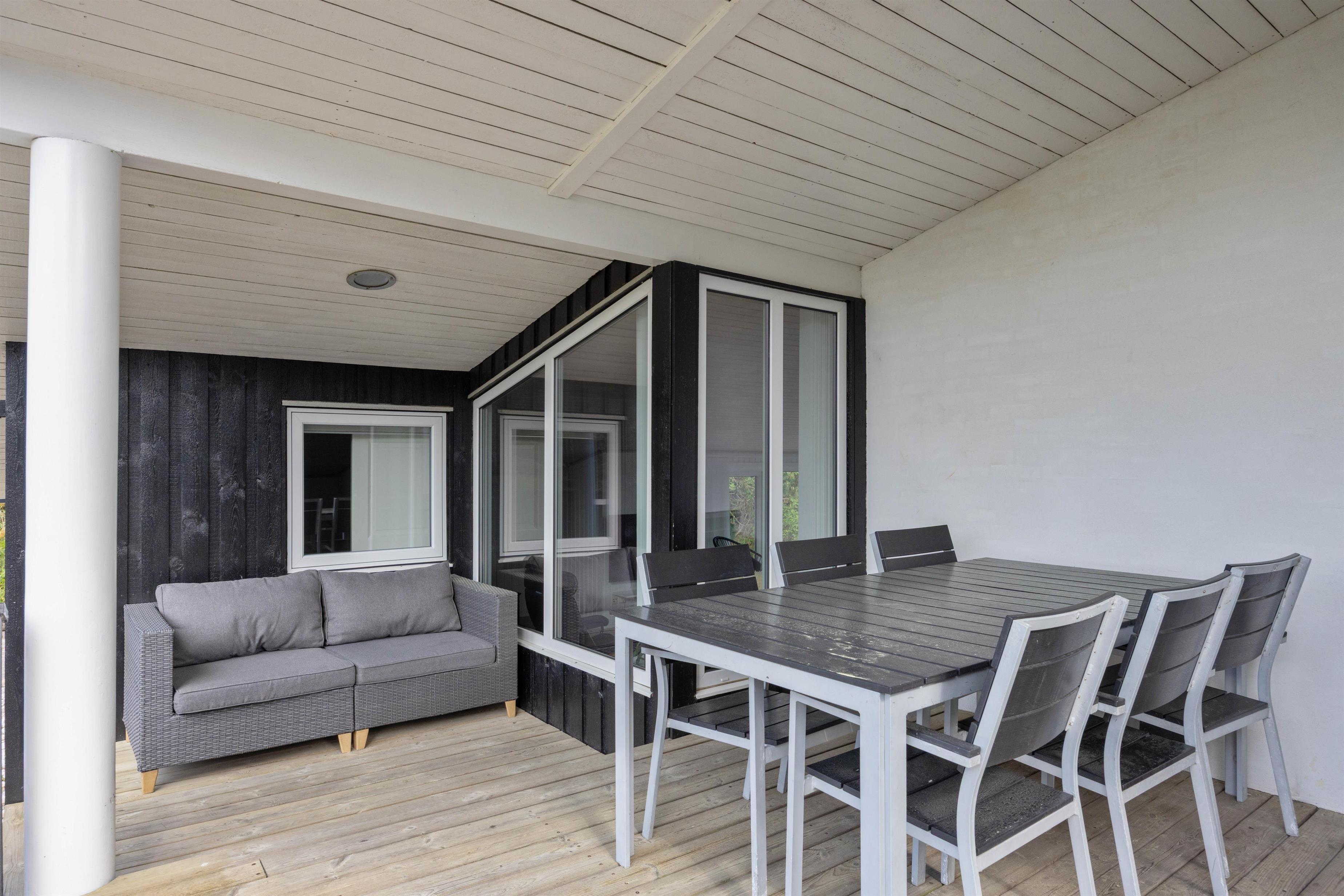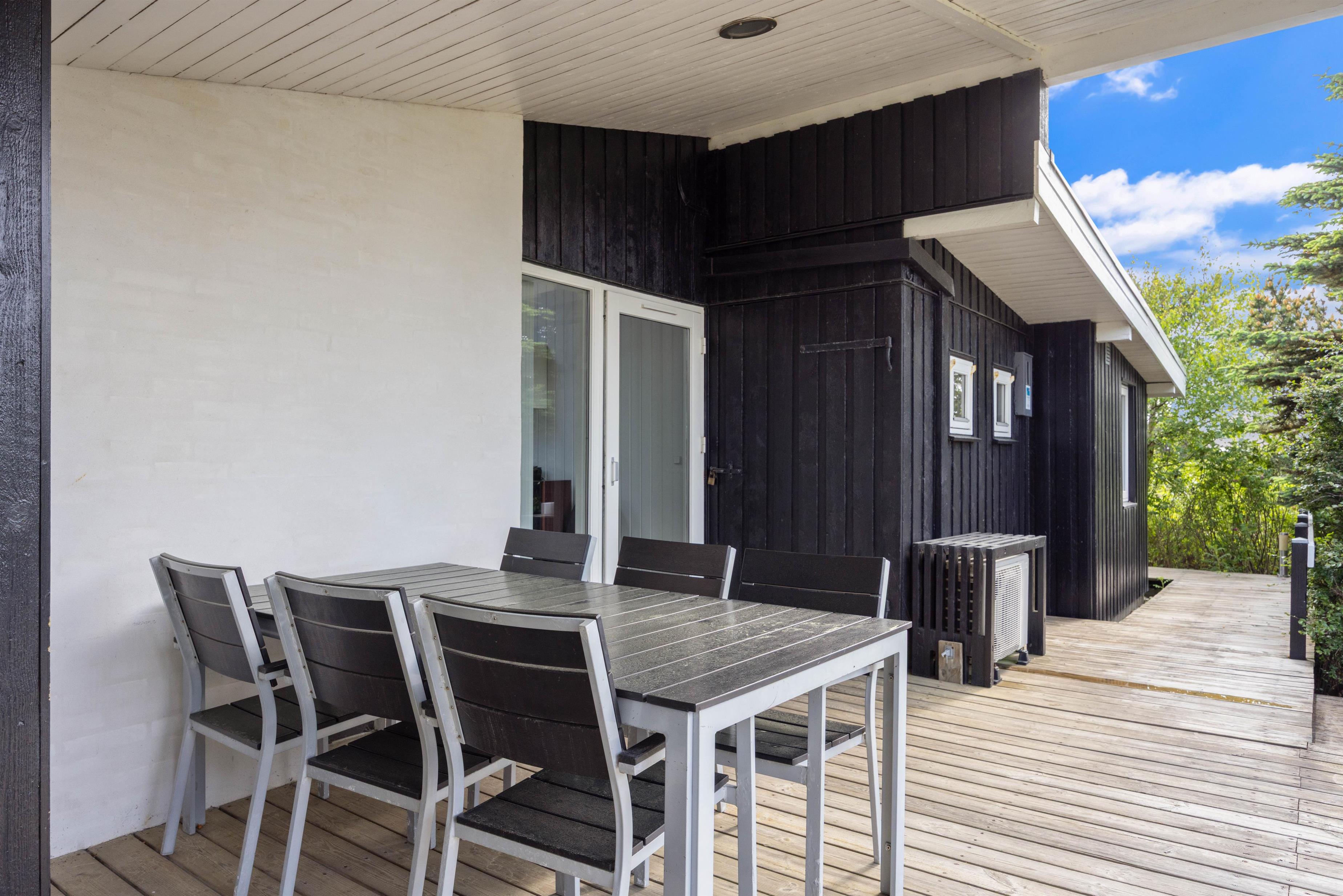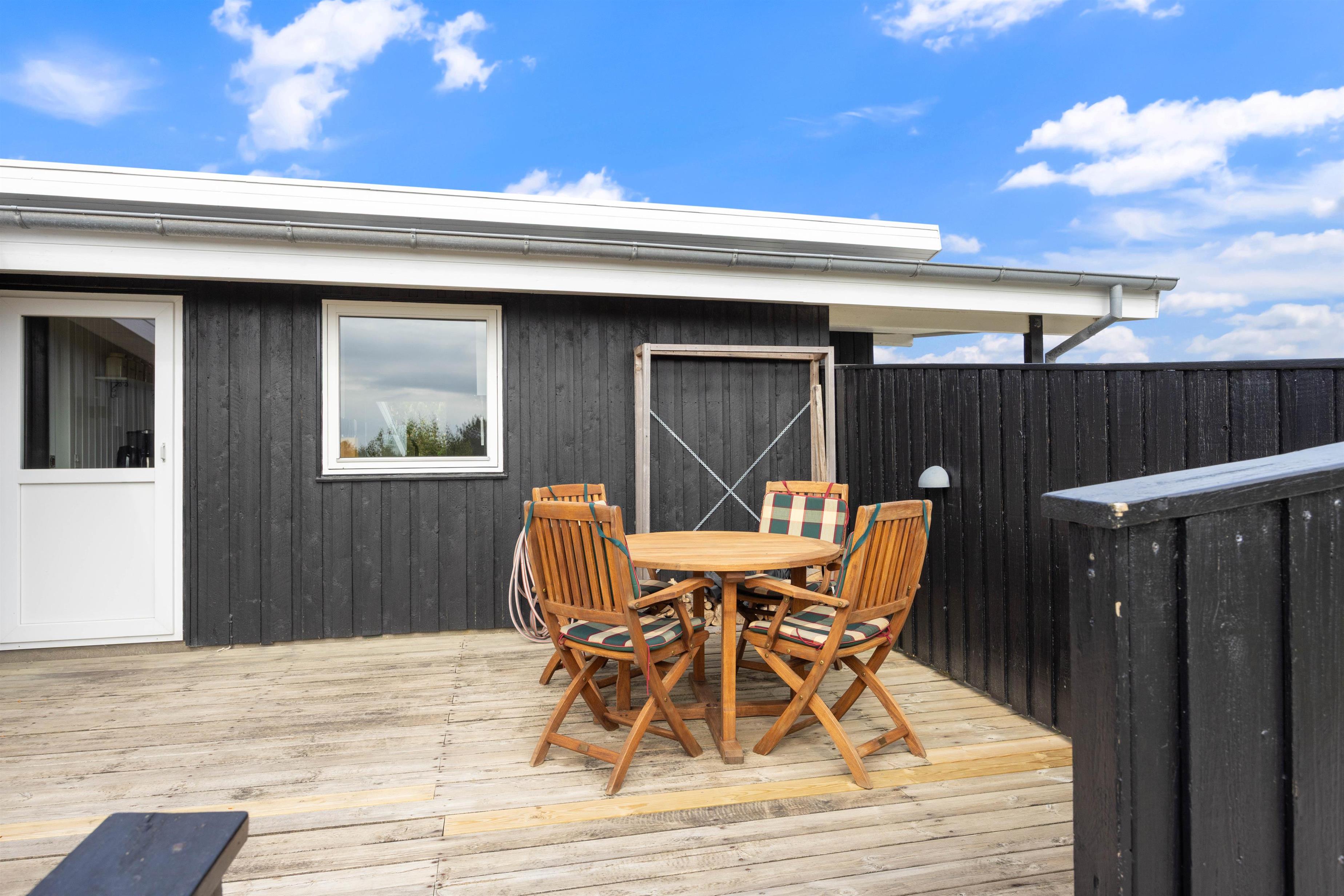 Rundt om huset finder I flere skønne terrasser, så der er rig mulighed for at nyde det flotte klitlandskab fra liggestolene. Tilmed er et stykke afskærmet, så I har gode læforhold, og den overdækkede del af terrassen gør, at I hurtigt kan komme i ly, hvis der skulle komme et uventet regnskyl. Havemøbler, grill og en gynge sørger for, at der er masser af muligheder for både afslapning og udendørs leg.
