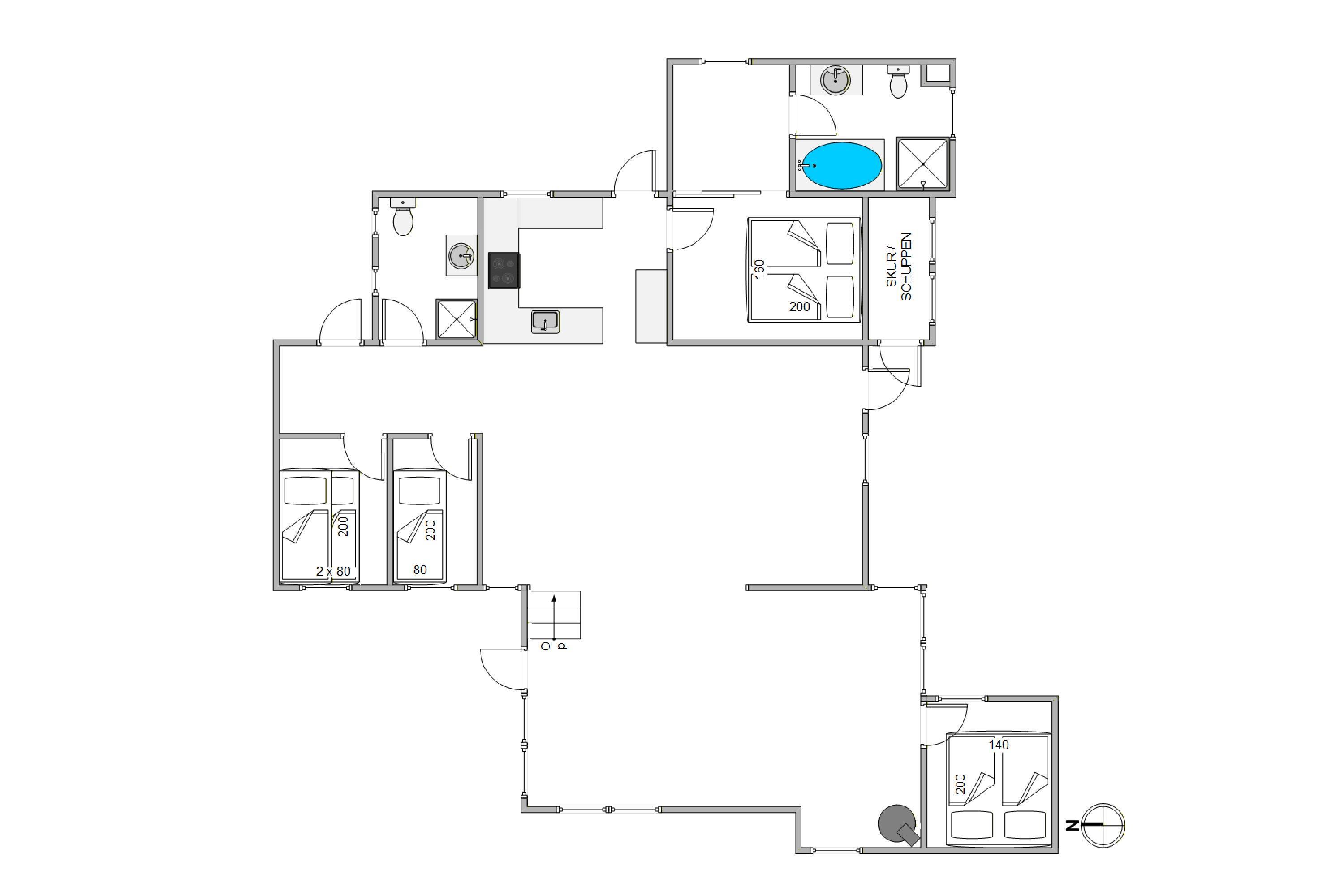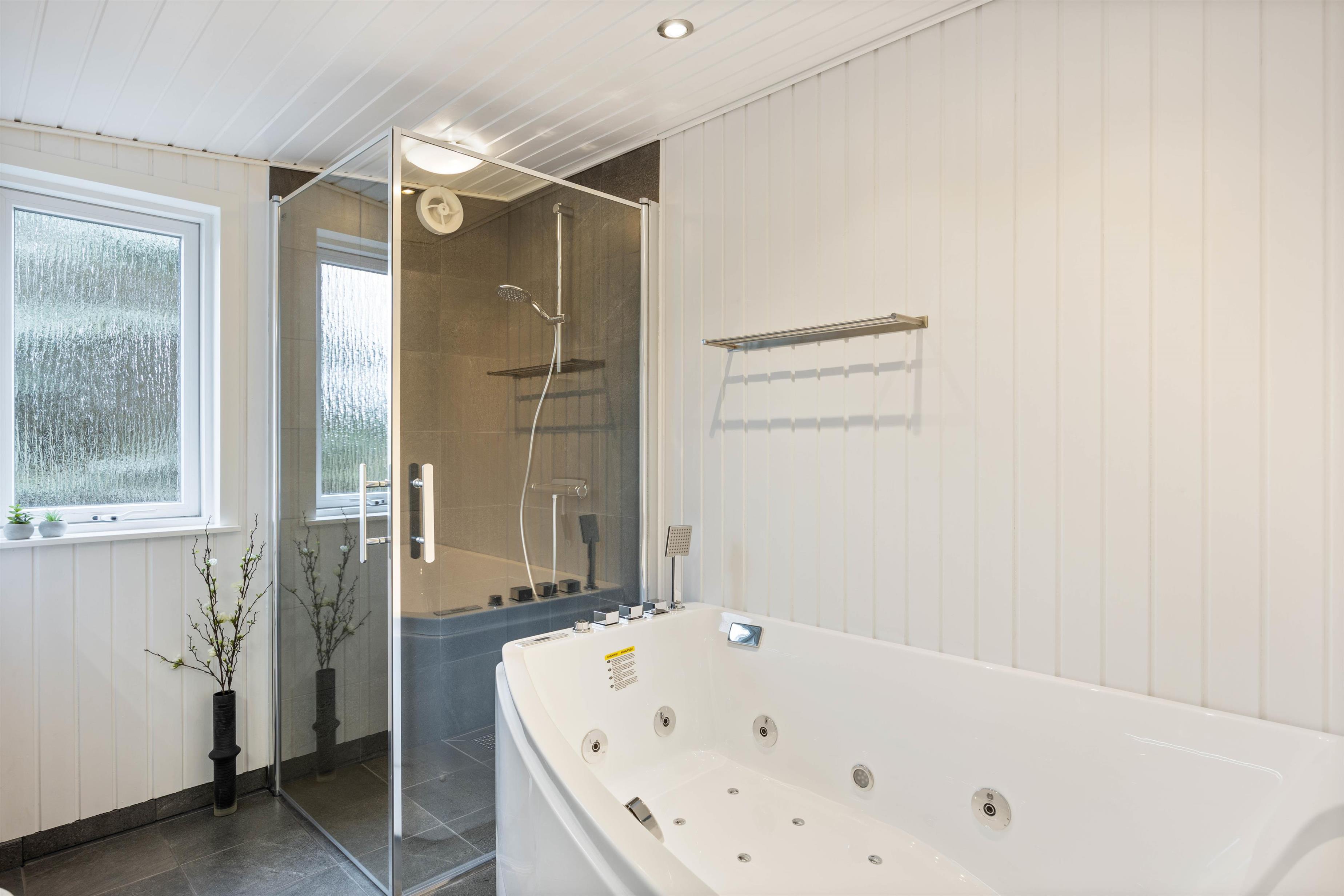 Der er to badeværelser, begge med moderne faciliteter såsom gulvvarme og en tømmespa, der sikrer ekstra komfort under jeres ophold. Sommerhuset byder også på en brændeovn, som giver en hyggelig atmosfære på kølige aftener, og en luft-til-luft varmepumpe der holder rummene behagelige hele året. I finder også Chromecast, der sikrer at I kan streame lige netop det I vil - Helt ligesom derhjemme.