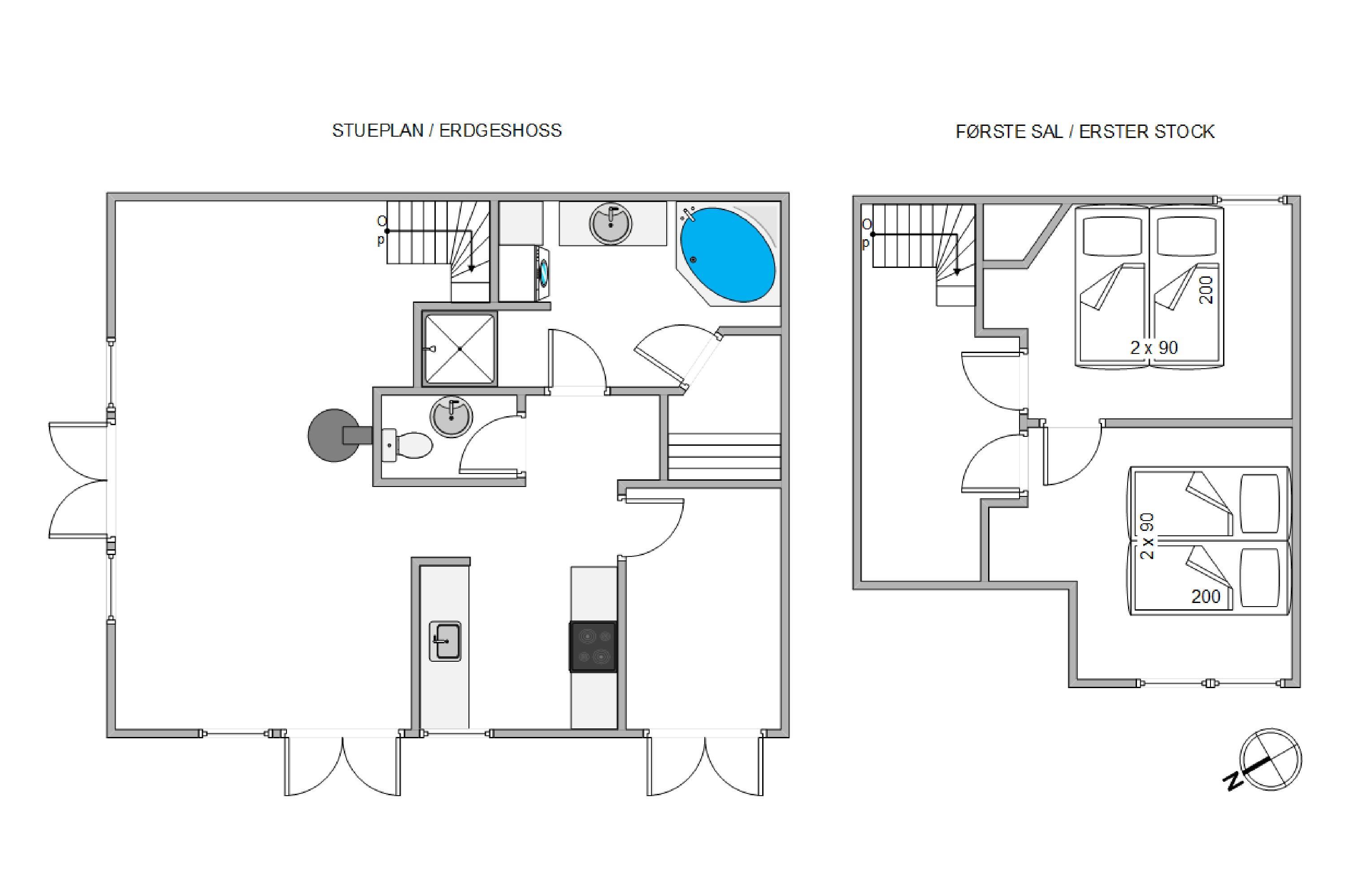 1. soverum/sengestørrelser2 x 90 x 200