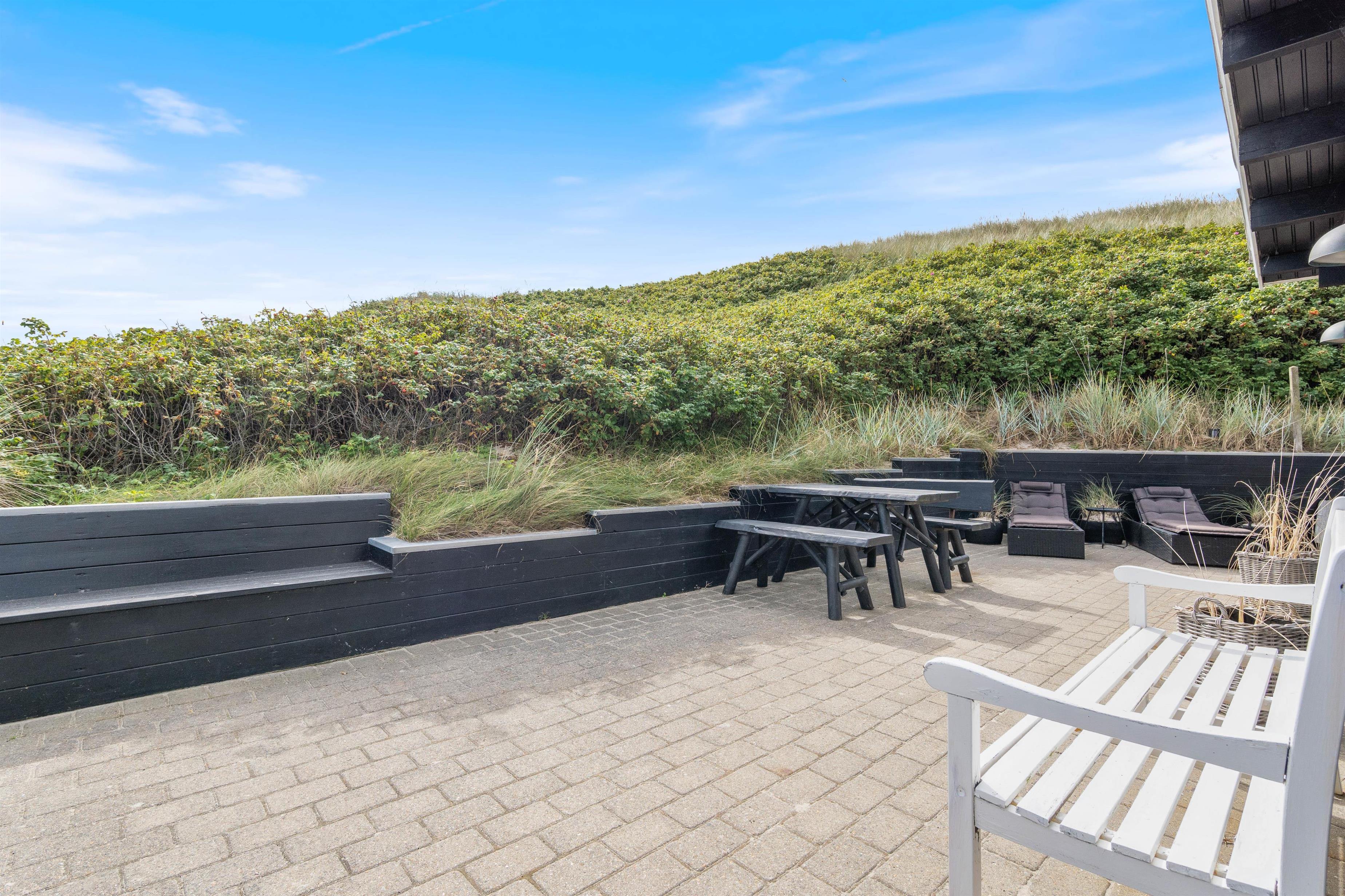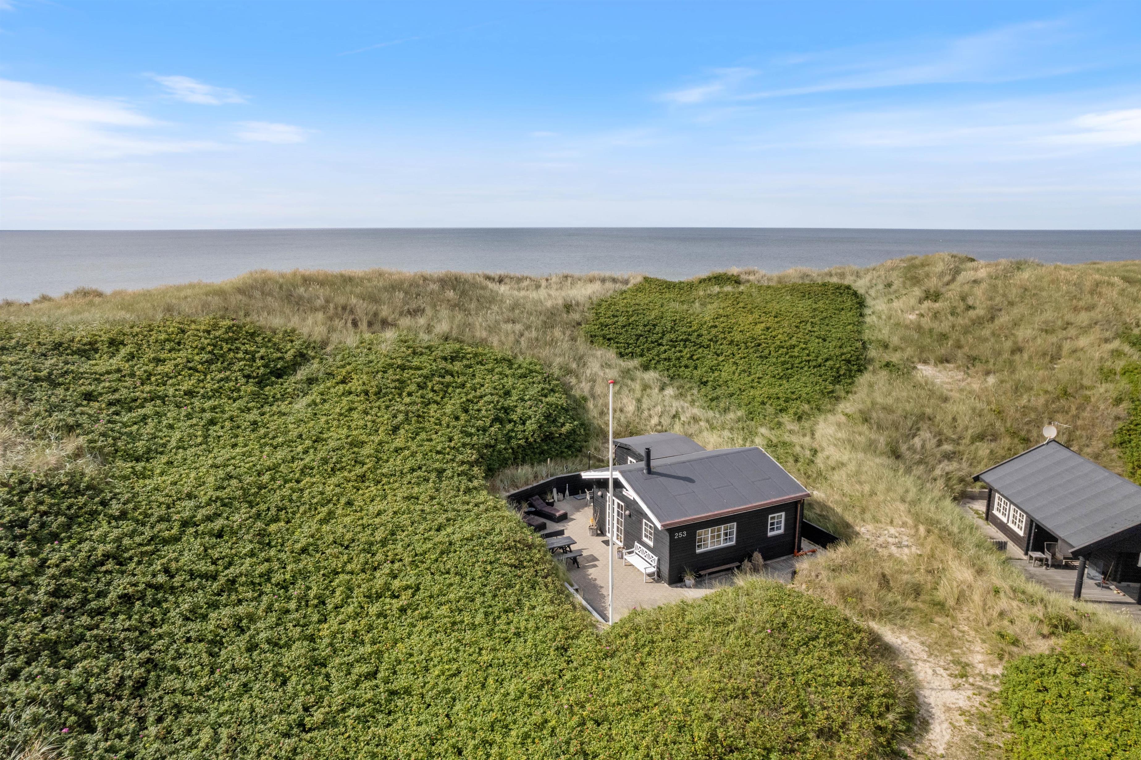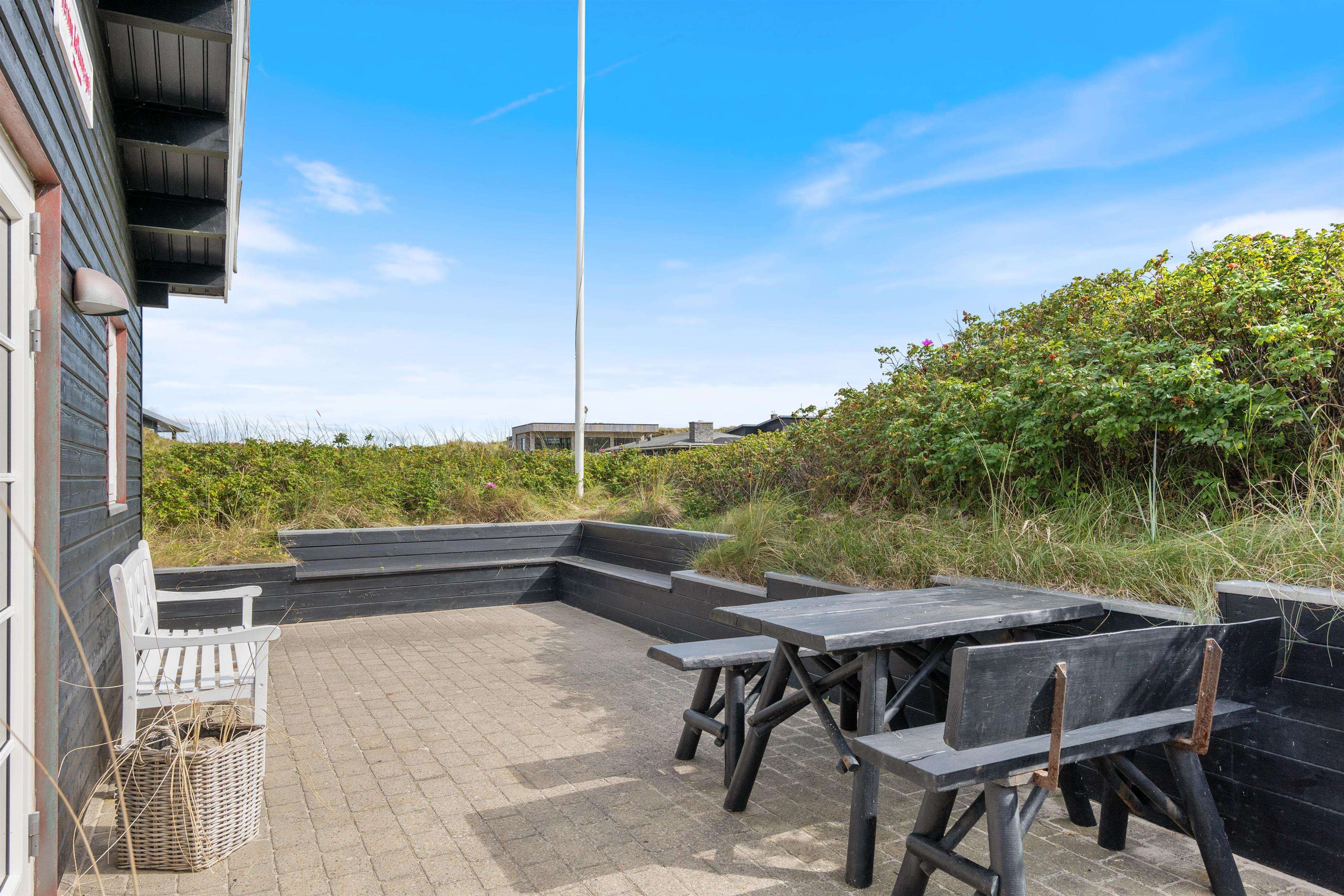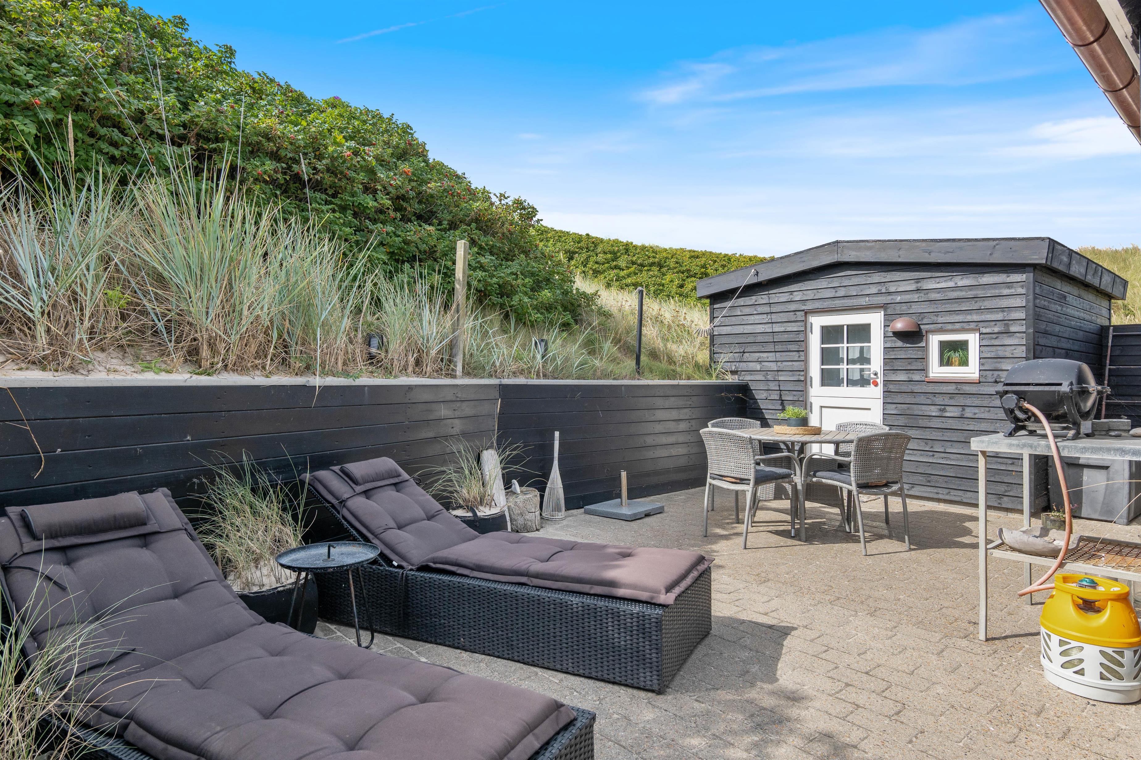 Beliggenheden er helt fantastisk. Sommerhuset ligger i første klitrække, kun 50 meter fra stranden, og med udsigt til sommerhusområdet. Terrassen er godt afskærmet af buskads, og I kan høre Vesterhavets brusen, når I slapper af i havemøblerne eller tænder op i grillen.
