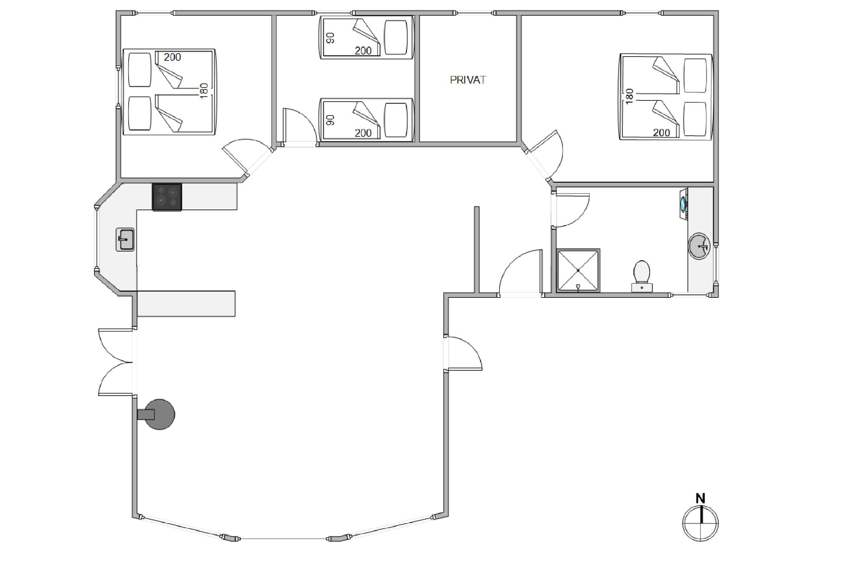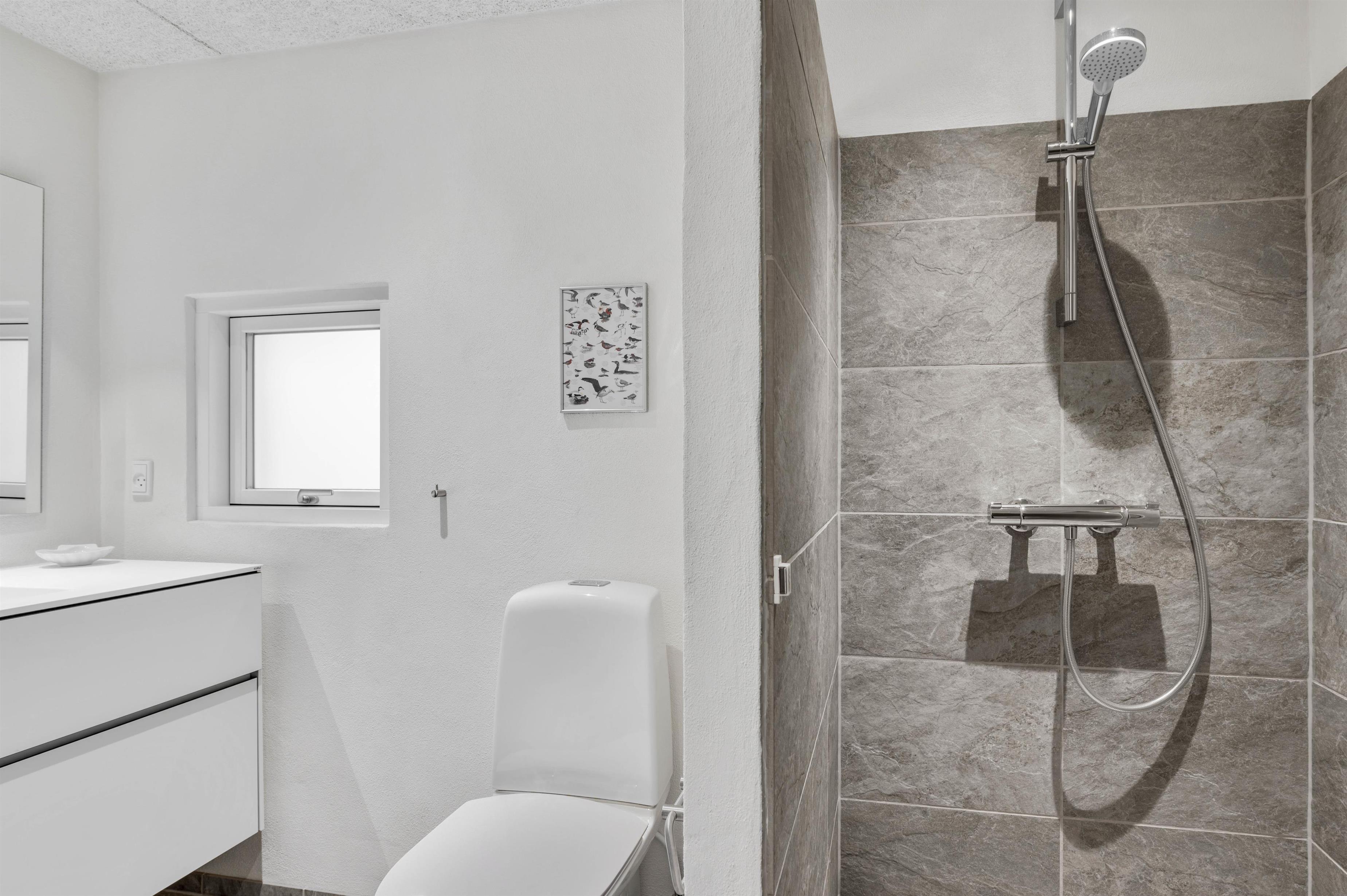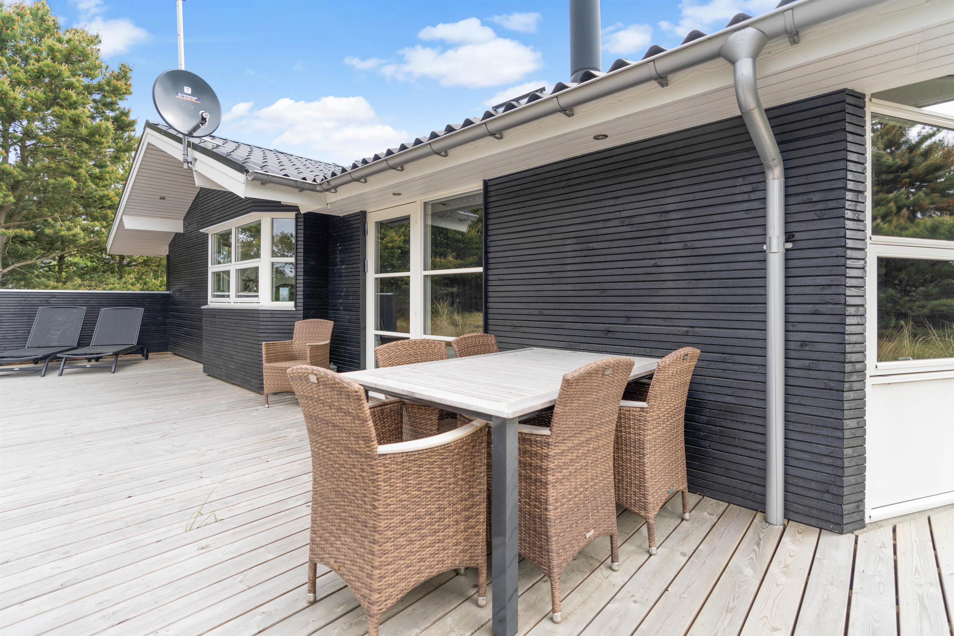 De store vinduespartier sørger for rigeligt med lys og gør, at man hele tiden kan se den dejlige natur udenfor. Brændeovnen sørger desuden for den helt rigtige feriestemning og hygge på køligere dage. Fra stuen er der også direkte udgang til den store, skønne terrasse, der går hele vejen rundt om sommerhuset.
