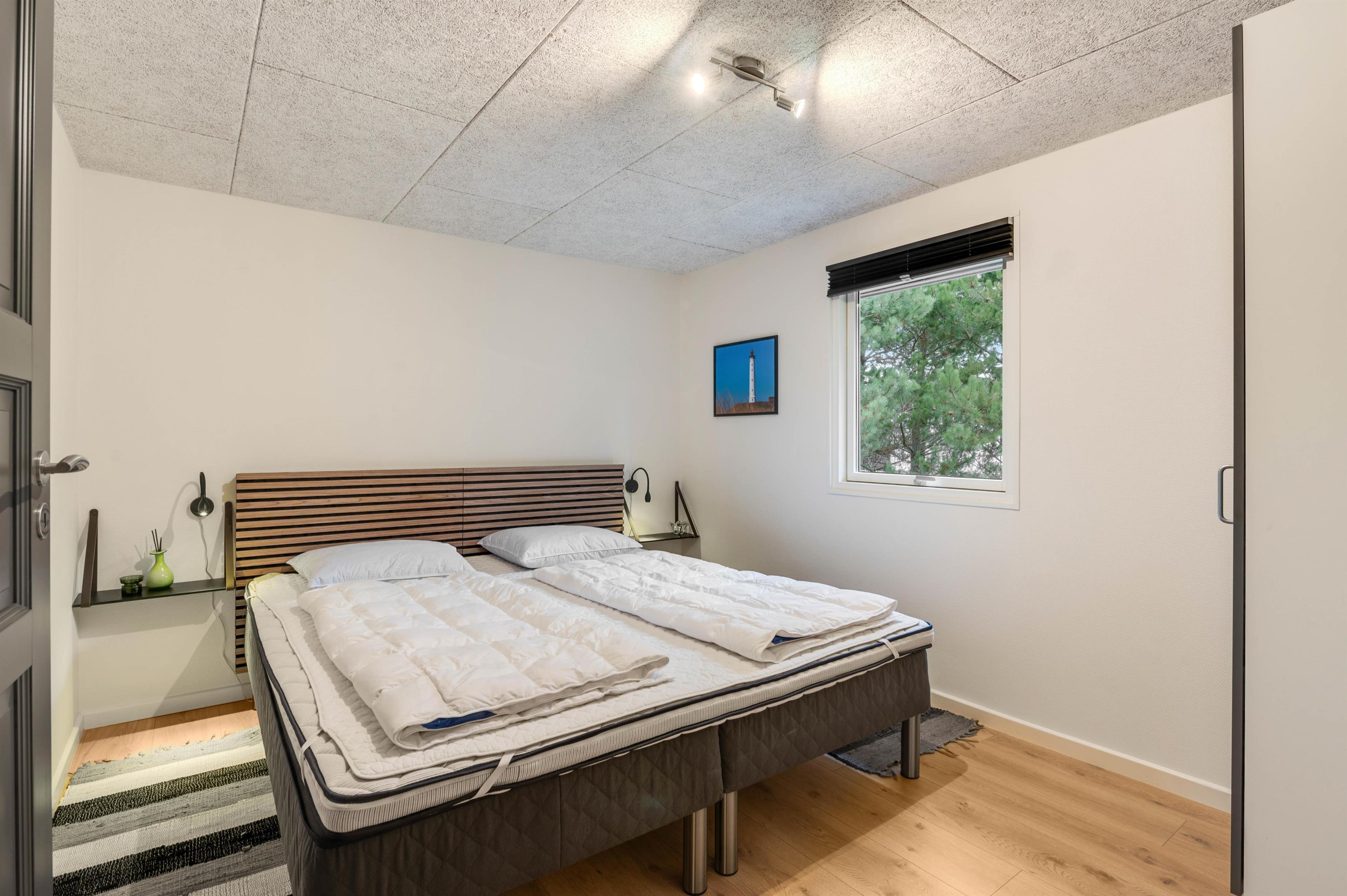 Feriehuset på Hjelmevej 40 blev renoveret i 2021 og byder jer velkommen med en moderne indretning, så snart I træder ind i feriehuset. Sommerhuset er fordelt på tre soveværelser, hvoraf to værelser har dobbeltsenge og det tredje en enkeltseng.
