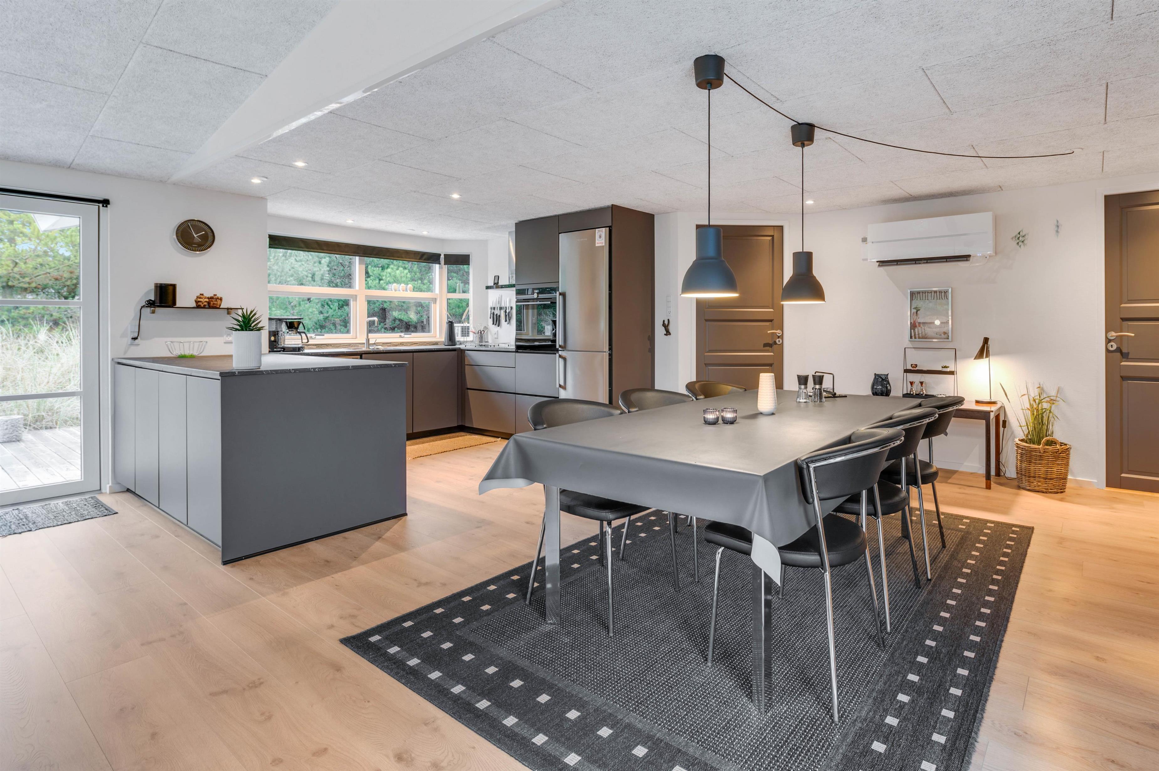 Hjerterummet er uden tvivl den store, åbne stue, som er i direkte forbindelse med det nye, moderne køkken og spisepladsen. Her kan I tilbringe mange dejlige feriestunder med fælles madlavning, spil og film. Der er desuden alle de praktiske fornødenheder, der skal til for at lette feriens gøremål, såsom opvaskemaskine og opvaskemaskine.