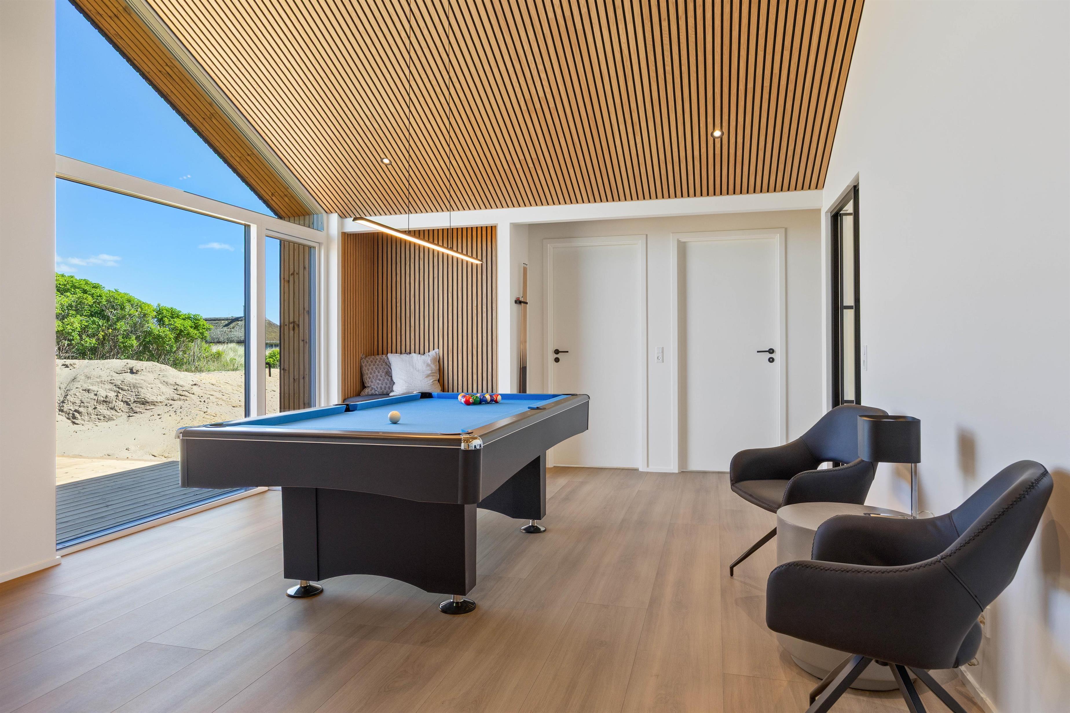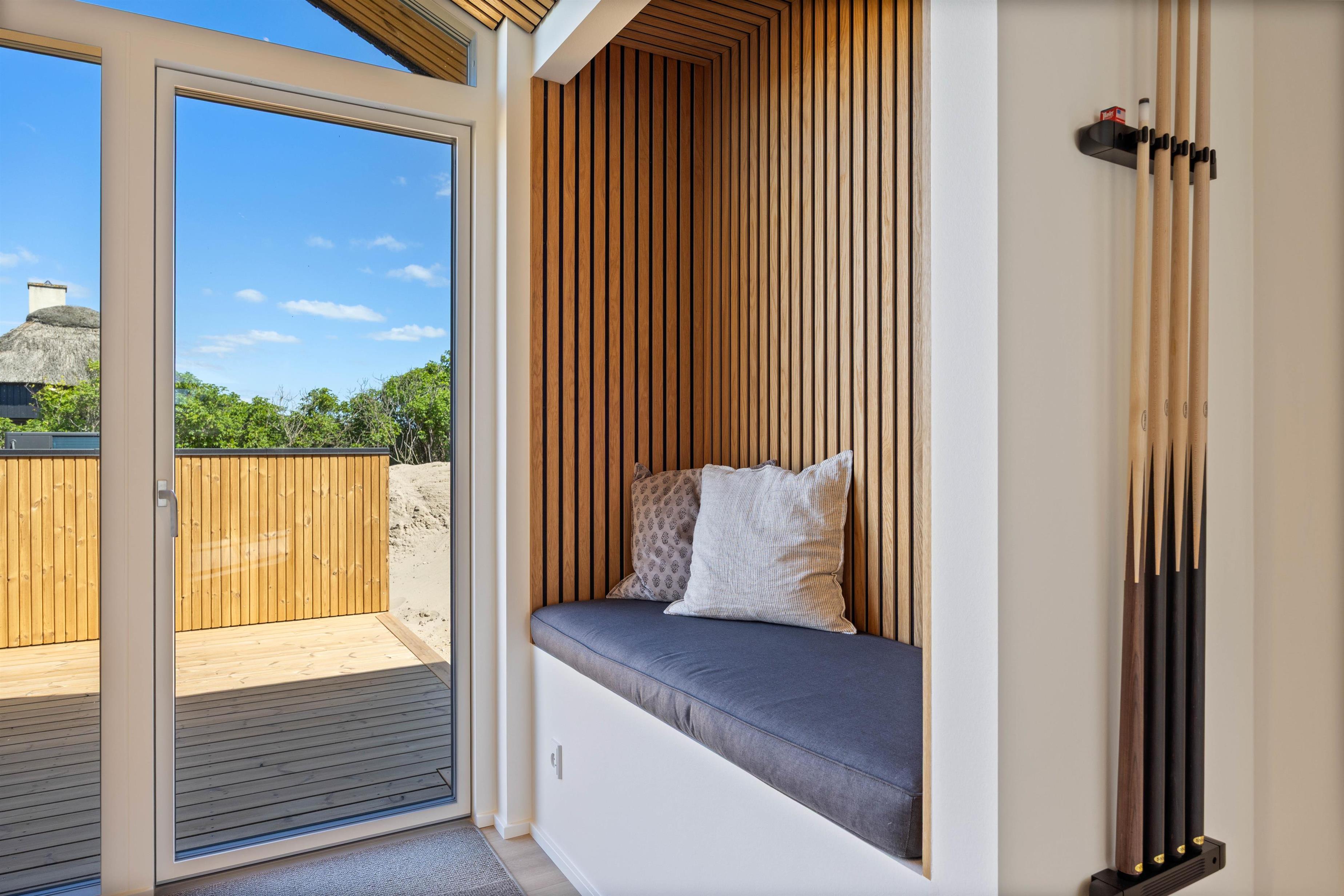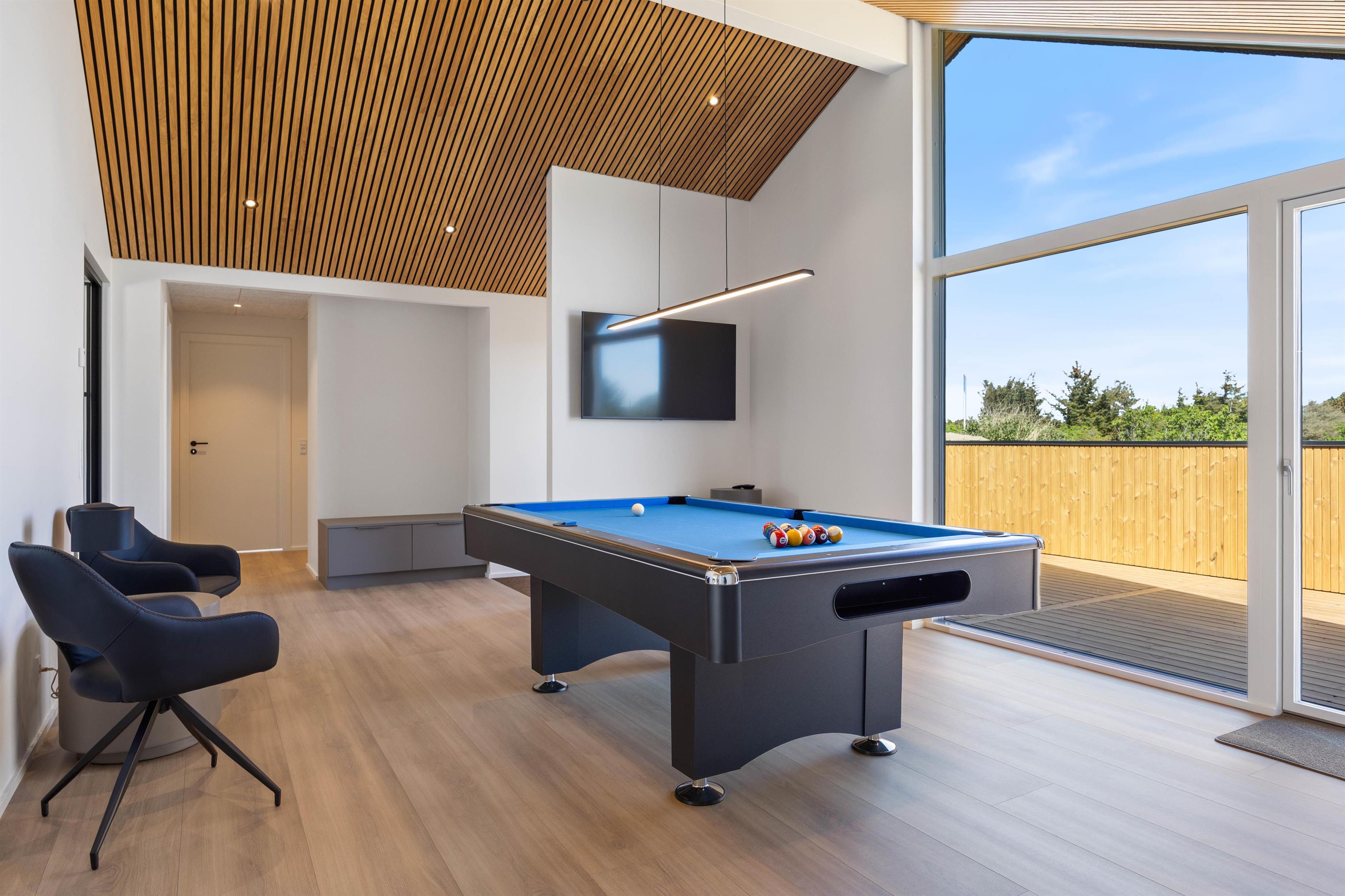 Feriehuset er centralt placeret midt Søndervig, et sted med masser af afslapning og moderne faciliteter. I det åbne køkken, der er udstyret med en opvaskemaskine, kan I fremtrylle lækre måltider og derefter nyde dem sammen, ved den smukke spiseplads. I feriehusets opholdsrum, finder I et fint kaffehjørne, hvor der også er en vinkøler. Det er også her i finder brændeovnen, som er med til at skabe den helt rigtige feriehusstemning, i de kolde vintermåneder og aftener. Her kan I læne jer tilbage med en god drink, og læse en god bog. Om aftenen kan i tænde for tv´et og streame jeres yndlings serie eller film direkte op på tv´et via chromecasten, eller se nogle tyske kanaler. Har i lyst til at konkurrere imod hianden, kan I benytte jer af feriehusets aktivitetsrum, som indeholder en masse spændende ting.