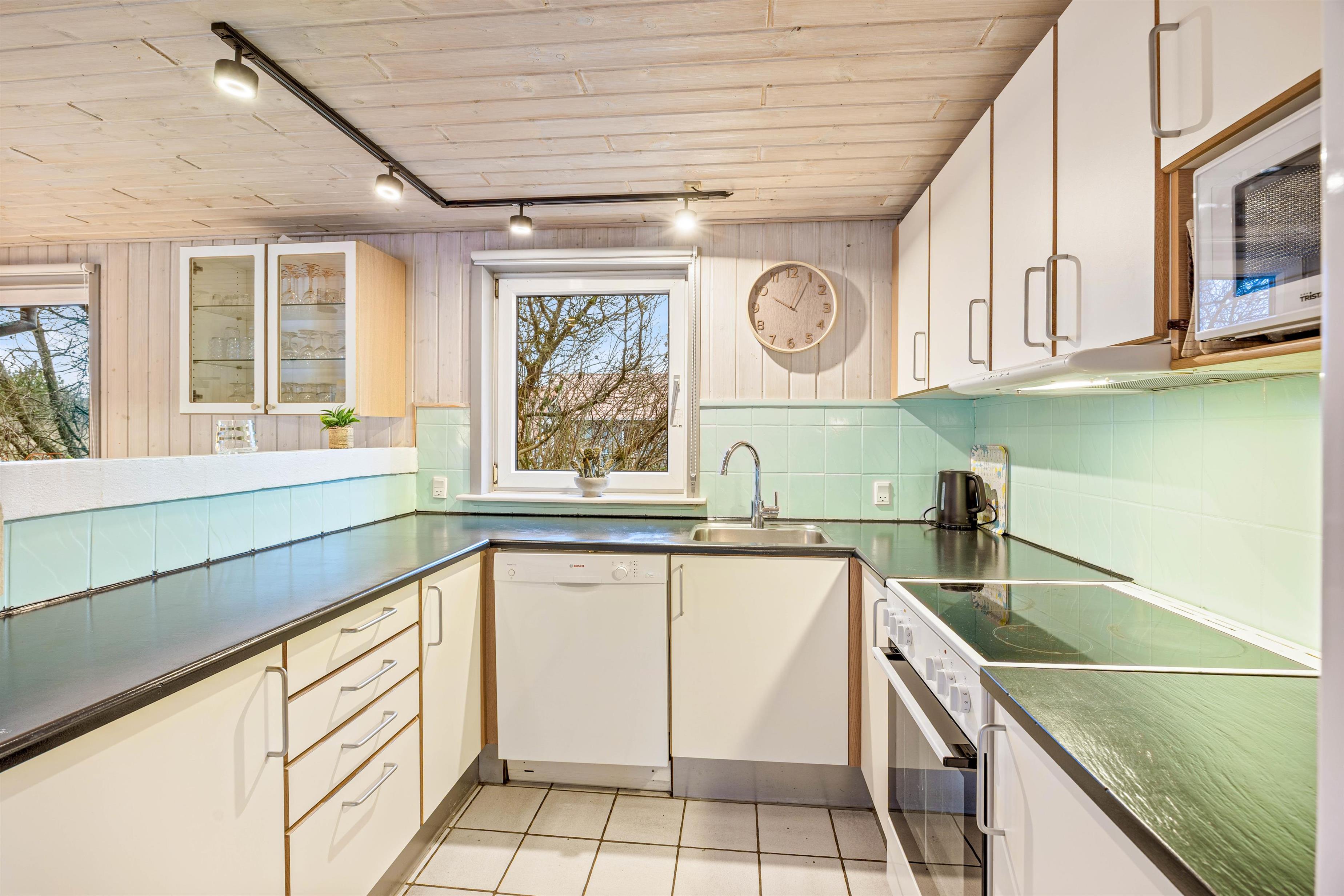 Sommerhuset råder blandt andet over en tørretumbler og vaskemaskine, så I altid har rent tøj og friske håndklæder til rådighed. Efter aftensmaden behøver I ikke vaske op i hånden, da opvaskemaskinen nemt klarer oprydningen efter dagens måltider. Her er naturligvis også 2 badeværelser, så I ikke behøver bekymre jer om kø til toilettet.