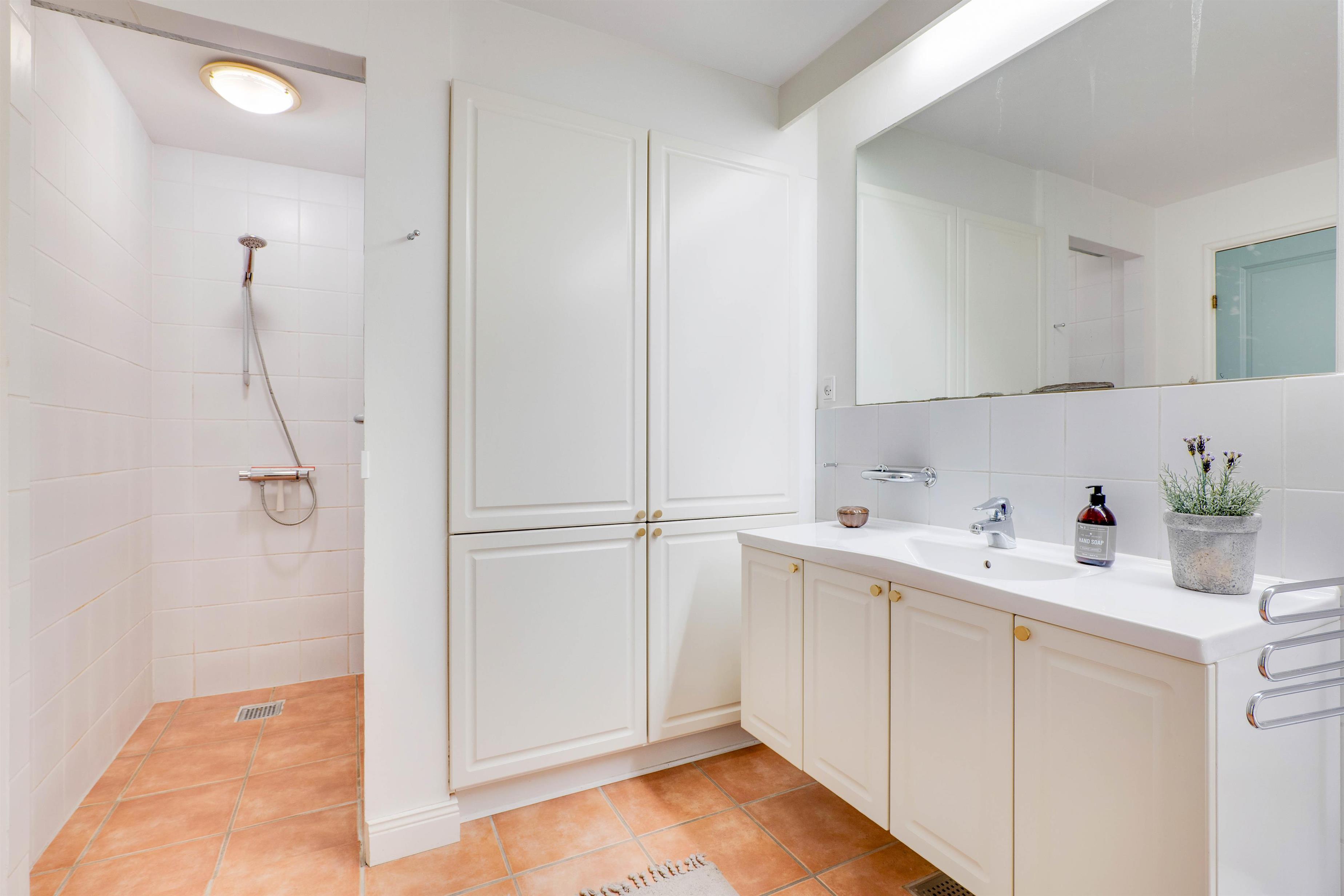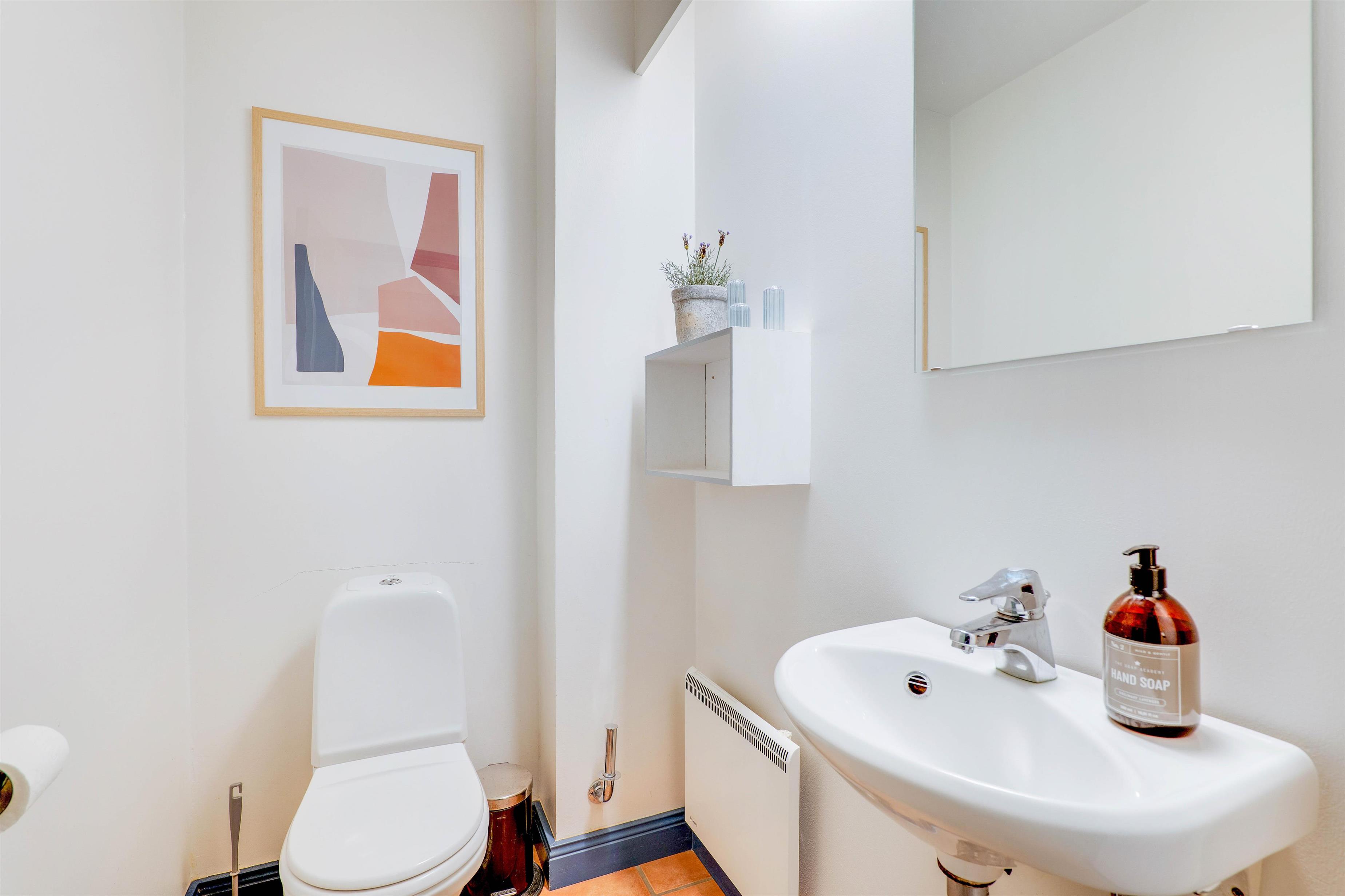 Fra stuen er der direkte udgang til lejlighedens terrasse – et hyggeligt lille gårdmiljø – hvor der er gode havemøbler og grill til rådighed. Det er det perfekte sted at nyde dagens første kop kaffe og betragte den omkringliggende natur.