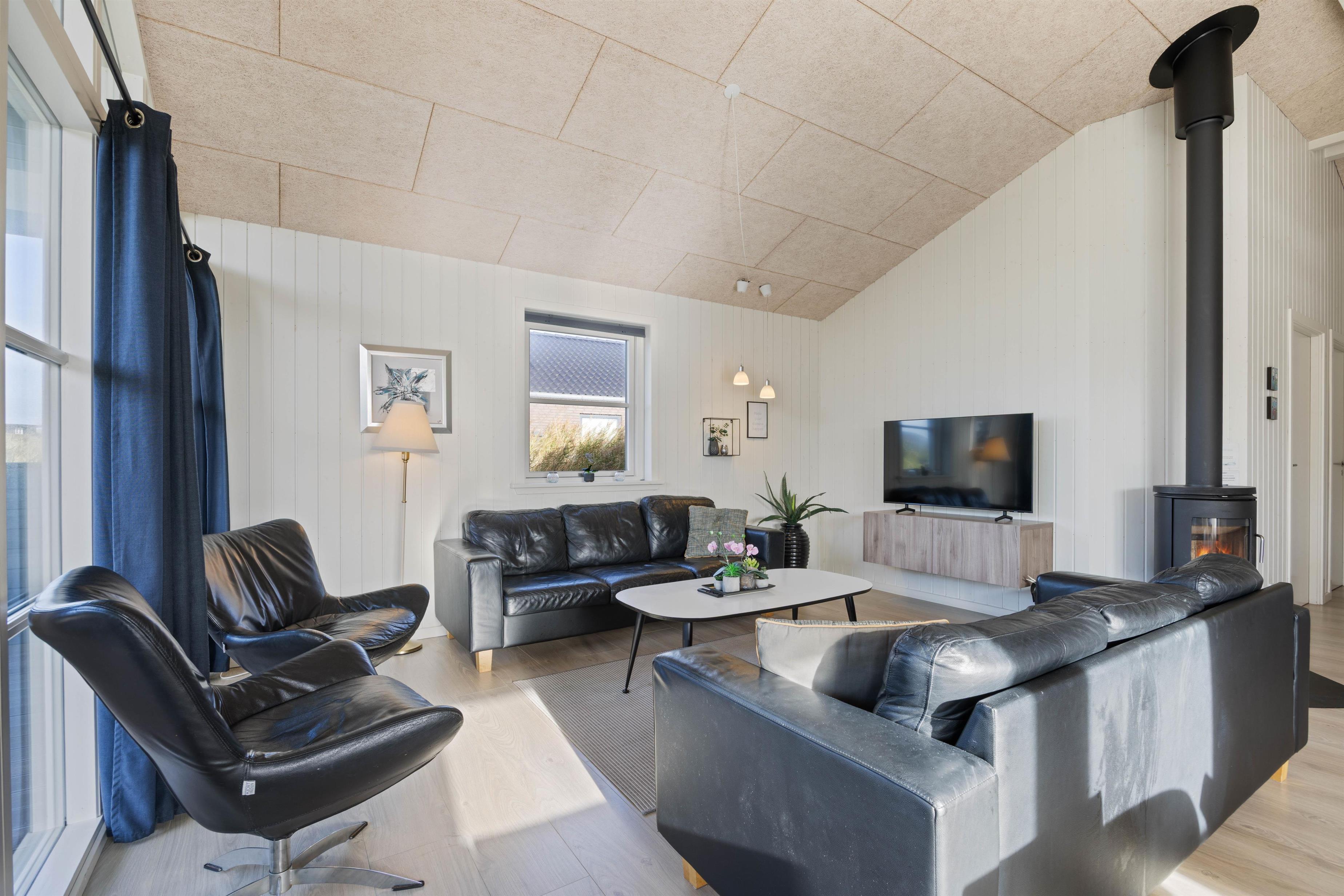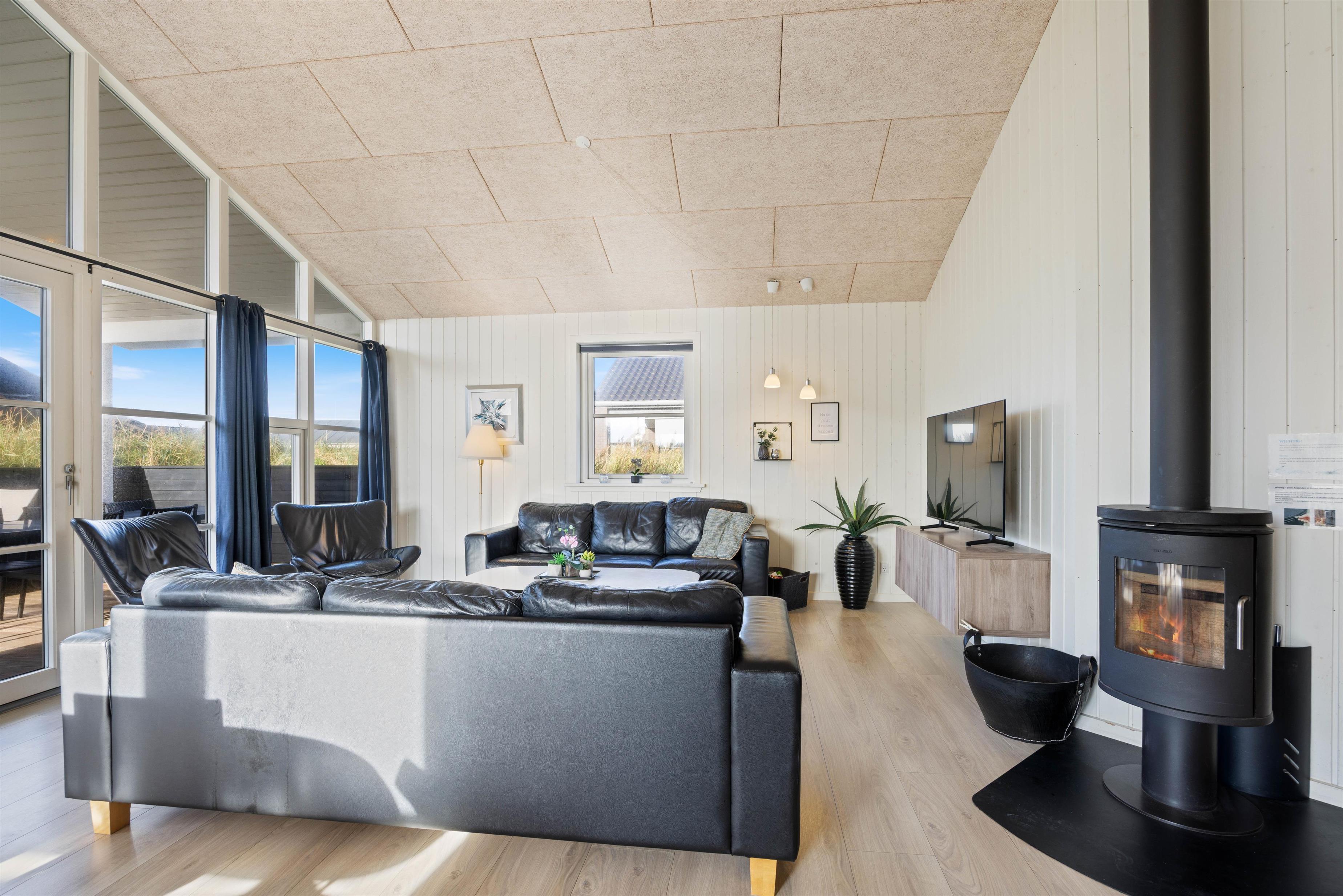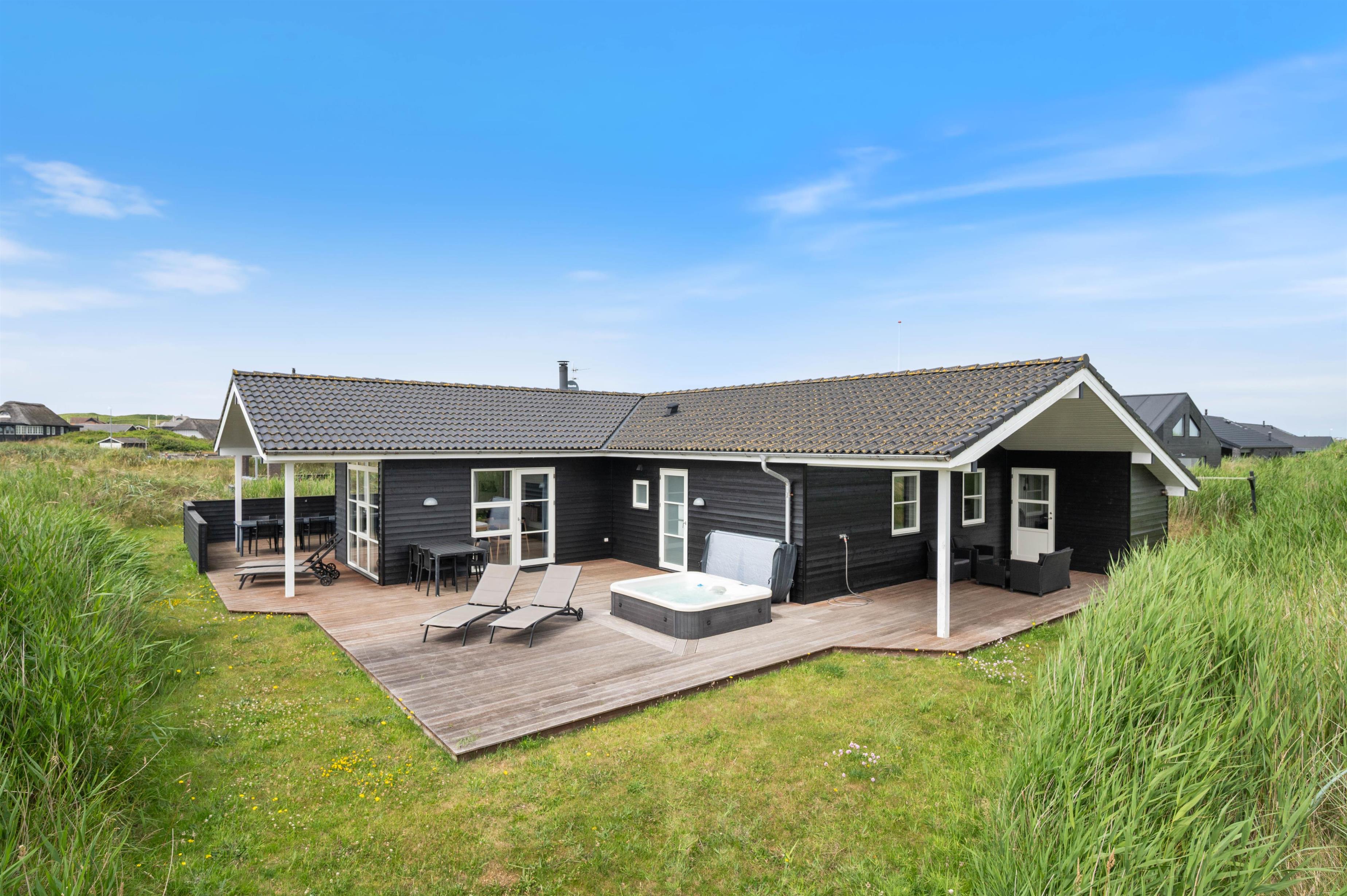 Et rigtigt lækkert sommerhus med en central beliggenhed i Søndervig, tæt på shopping og restauranter, og kun 400 m fra Vesterhavet. Der er fire soveværelser i huset. Tre af værelserne har hver en dobbeltseng, og på det sidste værelse er der en køjeseng. På det store værelse med køjesengene er der et ekstra SMART-TV med DVD-afspiller og Playstation 3 samt et skrivebord til en bærbar PC, så dette værelse er ideelt for børn og unge mennesker. Bemærk venligst, at to af husets sovepladser skal findes på hemsen.