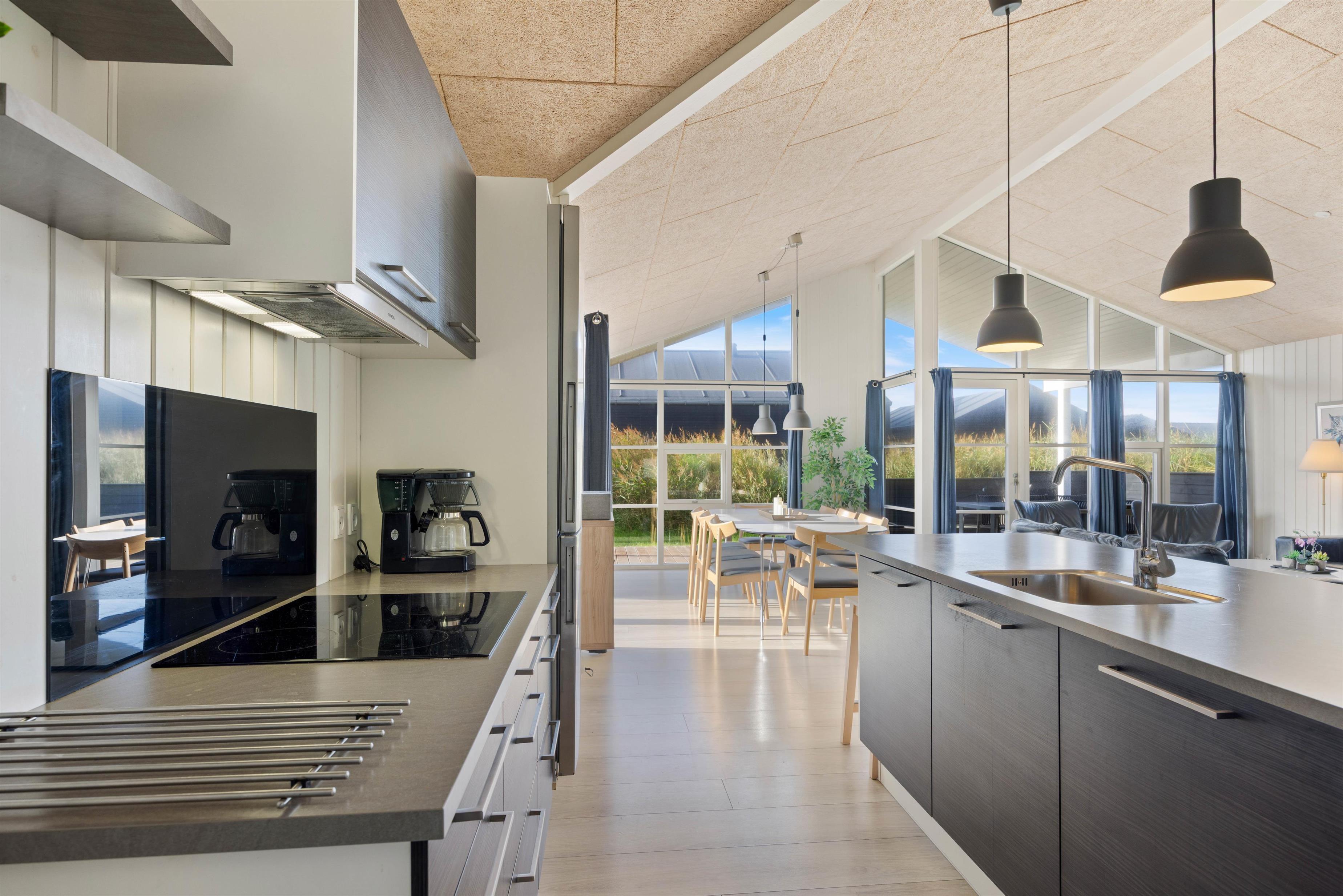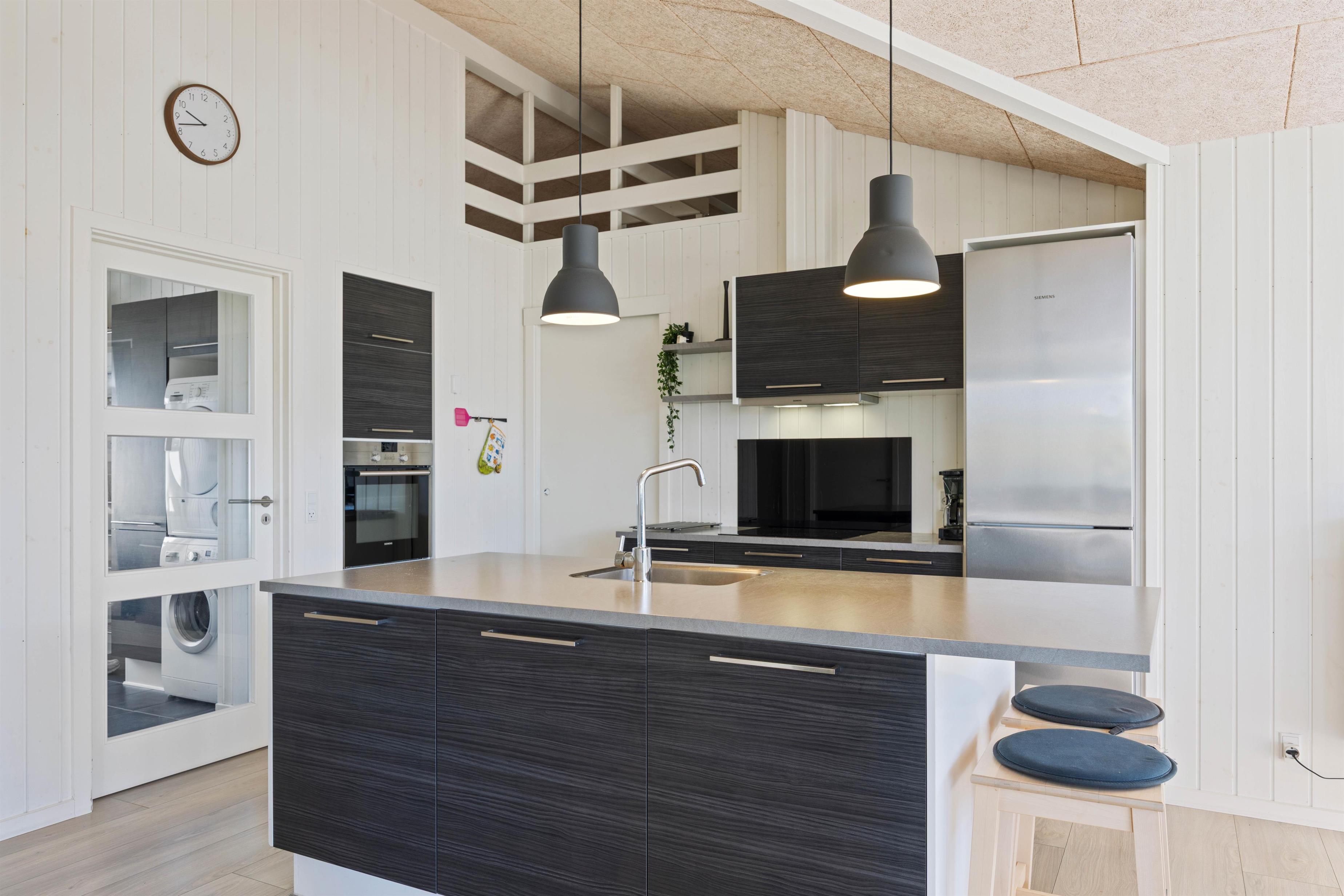 Sommerhuset har to badeværelser. Begge har gulvvarme og en dejlig bruseniche, og der er også sauna i det store badeværelse. Sommerhuset har naturligvis også en vaskemaskine og en tørretumbler. Og i køkkenet er der en opvaskemaskine, en mikroovn og en fryser på 80 L. Stuen er hyggeligt indrettet med et stort SMART-TV, en radio m/CD-afspiller, en brændeovn og gratis trådløst internet Huset er opvarmet ved hjæp af naturgas, som er med til at holde udgifterne til opvarmning lave.
