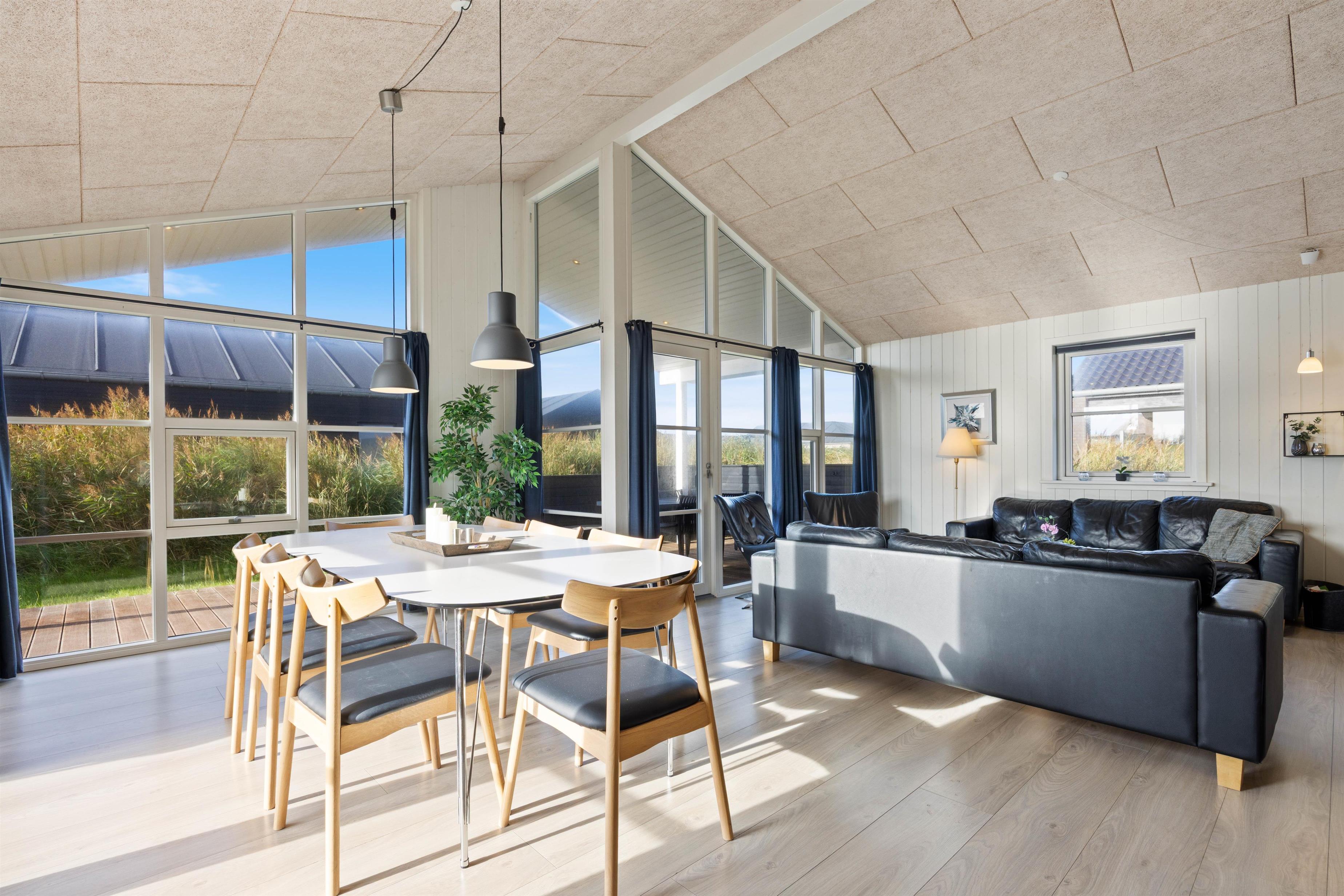 Sommerhuset på Lodbergsvej strækker sig over 125 kvadratmeter. Her er dejligt lyst og er opført i 2013 efter moderne standarder. Loftet går derfor selvfølgelig hele vejen til kip, hvilket er med til at give rummene en god rummelighed og fornemmelse. Der er også tænkt på akoustikken, eftersom man har valgt at opsætte troldtekts lofter i hele huset.
