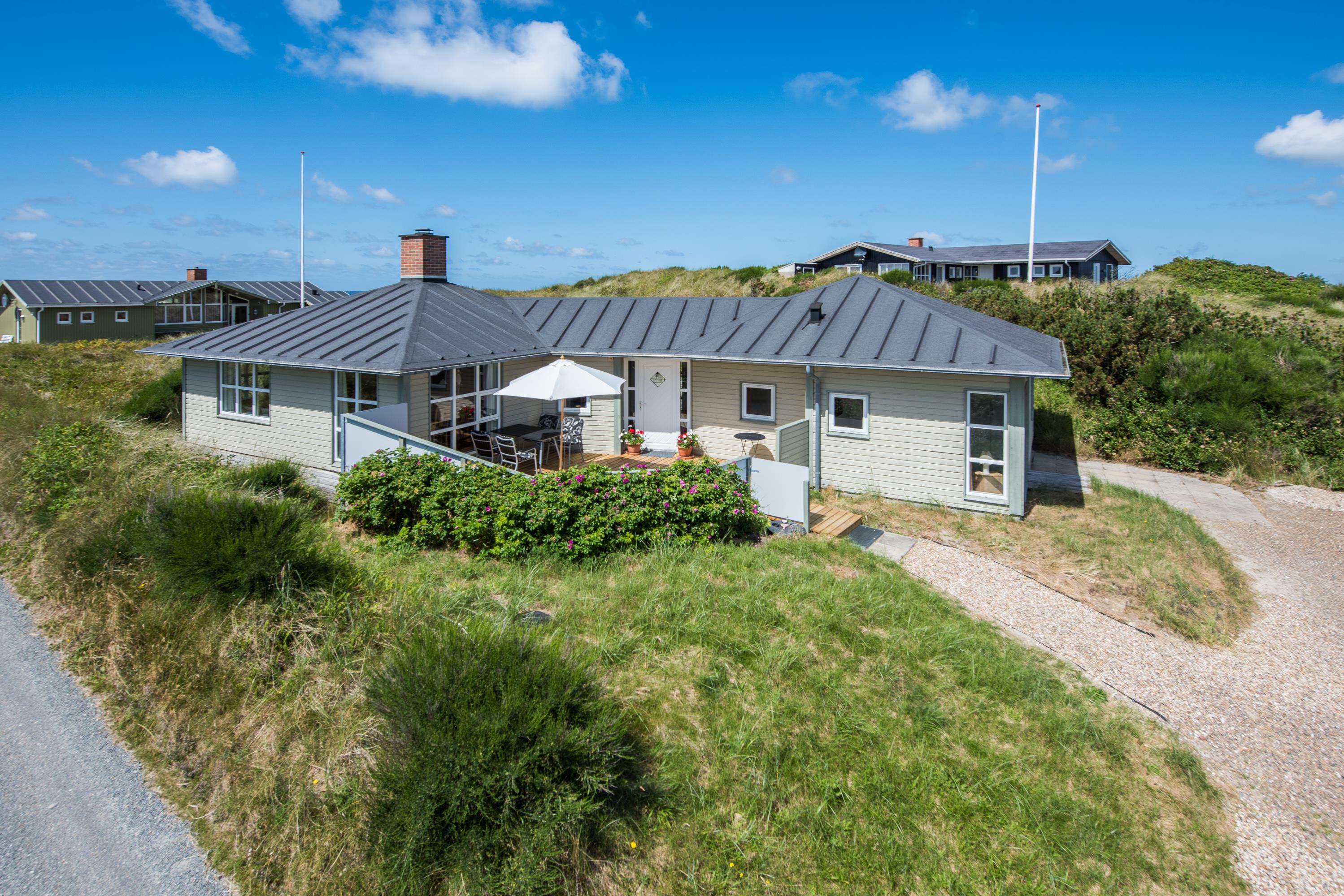 Rundt om feriehuset finder I to gode lukkede terrasser, og der er god ro og fred til at nyde de varme sommerdage. Havemøbler og liggestole står selvfølgelig til rådighed, og på de lune aftener kan I tænde op i grillen og spise middag i skæret fra den røde aftensol.