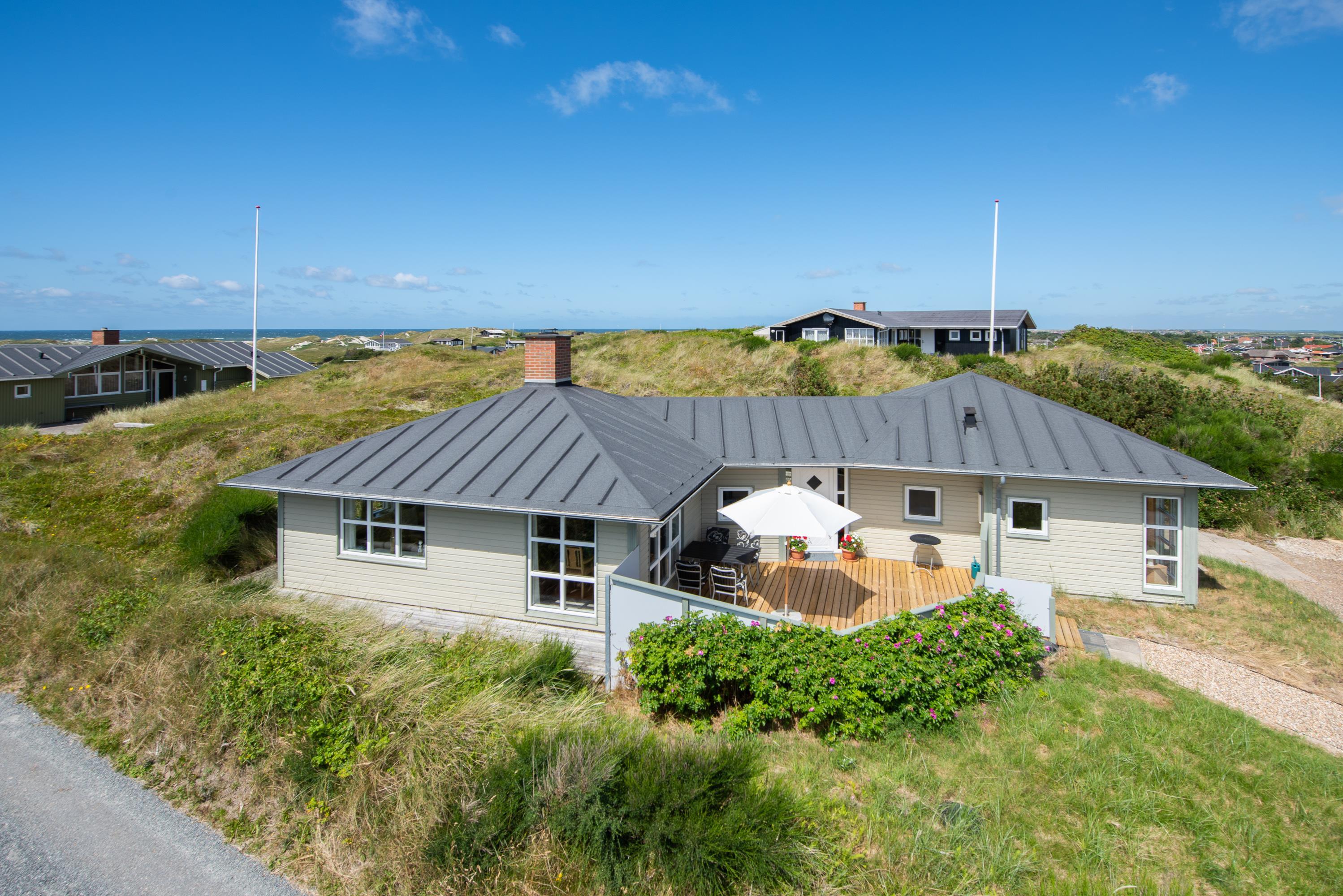Kun 250 meter fra det brusende Vesterhav ligger dette skønne feriehus til 6 personer. Den lyse og charmerende indretning (med lækkert spabad!) vil straks byde jer velkommen, I får to gode lukkede terrasser - og den flotteste udsigt til både havet og fjorden. Dette sommerhus en unik kombination af komfort, bekvemmelighed og naturskønhed og kan rumme op til seks personer.