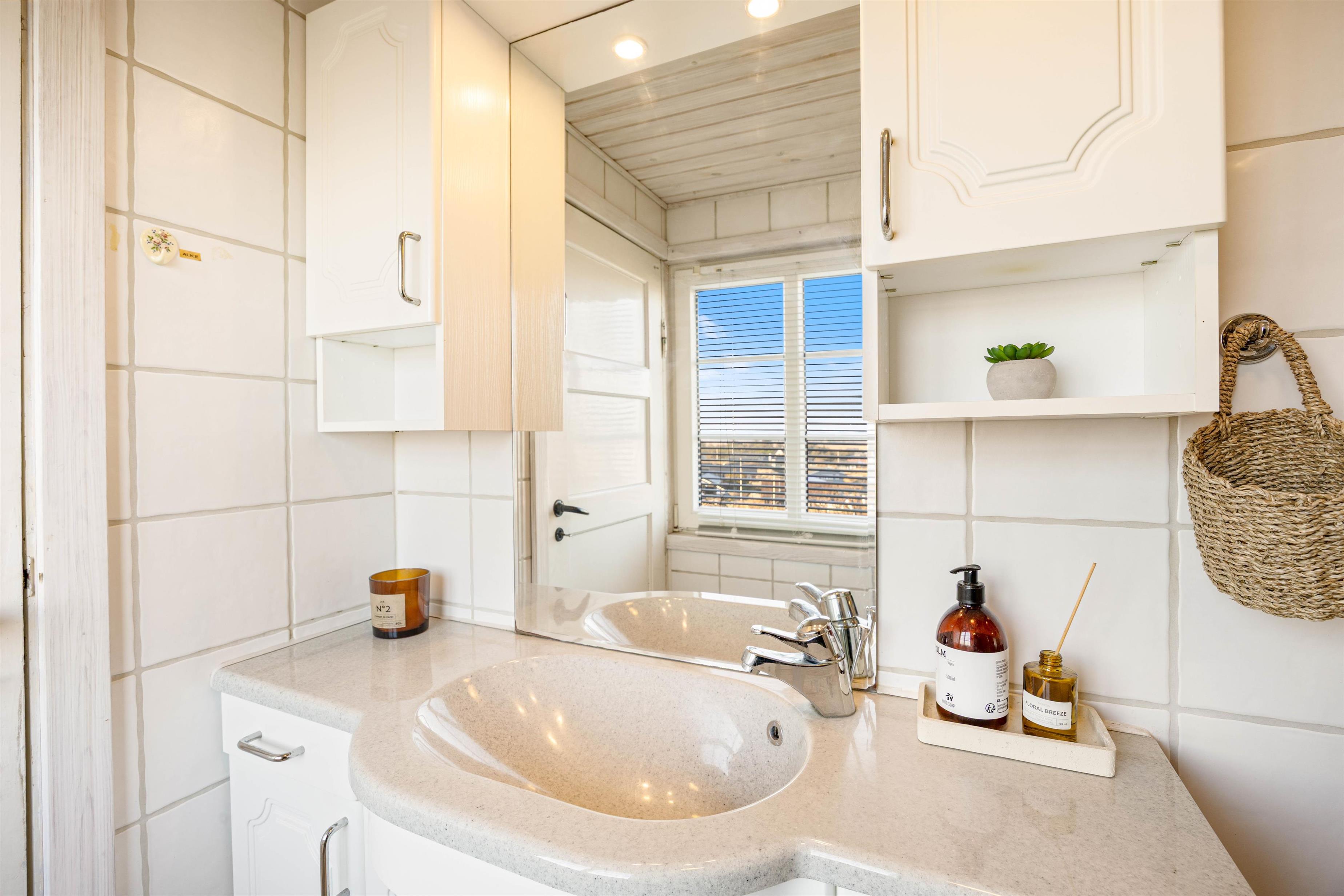 De 73 kvadratmeter blev opført i 1936, og er indrettet med 2 soveværelser med enkeltsenge. I det ældre, men funkionelle køkken kan I nyde den fantastiske udsigt ud over klitterne, imens I sidder og nyder et godt måltid mad. Til jeres madlavning er der en bordovn til rådighed, og derefter kan opvaskemaskinen klare opvasken for jer.