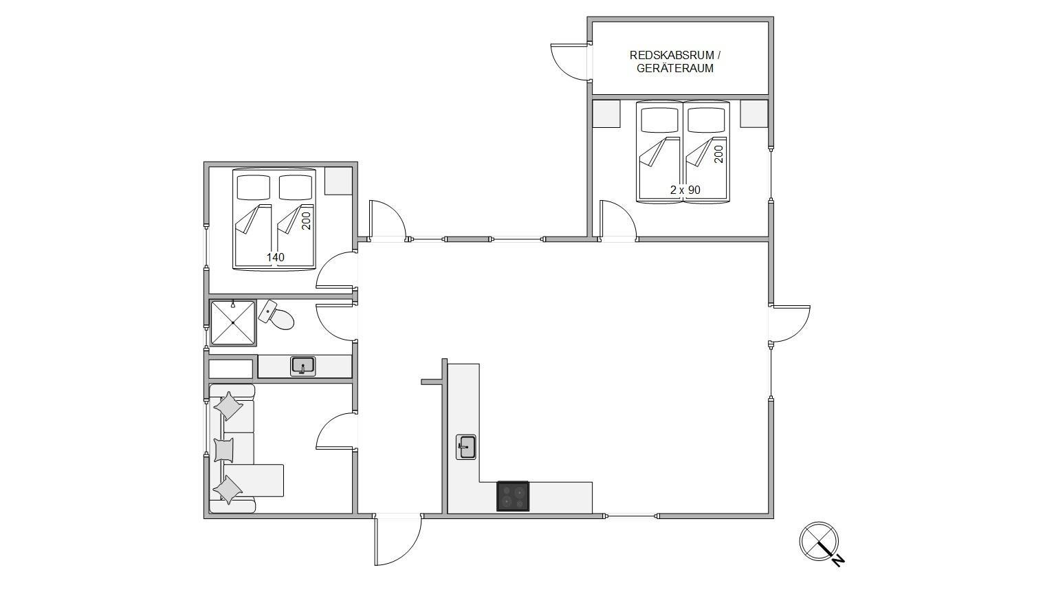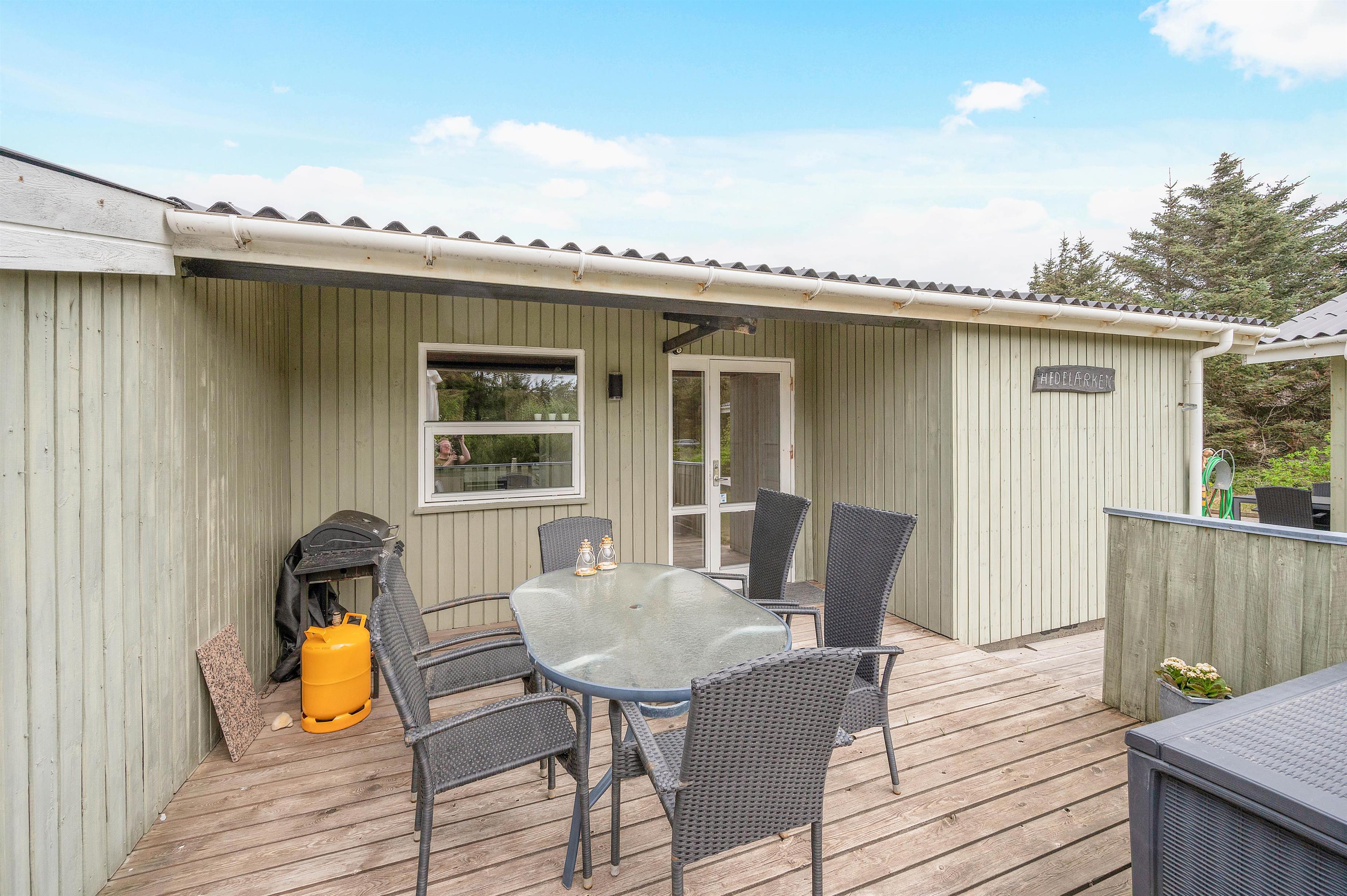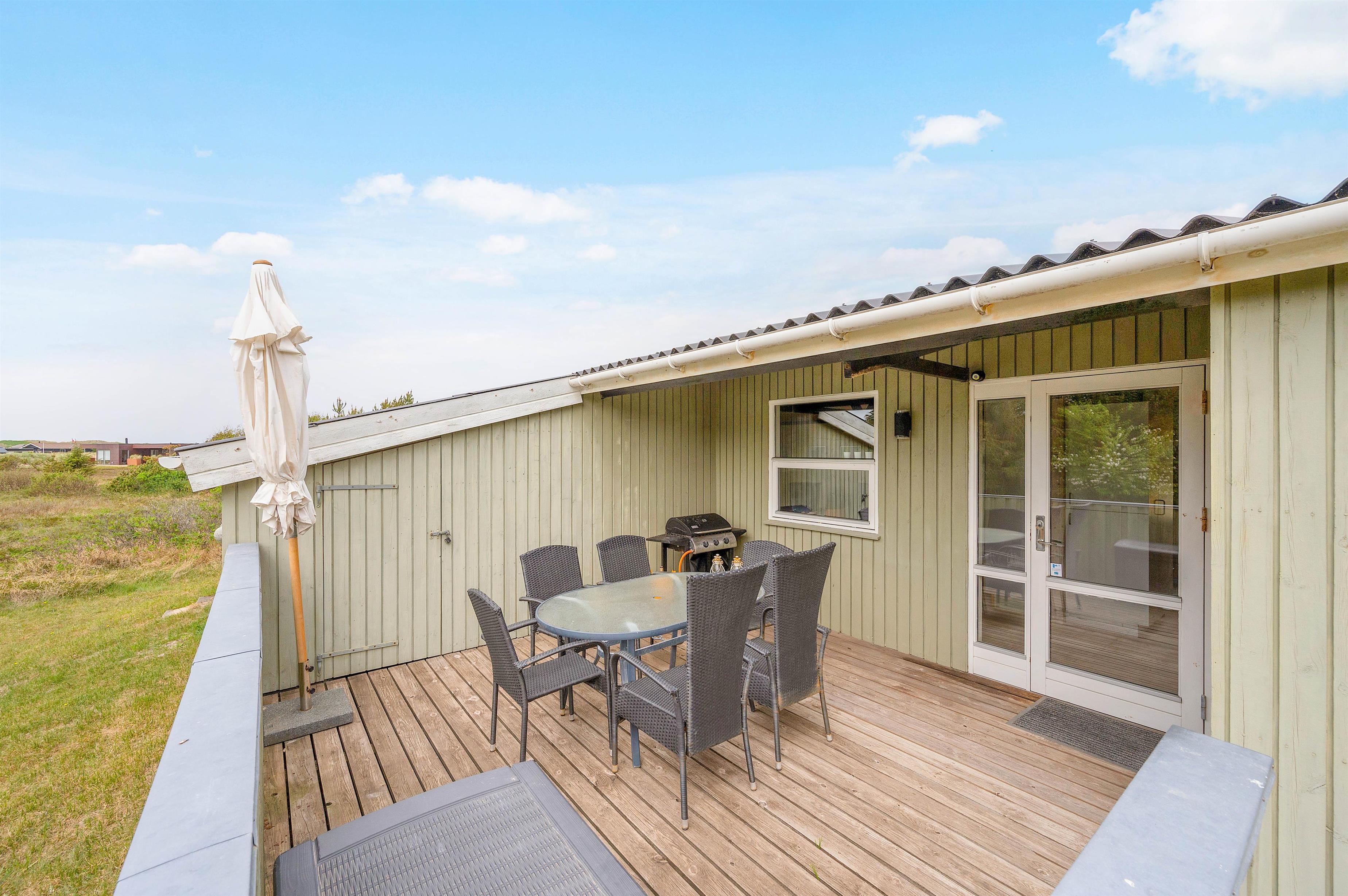 Når vejret er godt, kan I nyde livet ude på den afskærmede trætrerrasse. Her er både havemøbler og grill til rådighed på terrassen, som indbyder til ren afslapning. Her kan I sidde og nyde en kølig drink eller en lækker middag tilberedt på grillen, mens solen går ned bag klitterne. Feriehuset tillader også at I kan tage en enkelt und, så I kan tage jeres firbenede ven med på ferien, dog med en begrænsning på en hund.