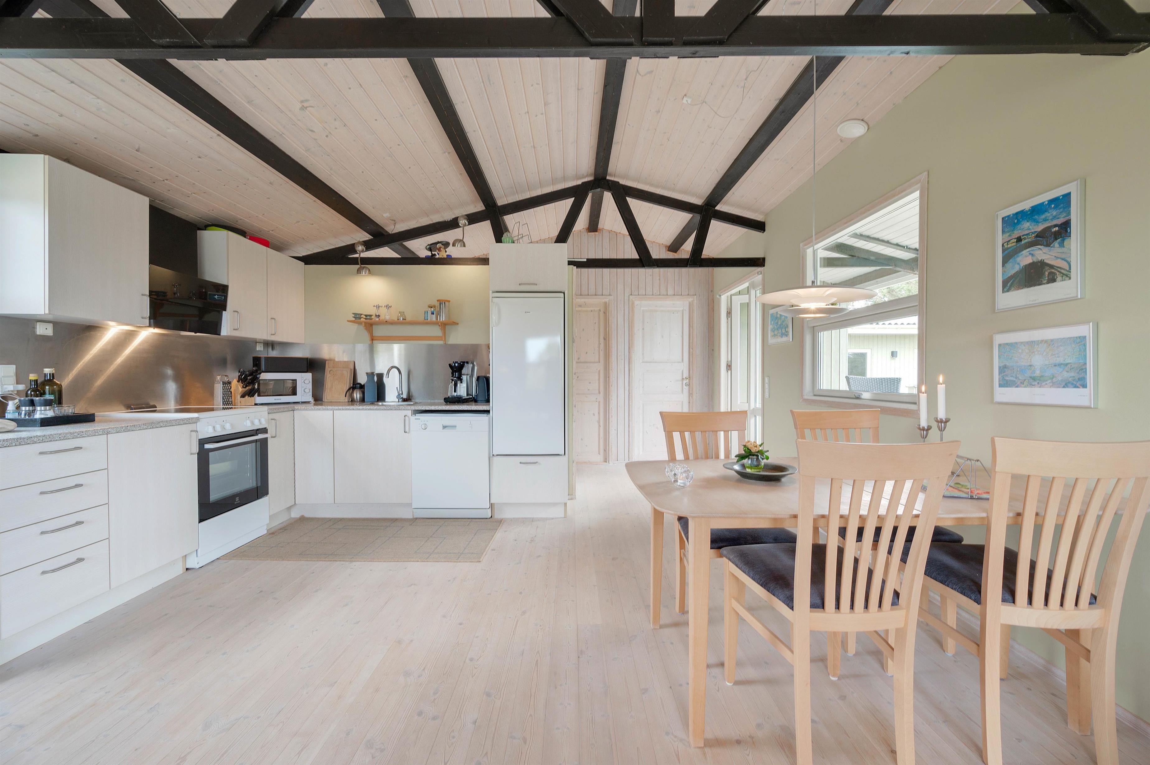 Når I overnatter i dette feriehus, vil du opleve, hvordan moderne bekvemmeligheder møder hyggelig atmosfære. Udover den energivenlige varmepumpe, så er feriehusets køkken er fuldt udstyret med en opvaskemaskine, så I slipper for opvasken og kan bruge mere tid på at nyde jeres ferie og kvalitetstiden med hinanden. Der er også en 30 liters separat fryser til at holde jeres madvarer friskere i længere tid. Gulvvarme i badeværelset sikrer samtidig også, at I kan starte dagen ud på den bedst mulige måde med varme fødder.