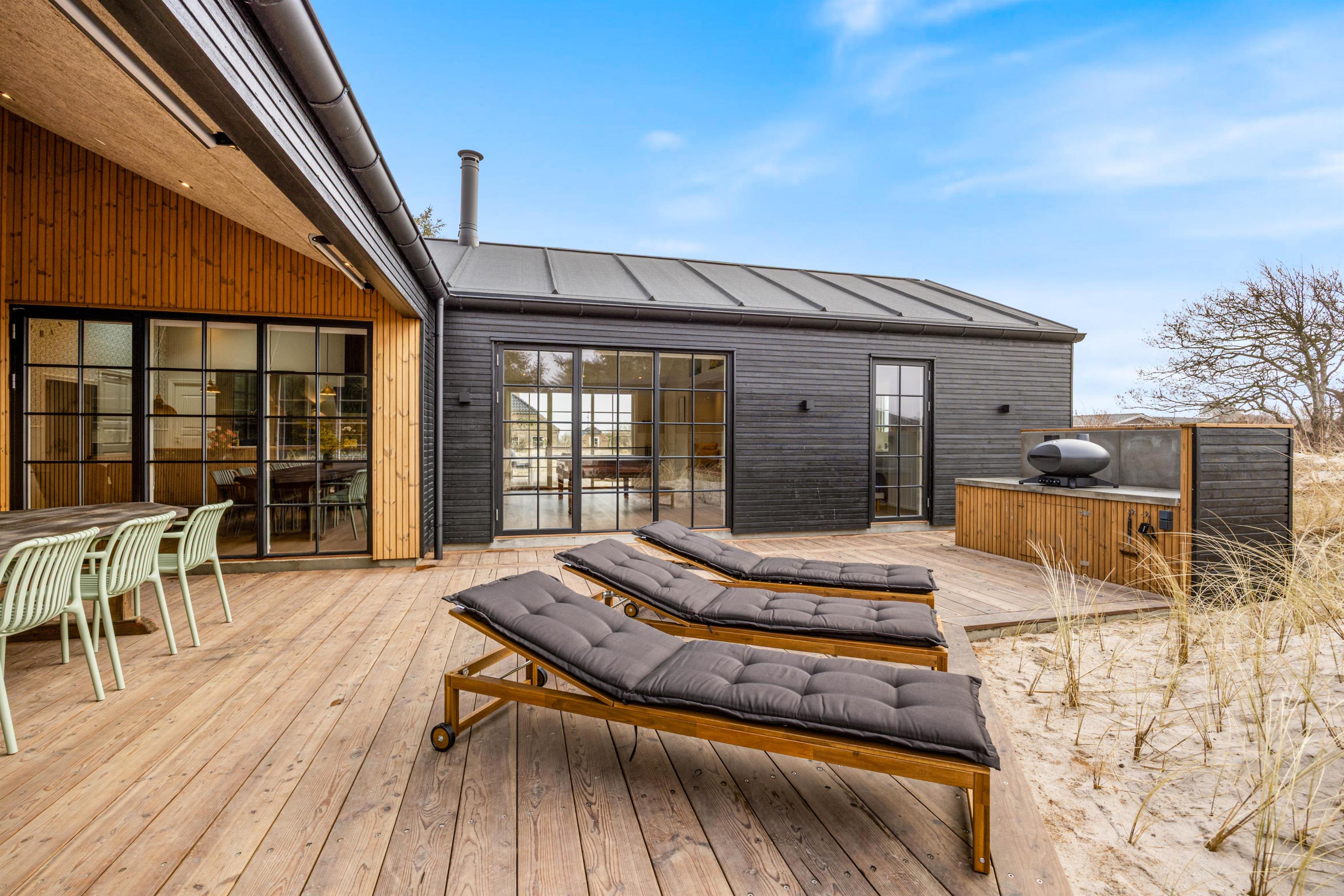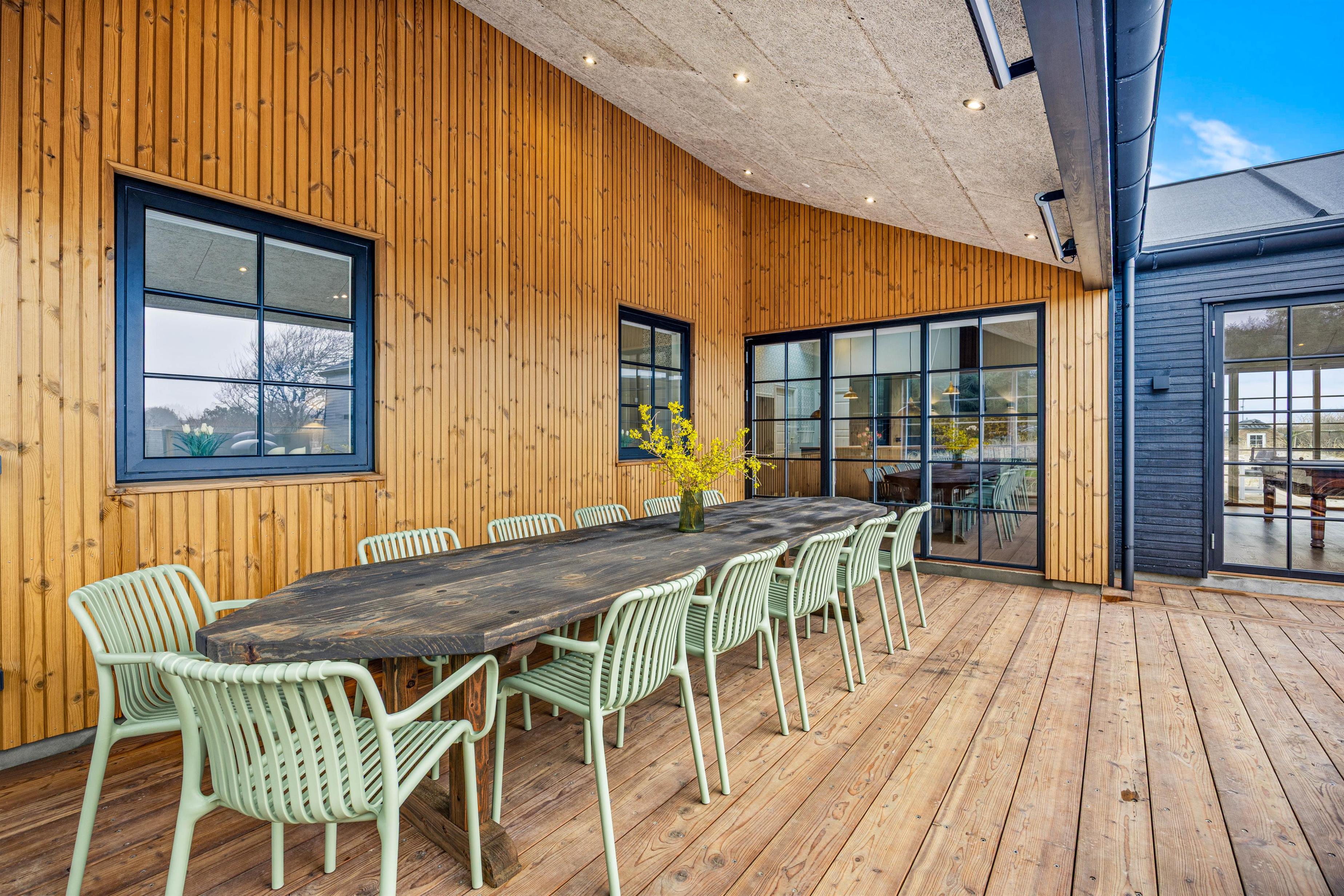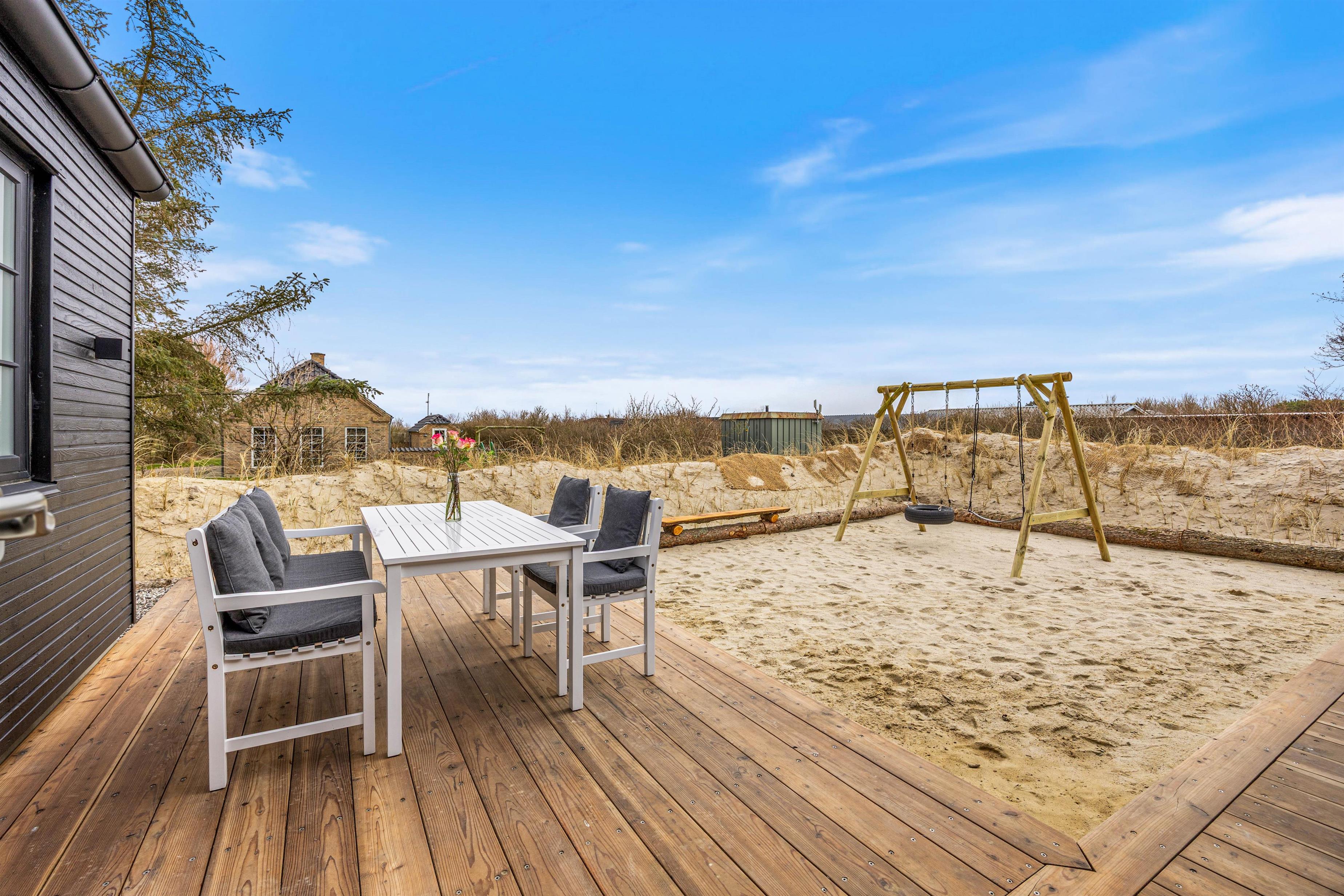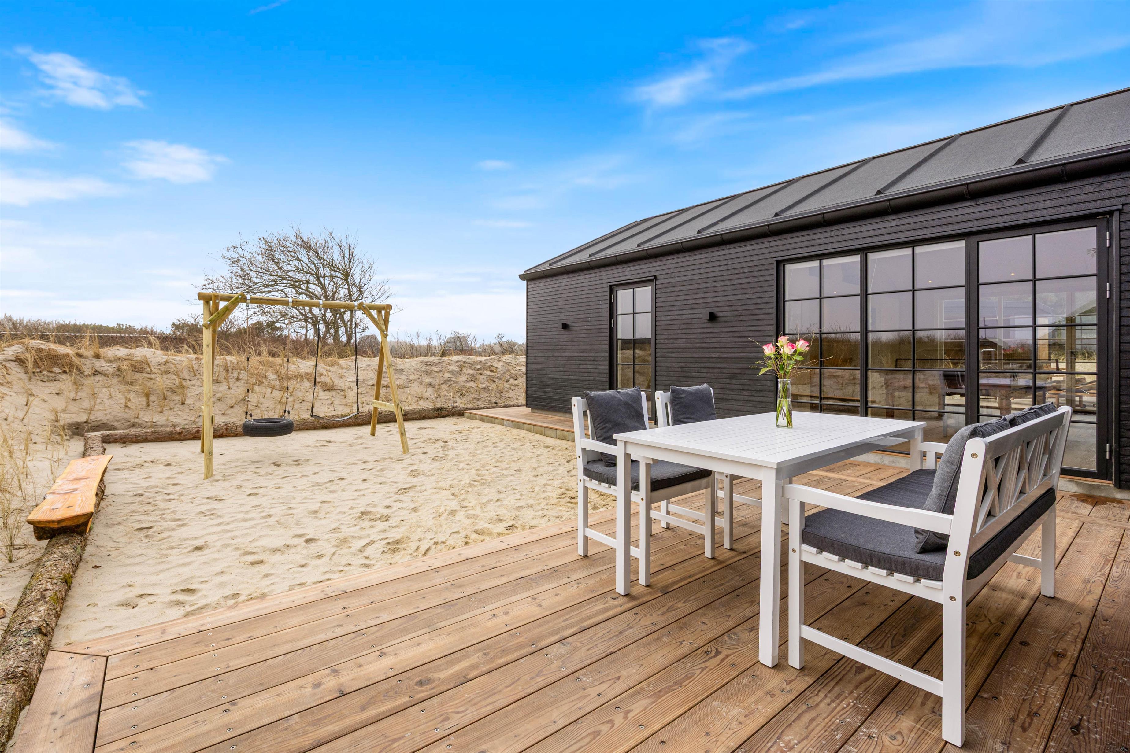 På den dejlige terrasse ved sommerhuset er der sørget for, at I kan nyde jeres ferie i fulde drag. Her er der flere forskellige områder, hvor I kan slappe af og nyde ferien. Den overdækkede del af terrassen er helt oplagt til de lange aftener, hvor I kan tilberede aftensmaden ved hjælp af sommerhusets gasgrill.