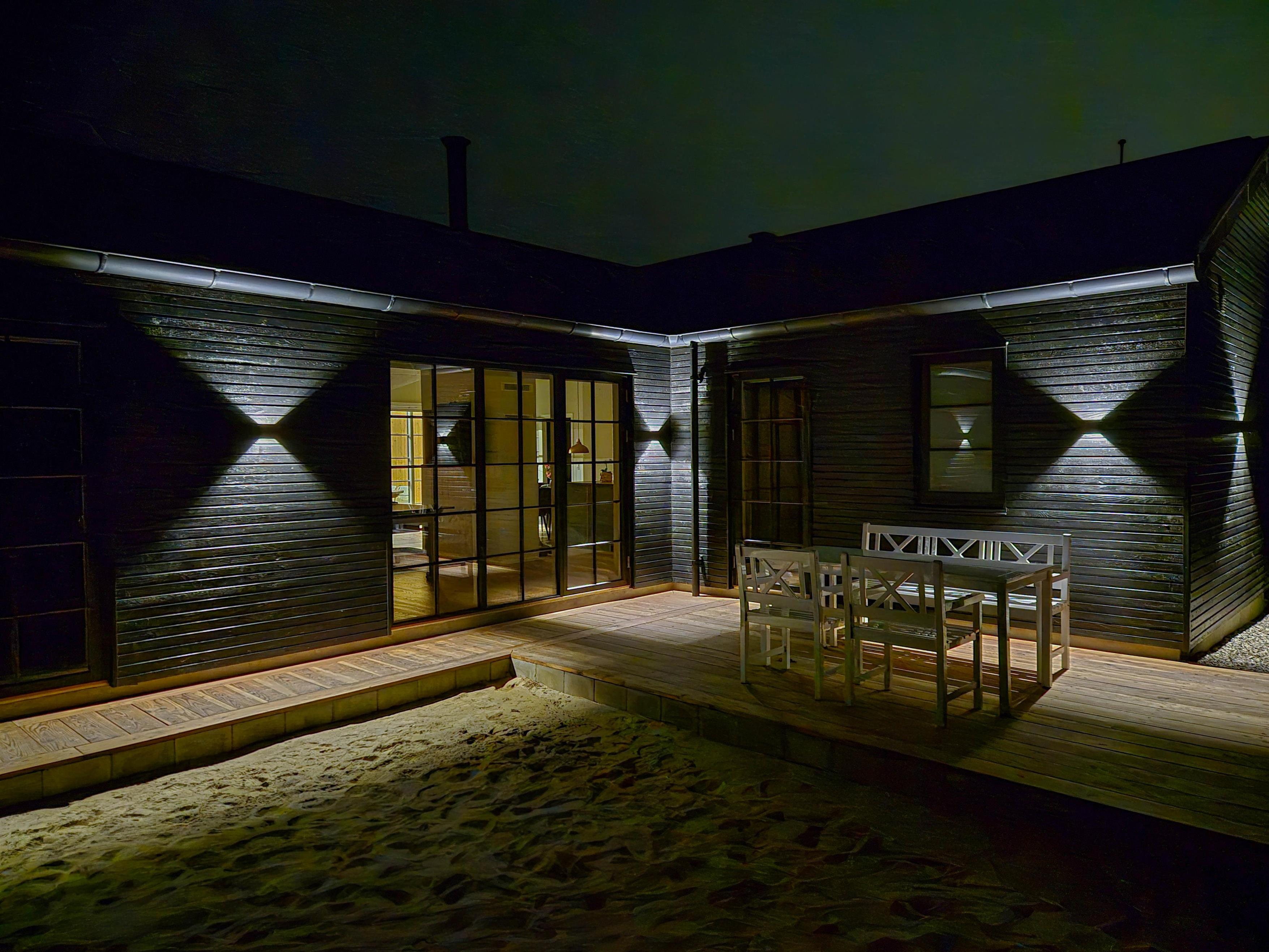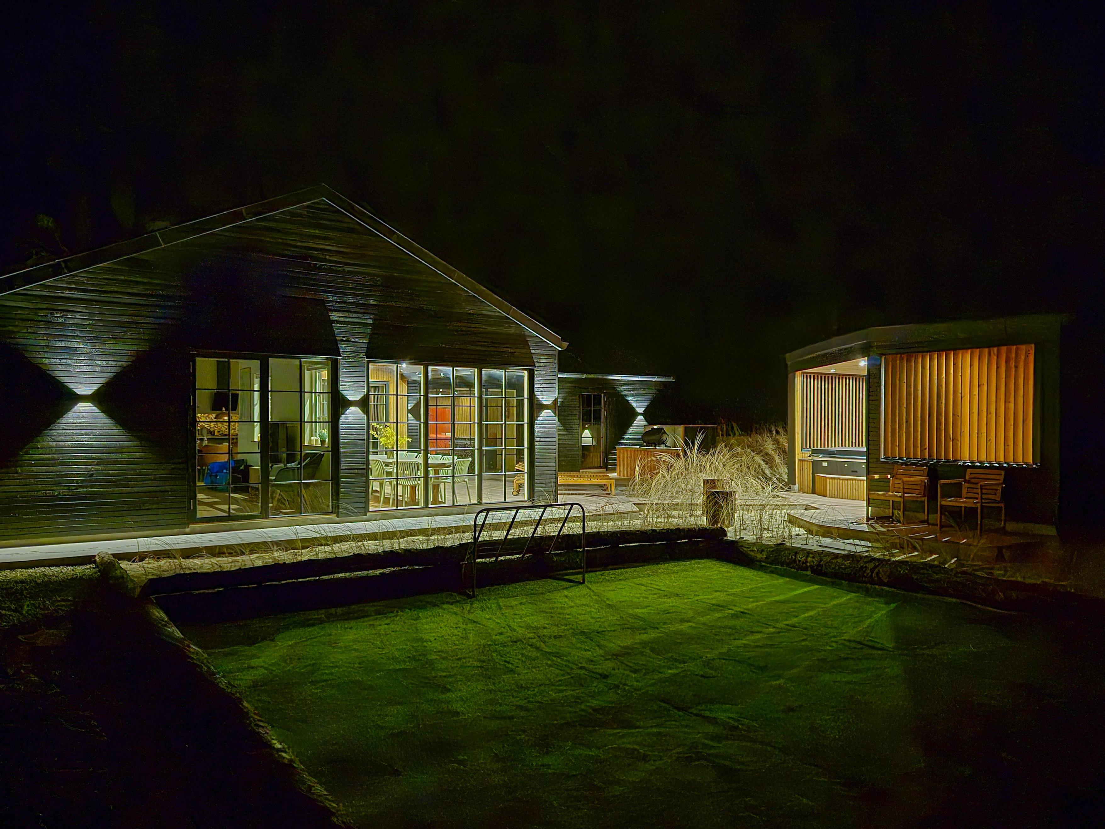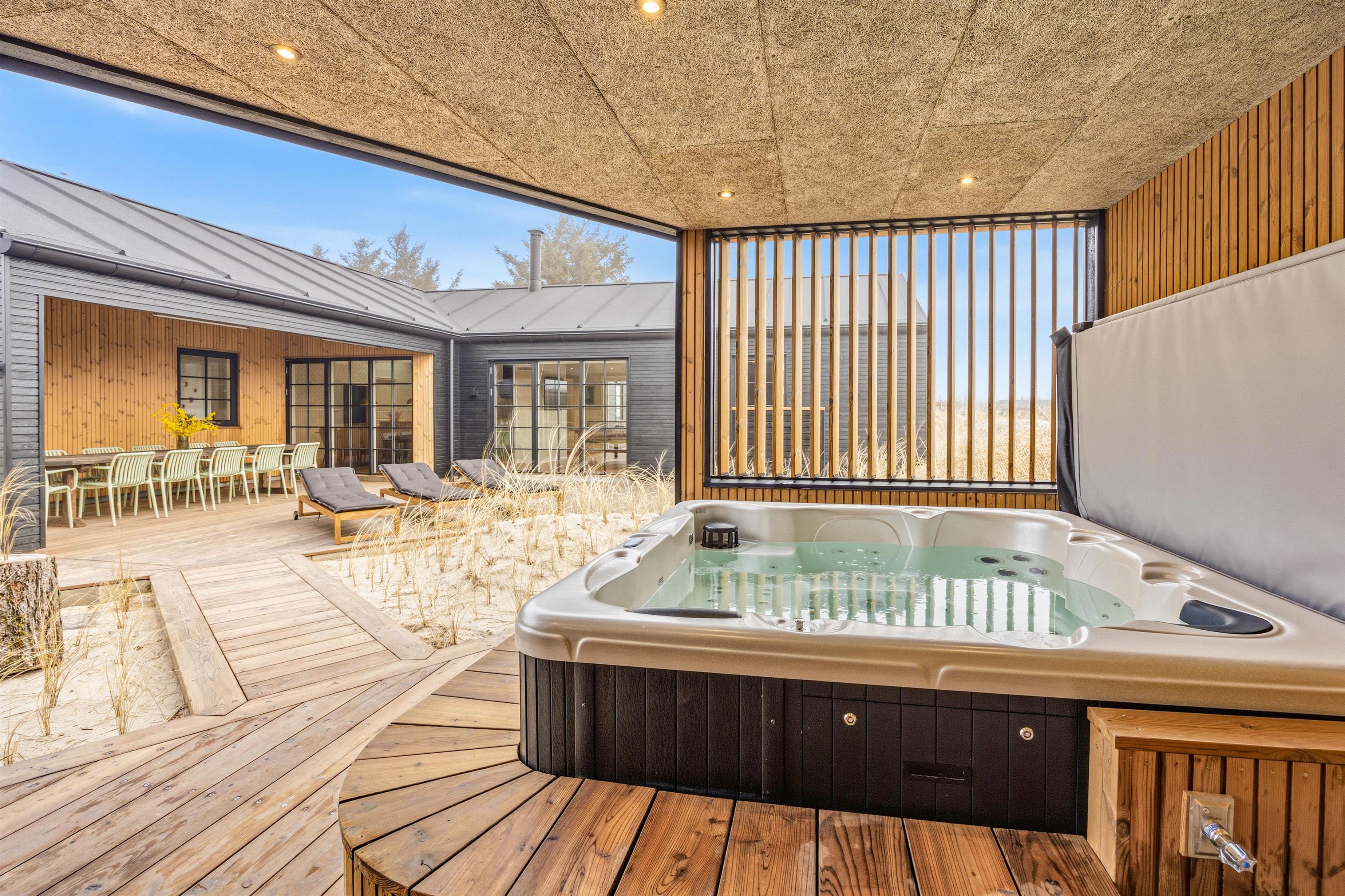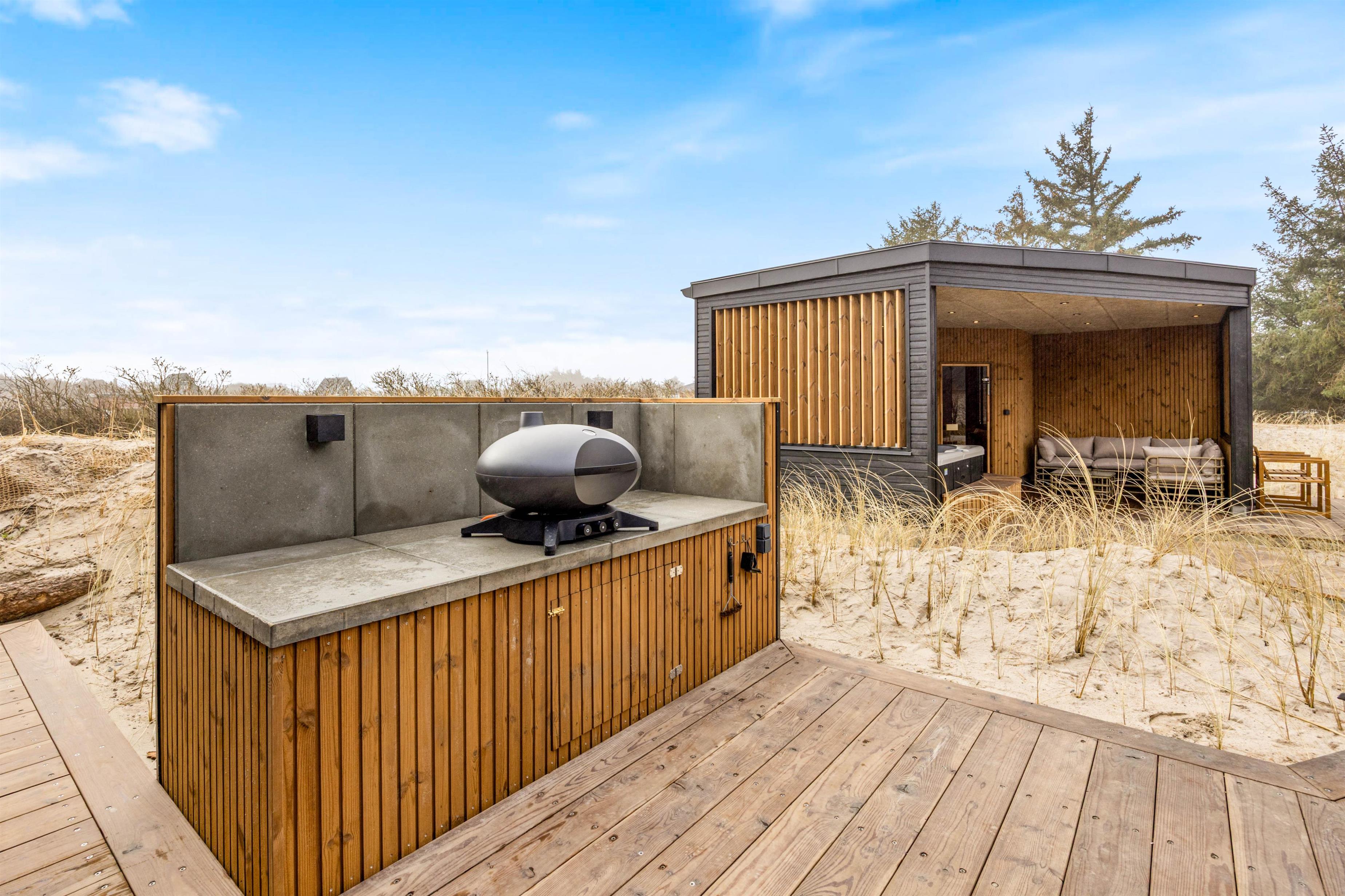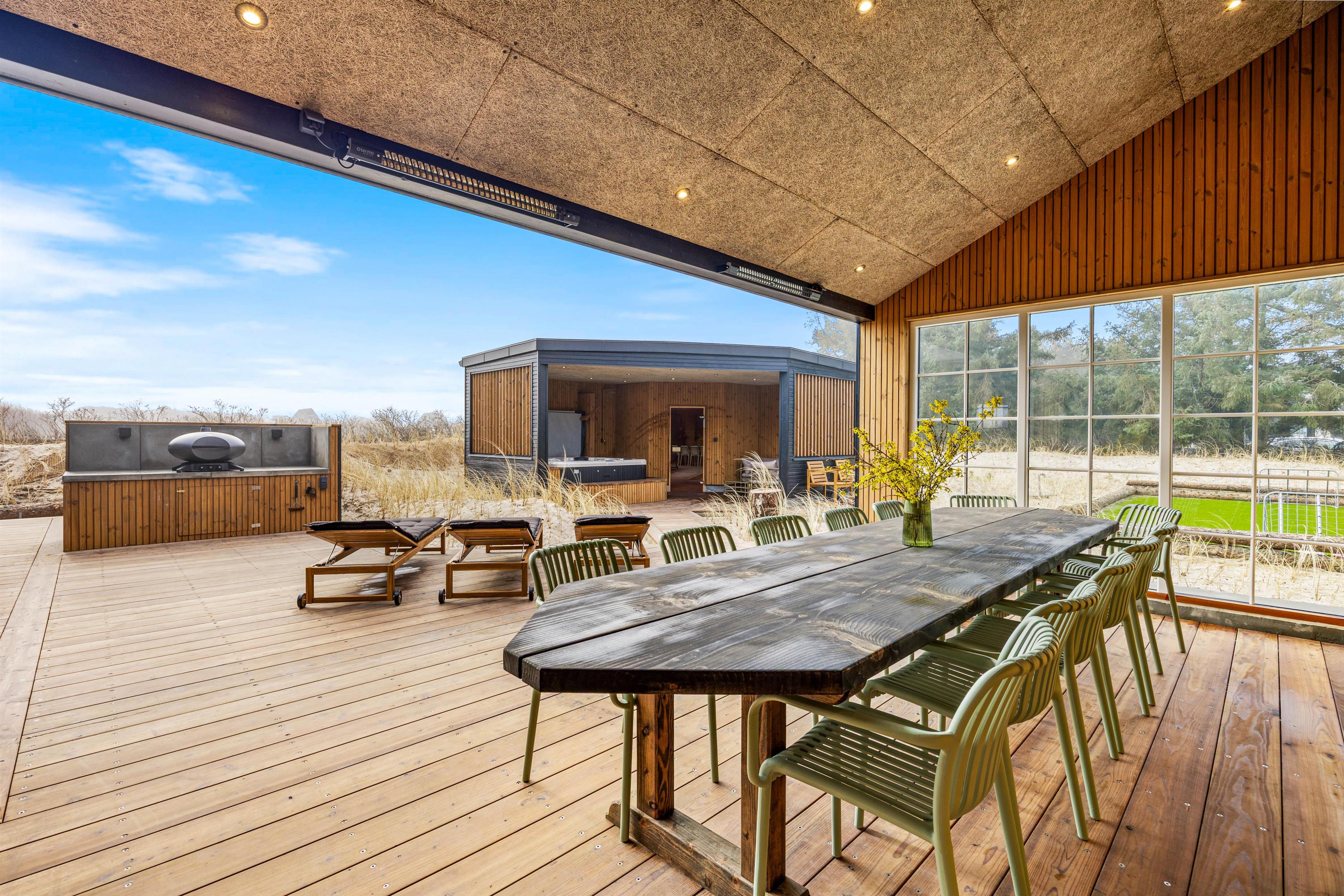 Et af sommerhusets højdepunkter finder I netop her på terrassen: en skøn udespa og en udesauna. Her kan I nyde lidt ekstra velvære – og uanset årstiden, er det skønt at sidde i spaen med noget koldt at drikke, mens I nyder stjernehimlen.