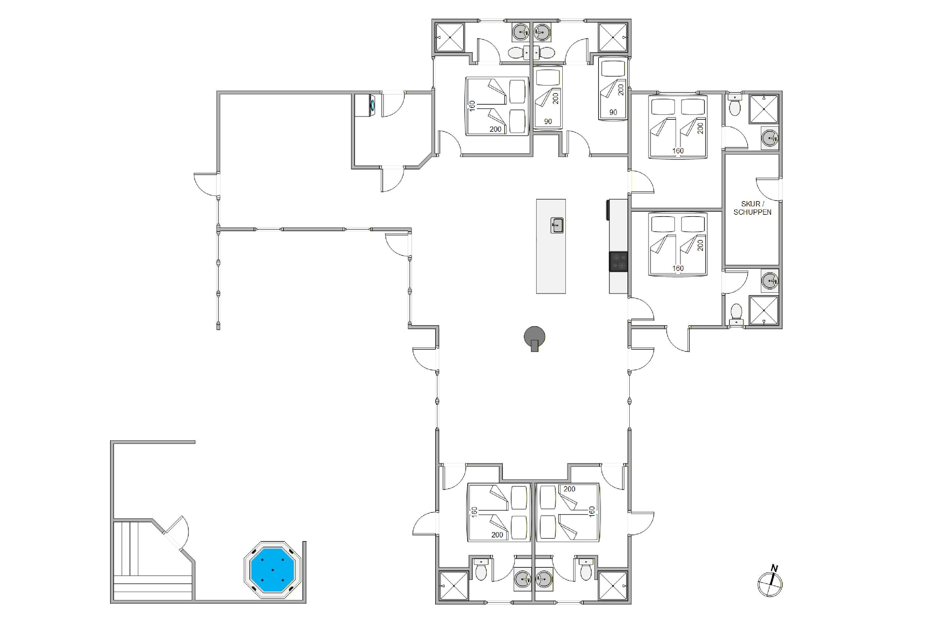 De mange praktiske faciliteter og den gode planløsning i dette sommerhus på Harbo Stages Vej 17 er med til at sikre, at I med garanti vil føle jer hjemme og få en dejlig ferie. Sommerhuset kan huse op til 12 gæster, der kan fordele sig på 6 dejlige værelser. Som noget helt særligt, har alle værelser deres eget private badeværelse, hvilket sikrer et højt komfortniveau.
