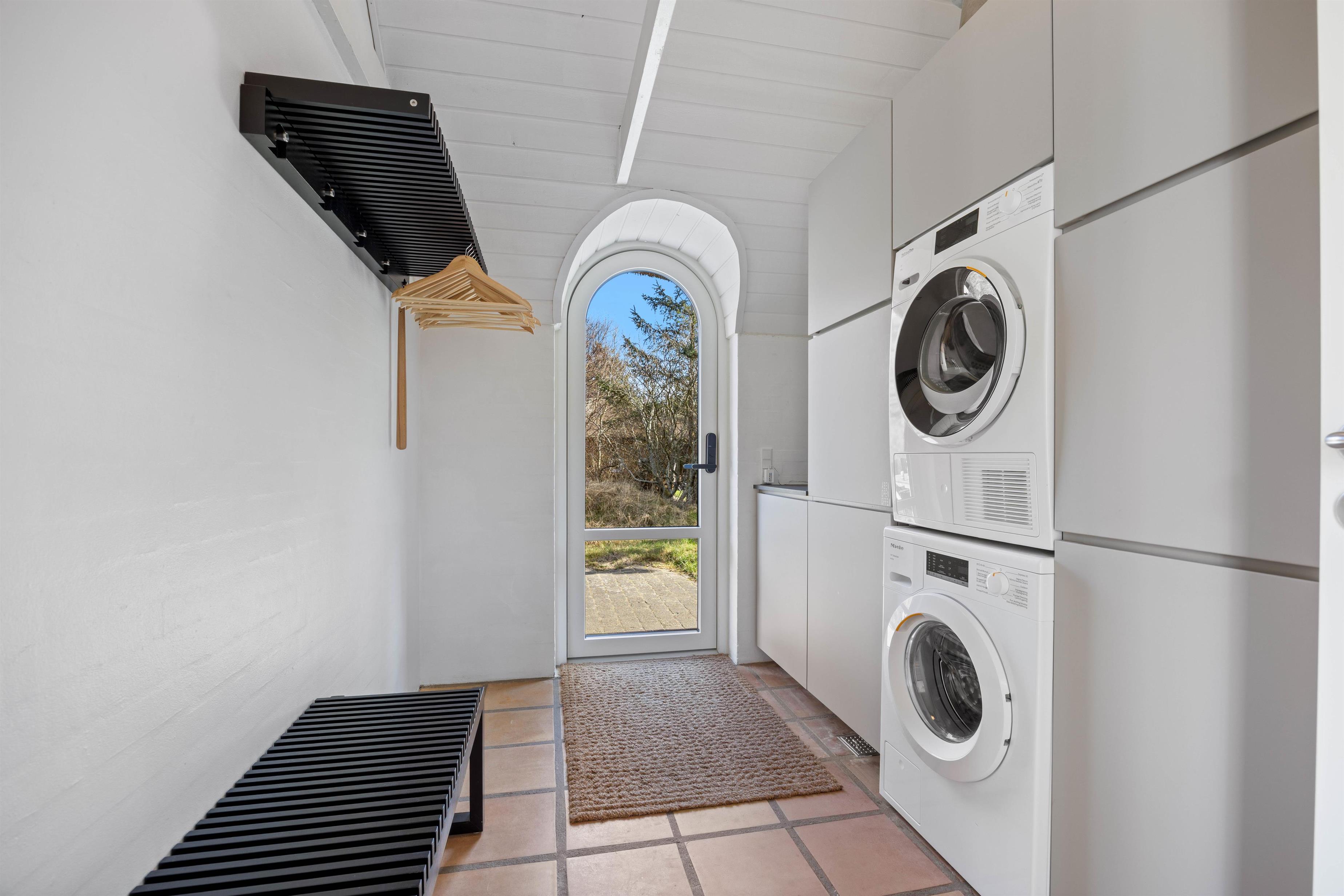 Huset byder på 4 rummelige soveværelser og 2 hyggelige hemse med i alt 4 ekstra sovepladser – et sikkert hit hos børnene. Begge badeværelser har gulvvarme, og med vaskemaskine og tørretumbler til rådighed bliver hverdagspraktikken både nem og bekvem under opholdet.