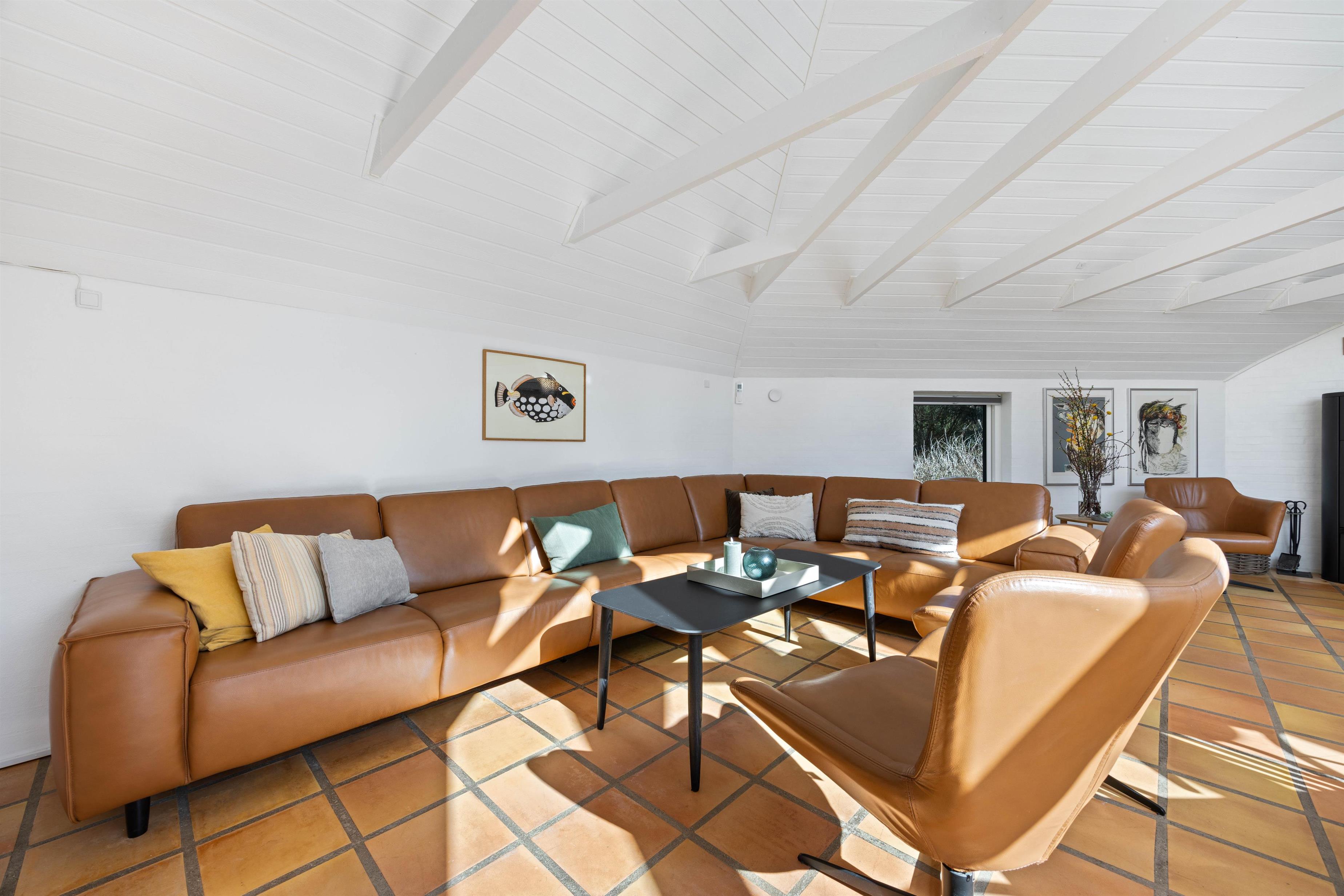 Sommerhuset ligger kun 970 meter fra havet og 2600 meter fra Søndervig, hvor I finder både supermarkeder og butikker, så både strandture og praktiske ærinder altid er inden for rækkevidde. For lystfiskere ligger en fiskesø blot 400 meter fra huset.