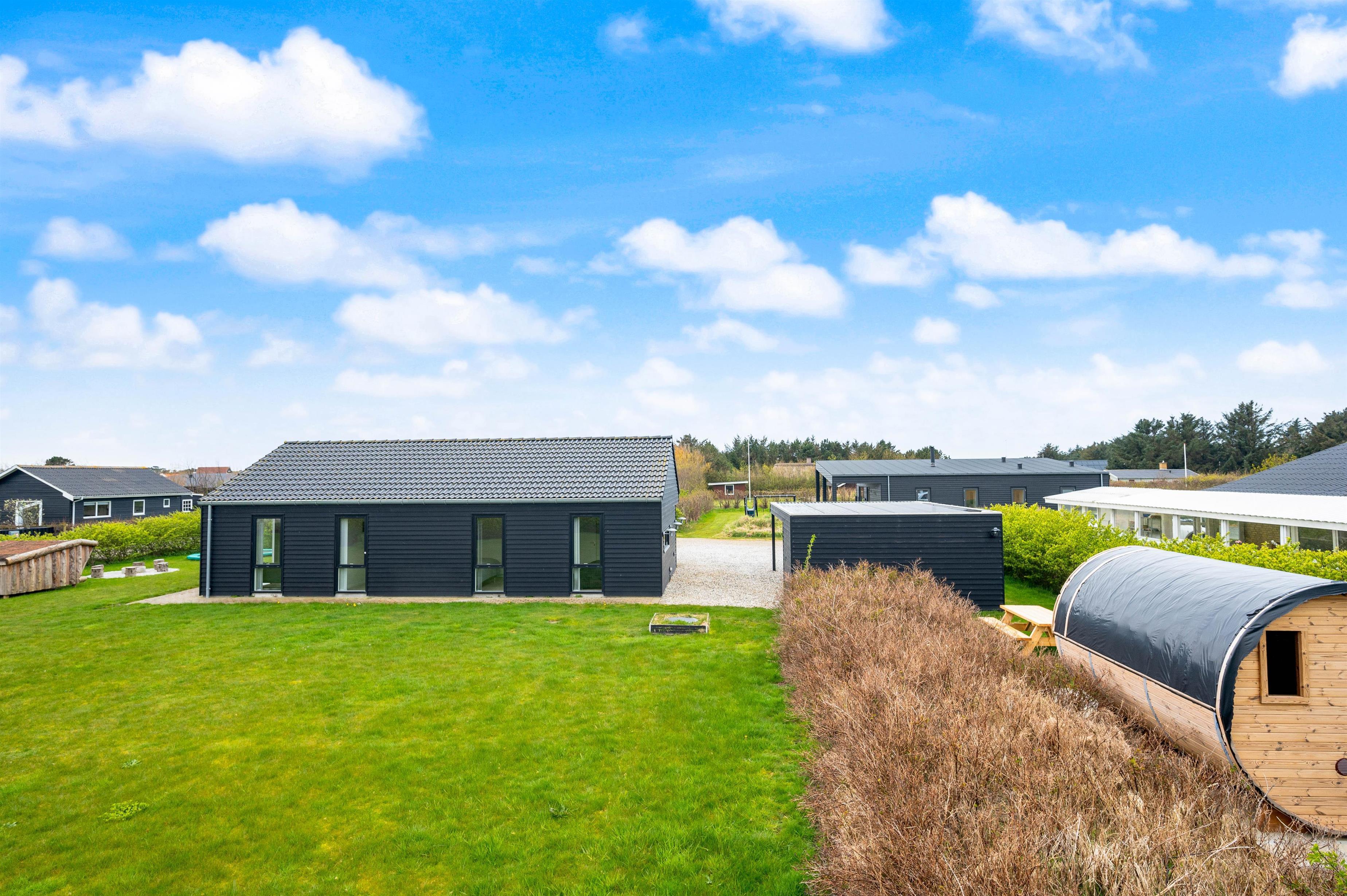 Her på Harbo Stages Vej 3 har I muligheden for at lade bilen stå og opleve det hele enten på cykel eller til fods. Mens jeres bil står sikkert under det opvarmede carporttag, kan I begive jer ind på vejen på de 700 meter til Søndervig by.