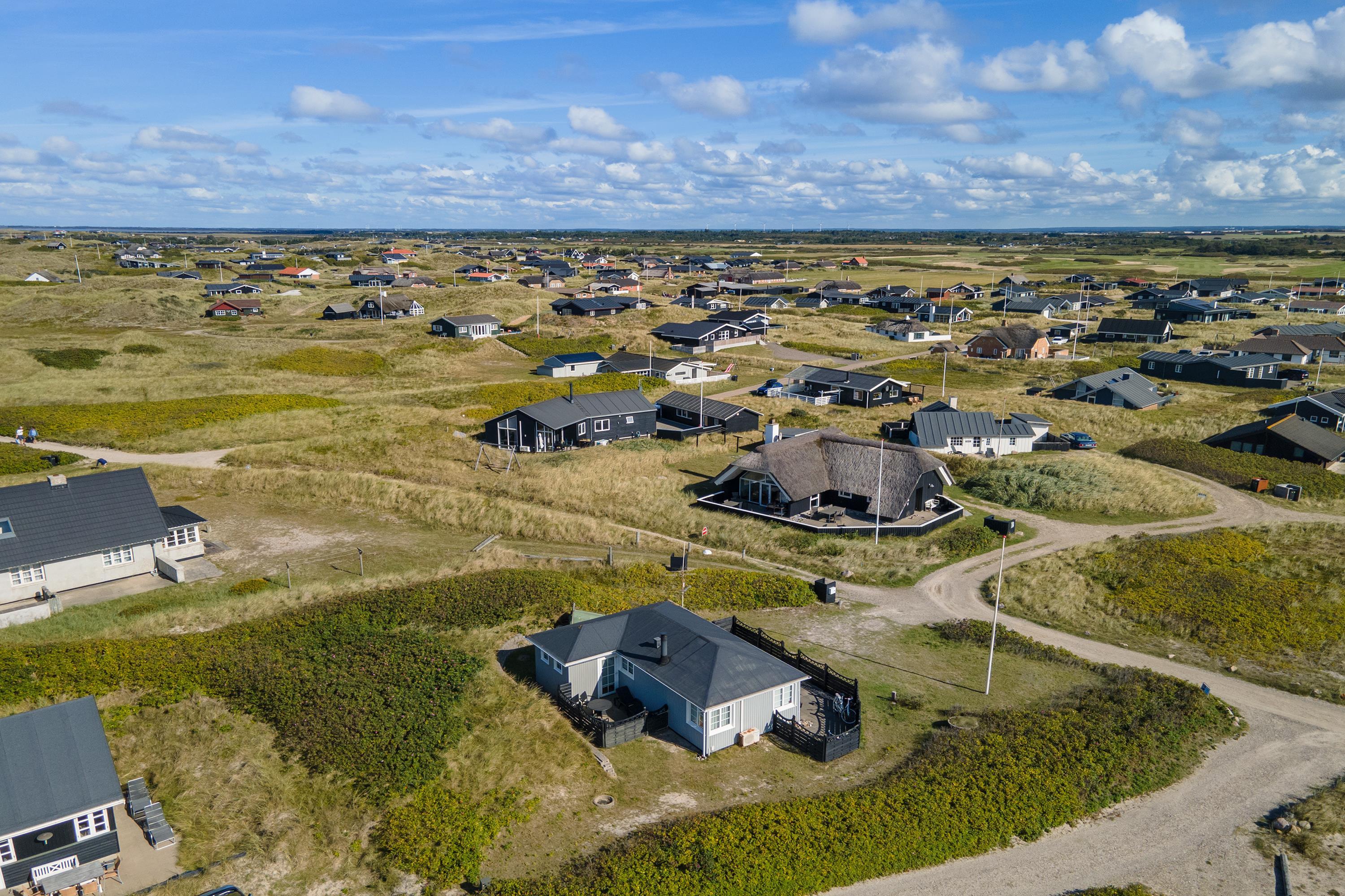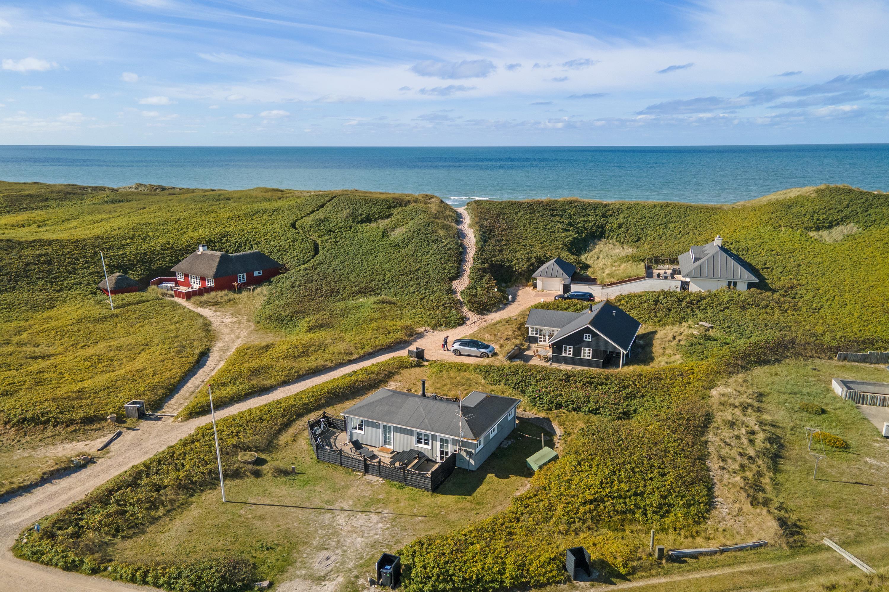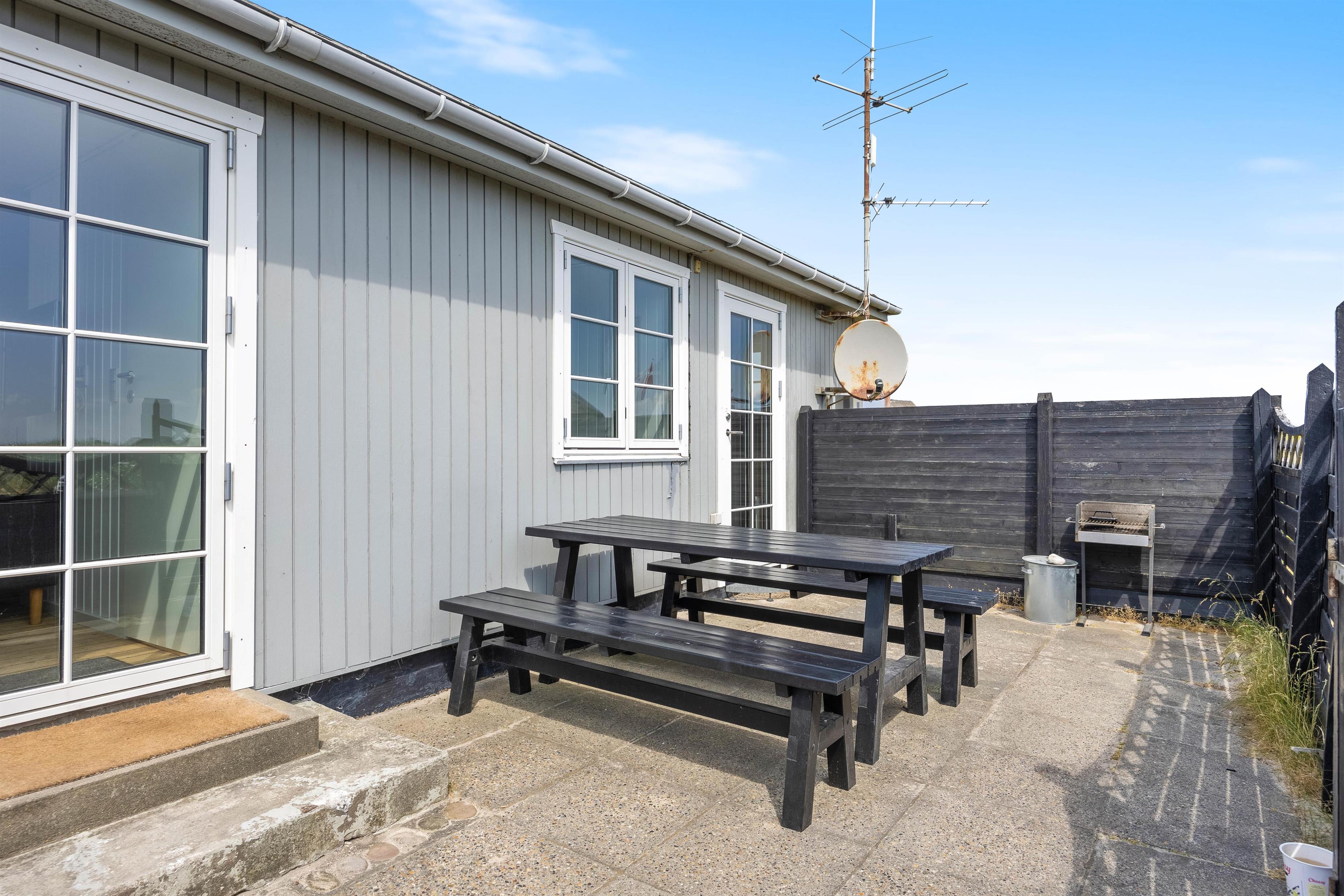Rundt om sommerhuset er der en lukket terrasse, så hunden frit kan gå udenfor uden at kunne løbe væk. Der er både havemøbler og grill til rådighed, så I kan tilberede et dejligt måltid mad og nyde det gode vejr, når solen skinner. Her på terrassen kan solen nydes hele dagen, og sommerhuset ligger så tæt på Vesterhavet, at havets brusen kan høres i baggrunden.