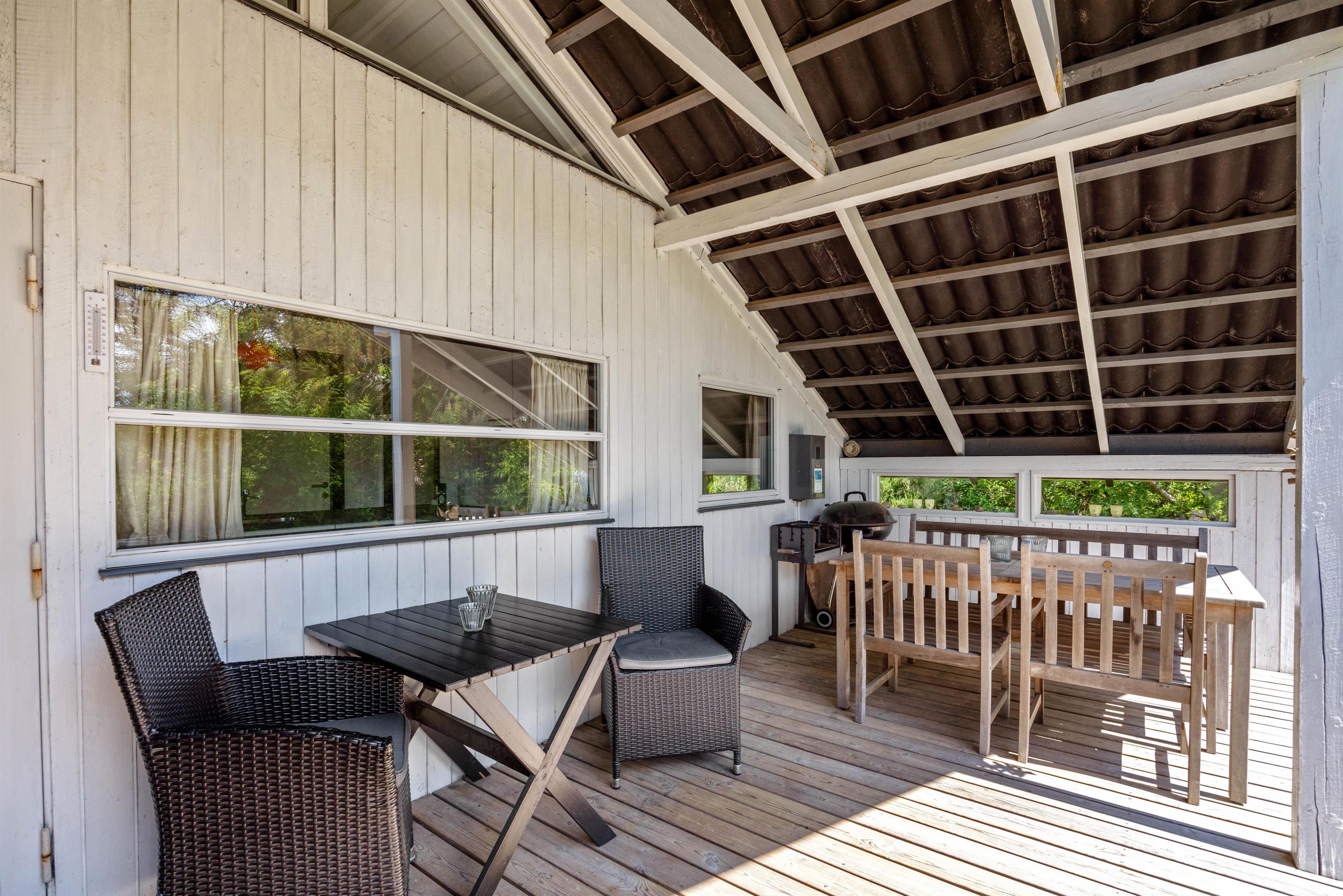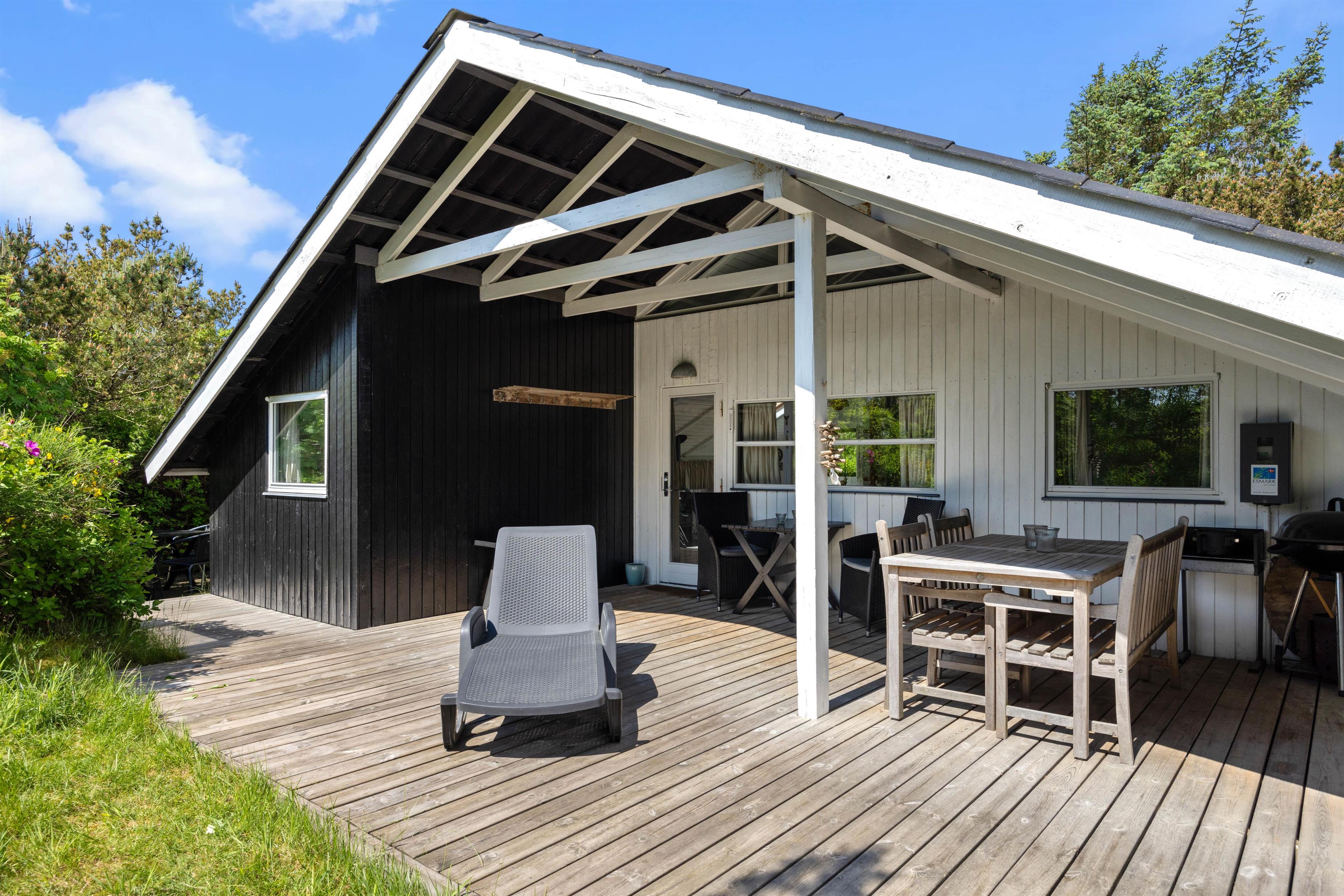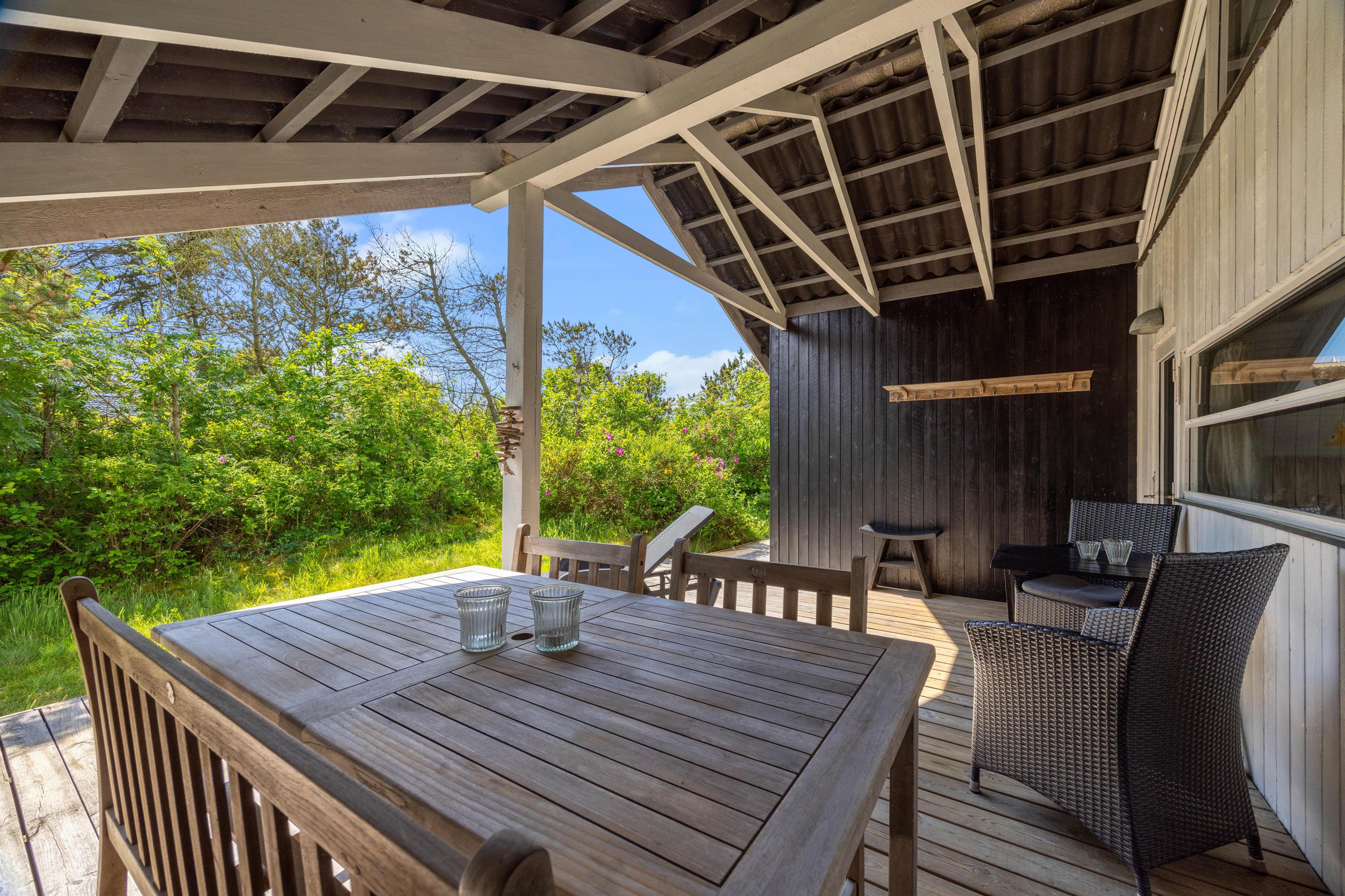 Huset råder over en dejlig terrasse, der er ligger mod syd og som er delvist overdækket, hvor der er mulighed for at nye det gode vejr. Herudover er der en mindre vestvendt terrasse, hvor I kan nyde en stille stund med aftenkaffen i hånden. Der er naturligvis både havemøbler og grill til rådighed, så I kan tilberede jeres aftensmad udendørs over grillen. For hvad er sommerferie uden grillhygge?