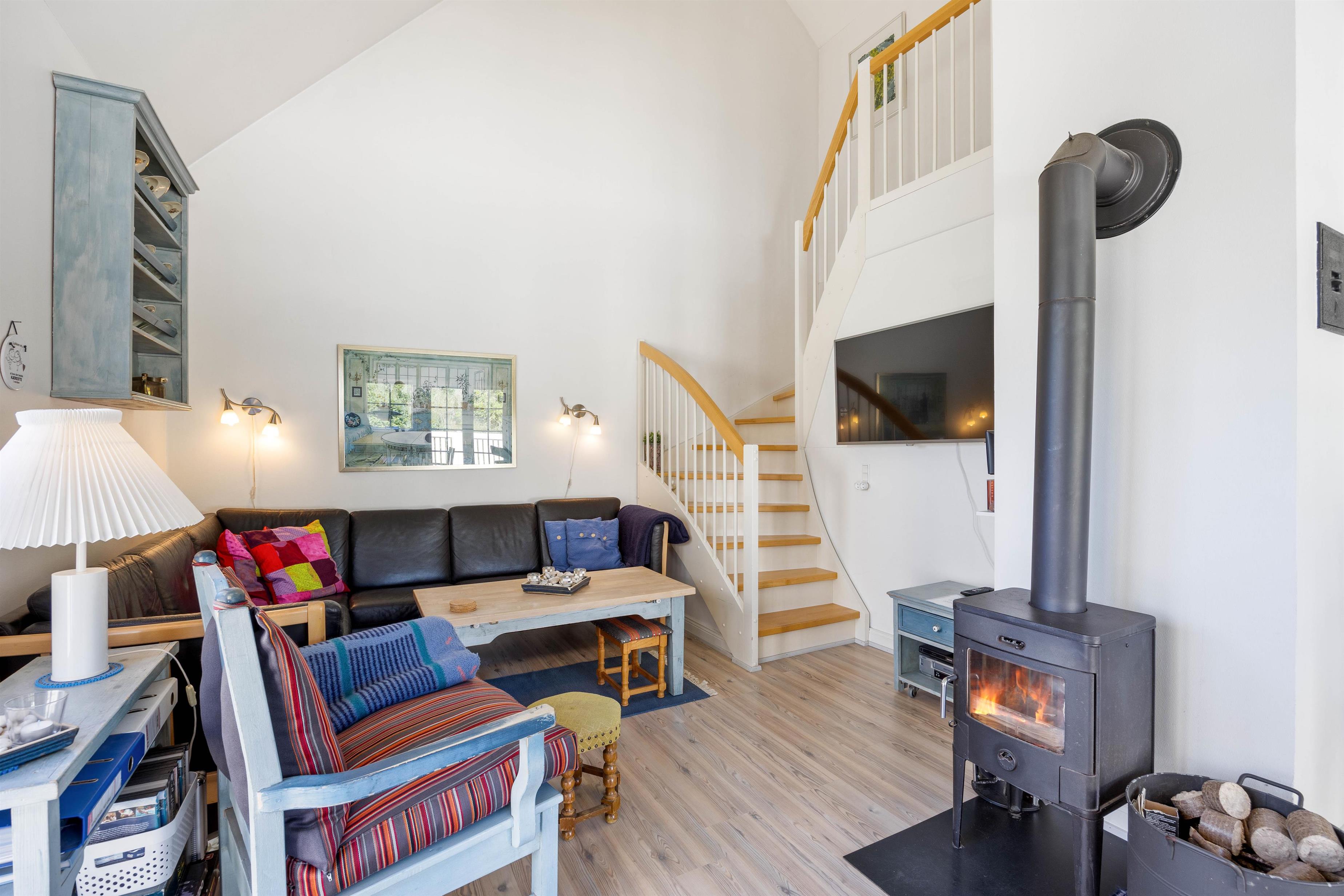 I stueetagen er det oplagt at samles til dejlige feriestunder sammen. Spil et sjovt spil ved spisebordet, vær sammen om madlavningen i køkkenet eller læn jer tilbage i sofaerne til en god film i tv'et - I kan streame jeres yndlingsfilm via Apple TV. Brændeovnens knitren fuldender feriestemningen.