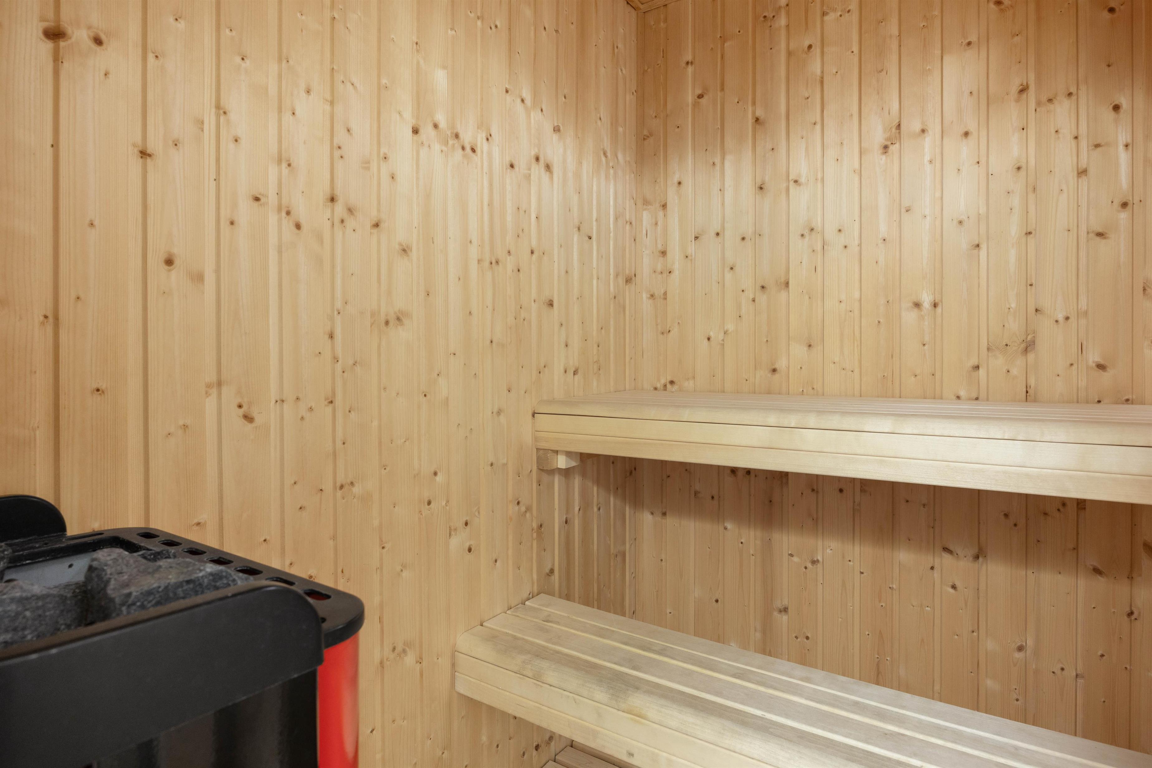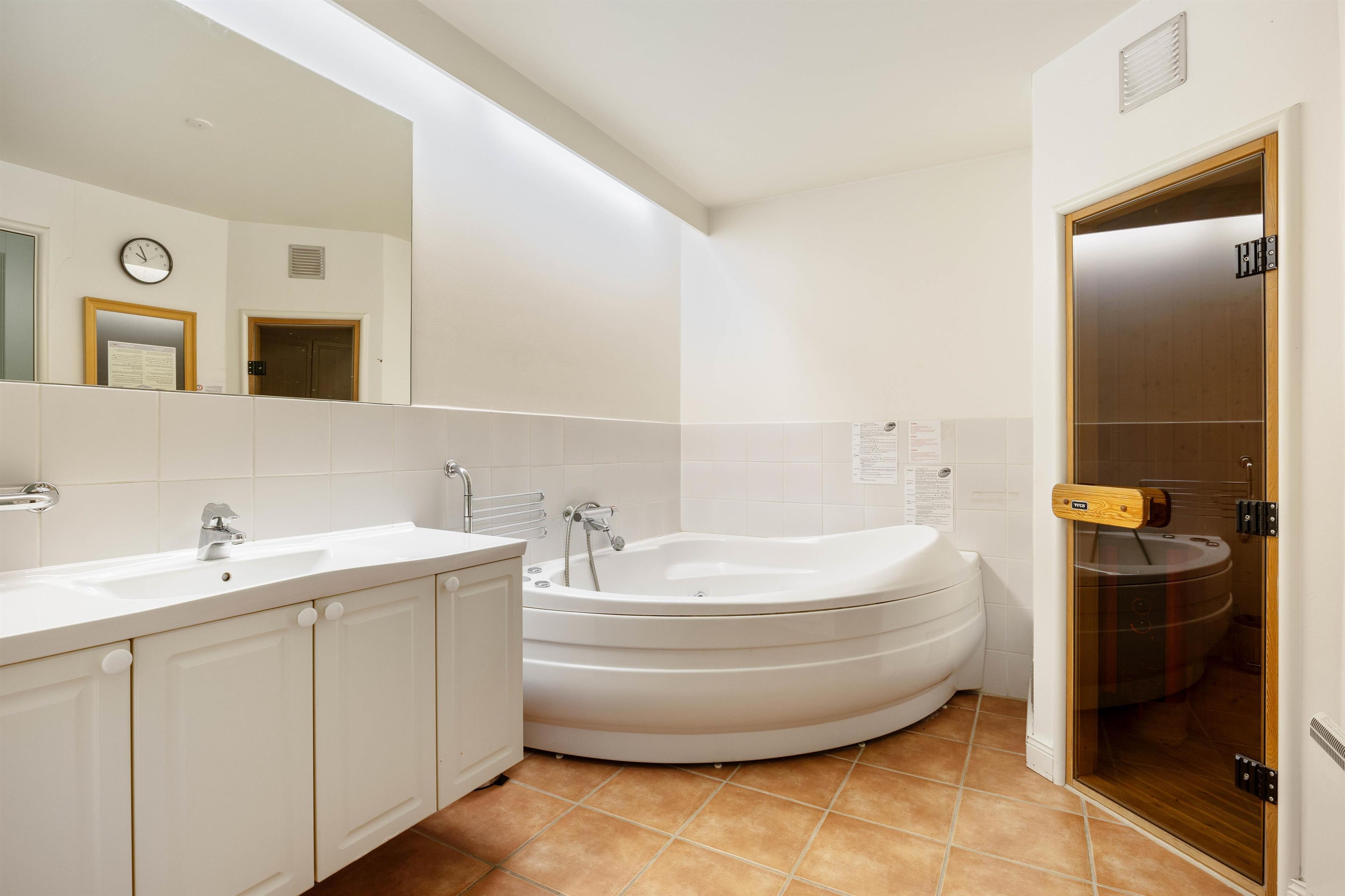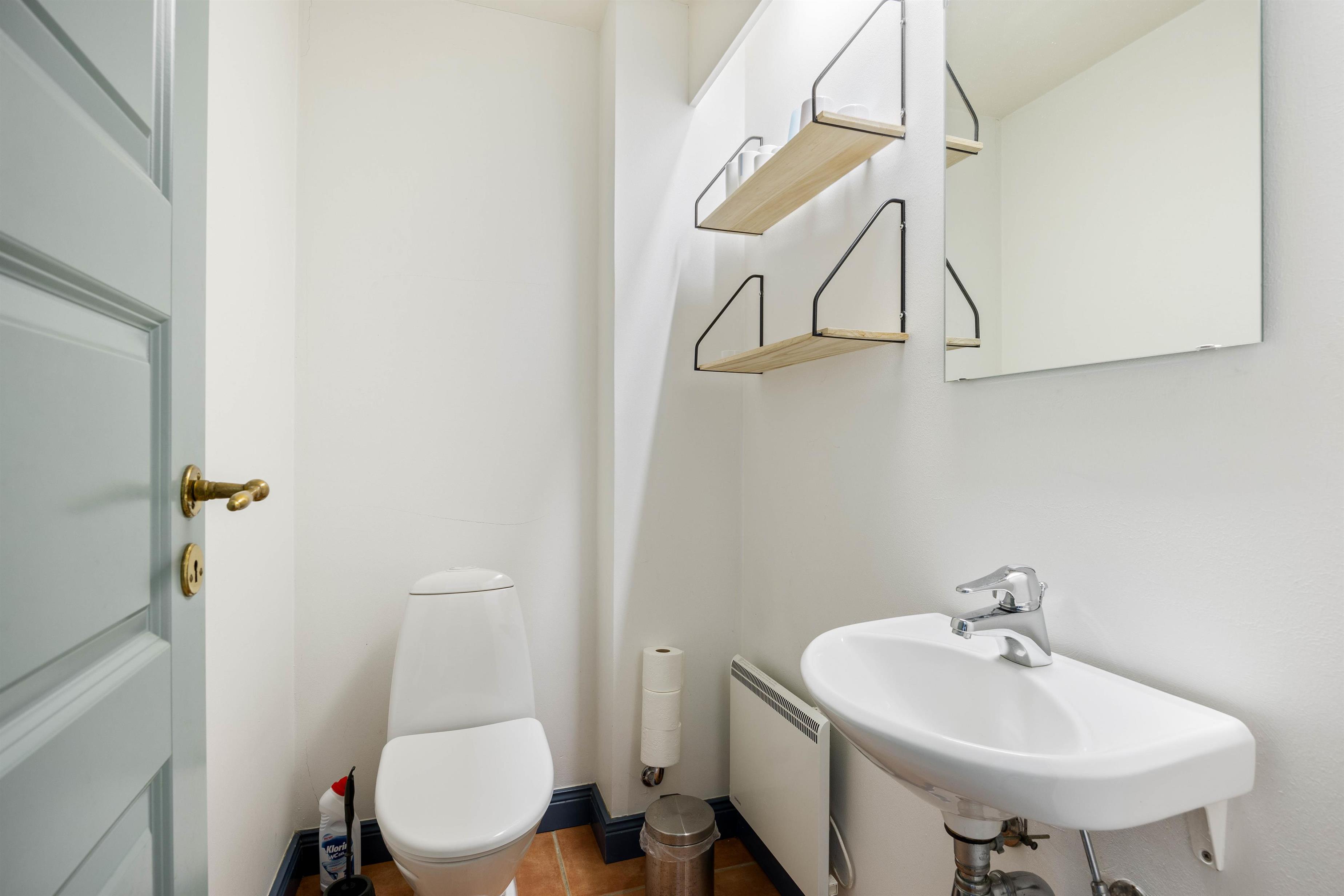 Derudover finder I også gæstetoilettet og badeværelset i stueetagen. På badeværelset står spaen, hvor I kan blive forkælet med en god gang afslapning i det boblende vand. Fra badeværelset er der også adgang til den varme sauna, der står klar til jer.