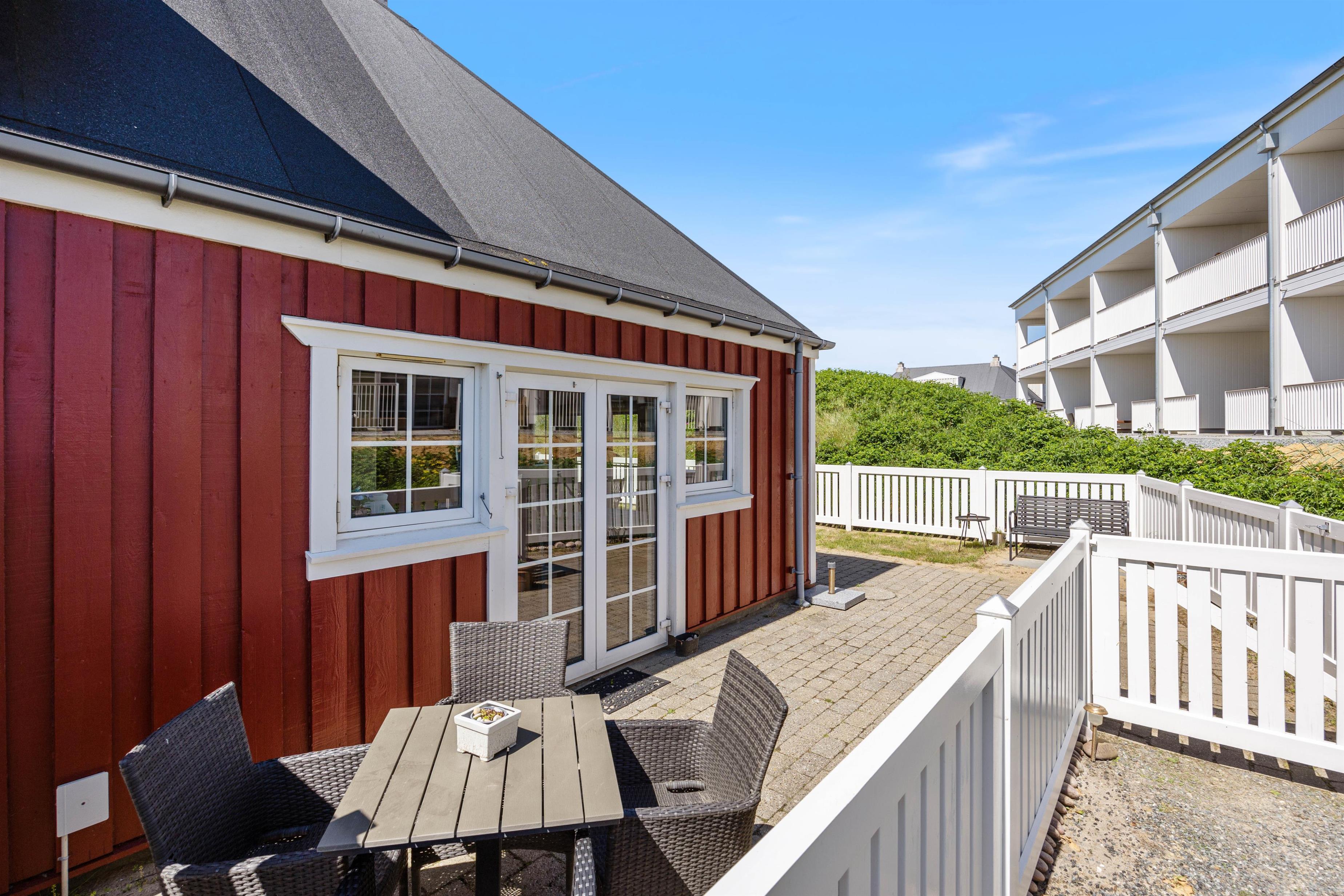 Der er intet, som når solen kommer frem, og temperaturerne stiger. Og når det sker, kan I jo ikke andet, end at komme udenfor og nyde det. Dét kan I gøre fra ferielejlighedens lukkede terrasse, hvor I har både havemøbler og liggestole til rådighed, som I kan nyde det gode vejr fra.