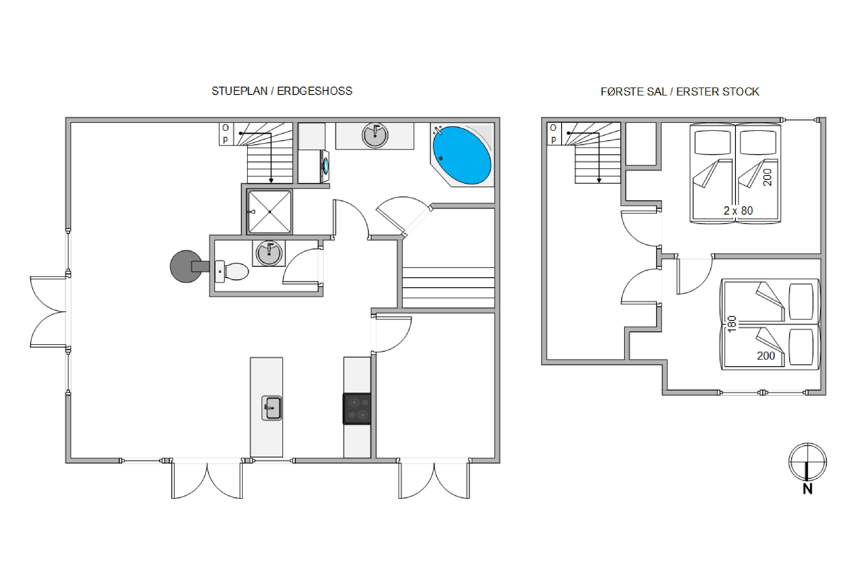 På ferielejlighedens førstesal ligger begge soveværelser, der er indrettet med dobbeltsenge, som I kan få jeres skønhedssøvn i. På det ene af soveværelserne er der også et tv.