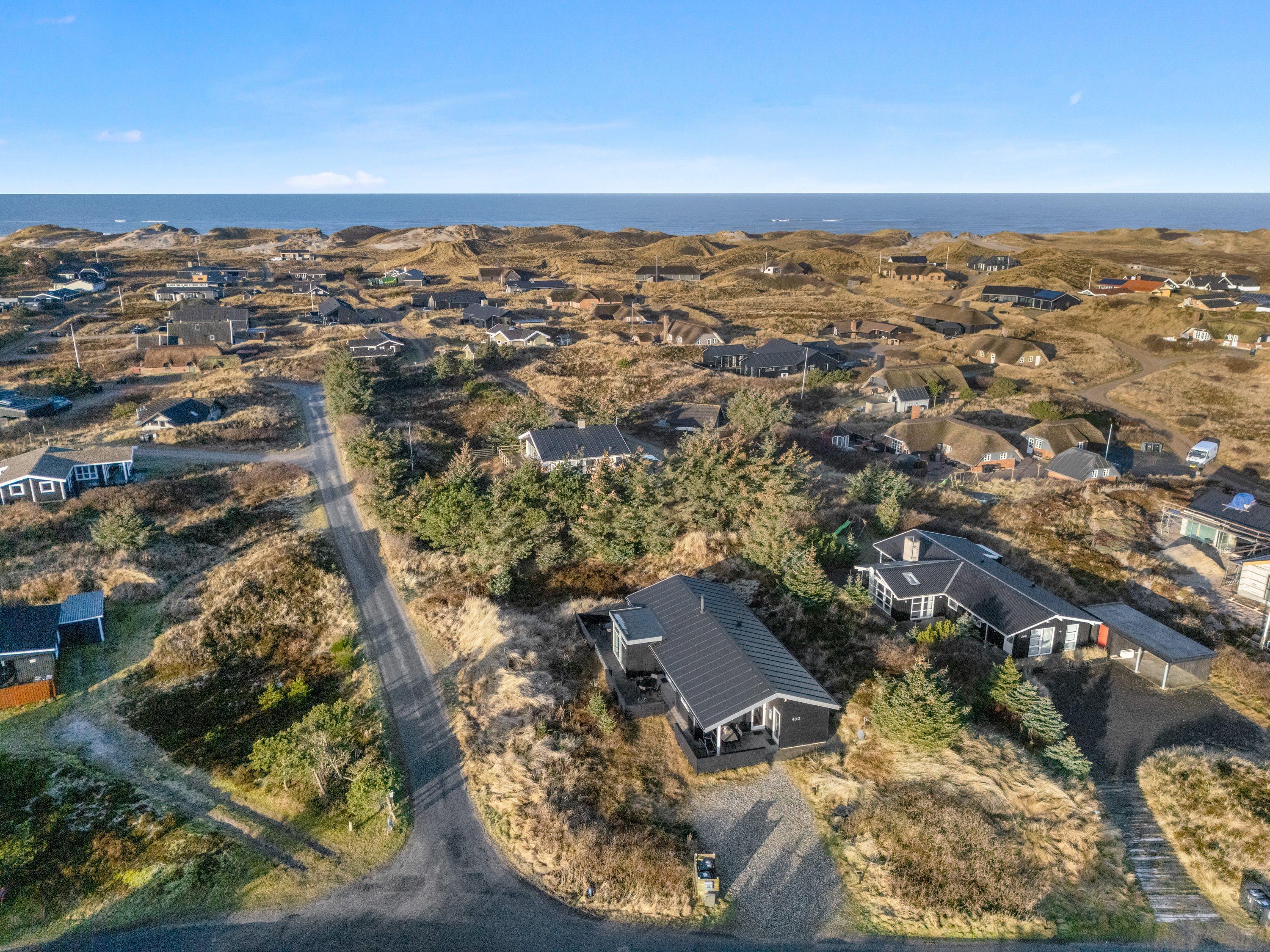 Kun 350 meter fra sommerhuset på Nordsøvej 400 ligger det imponerende Vesterhav, som indbyder til lange gåture langs stranden – og på varme dage er der rig mulighed for en forfriskende dukkert i bølgerne.
