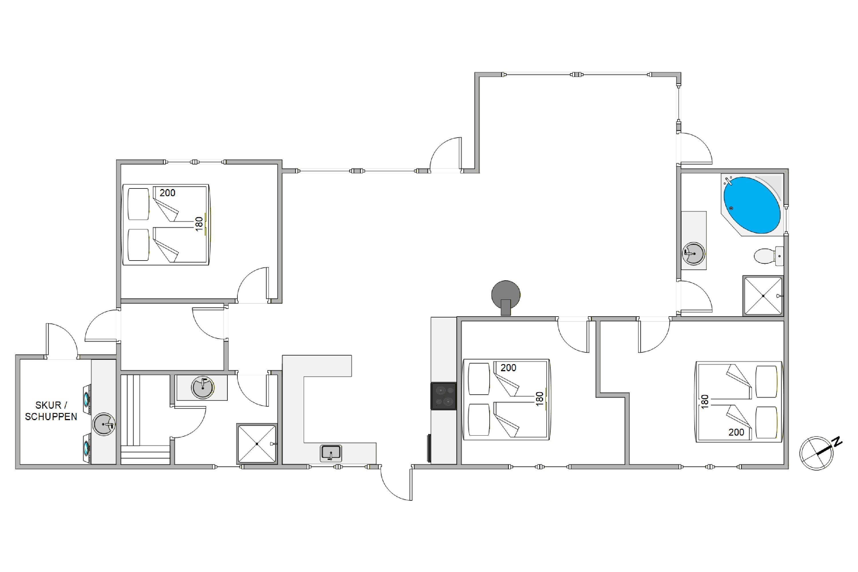 Det 120 m² store sommerhus er indrettet med 3 rummelige soveværelser og god plads til hele familien. Her finder I 1 komfortabel dobbeltseng samt 4 enkeltsenge, fordelt på de øvrige værelser – ideelt til både børnefamilier og vennegrupper.